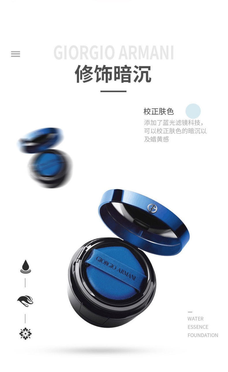 【大师气垫干皮保湿】阿玛尼蓝气垫 干皮水润持久遮瑕轻薄奶油肌黄皮14g