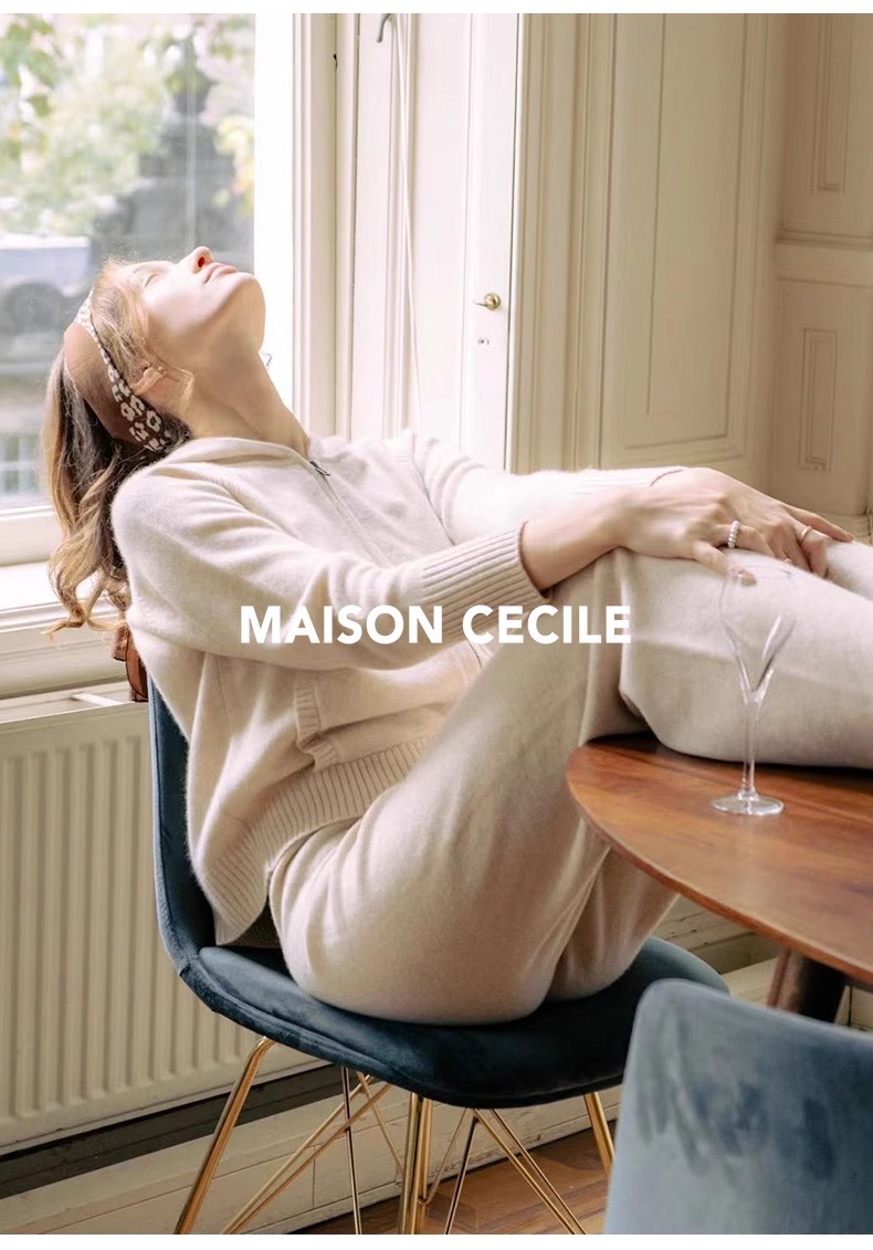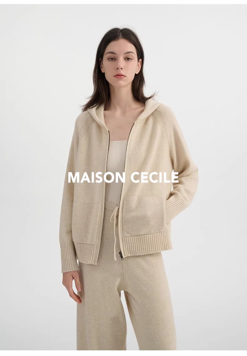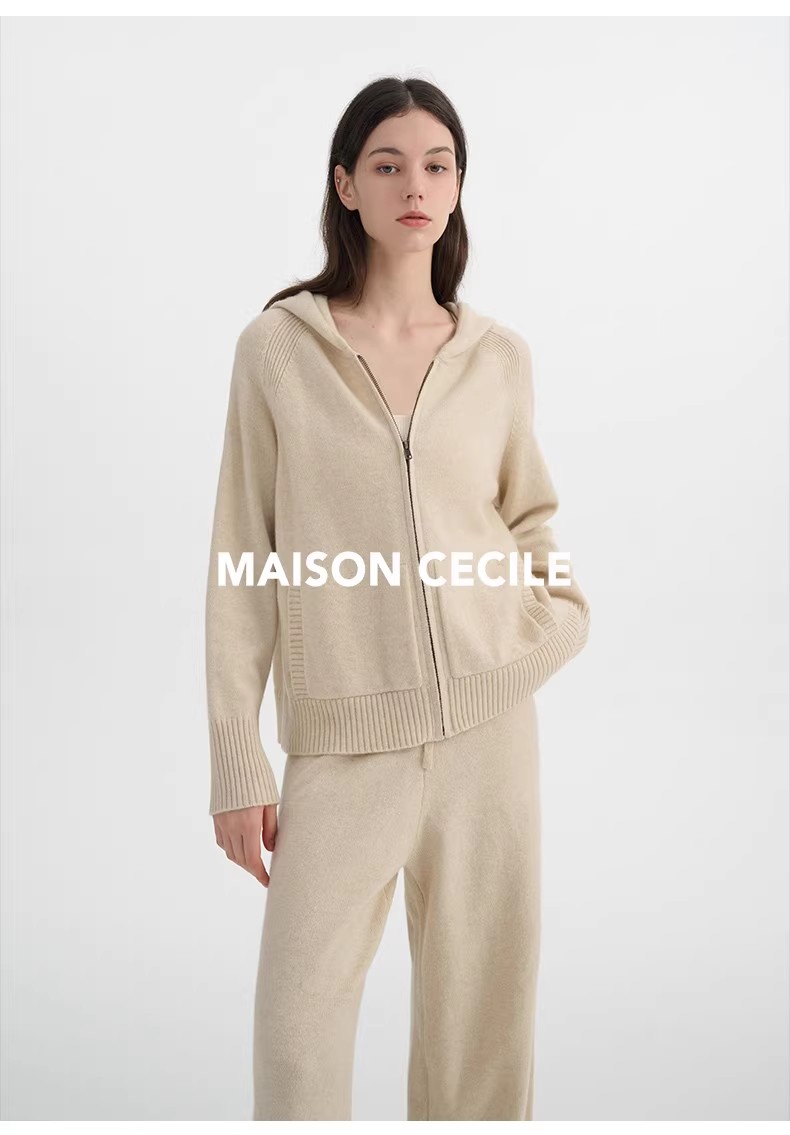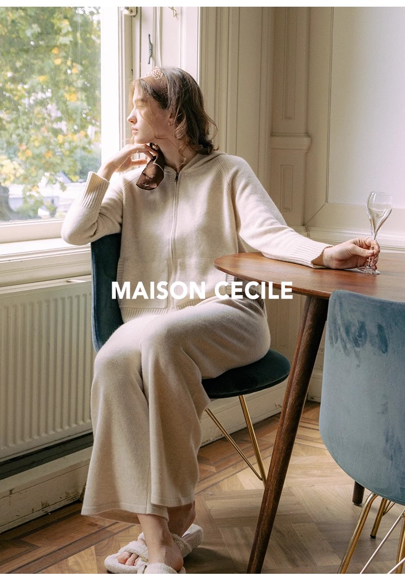 MAISON CECILE经典两色/两个版本软糯随性温暖百搭羊绒带帽套装