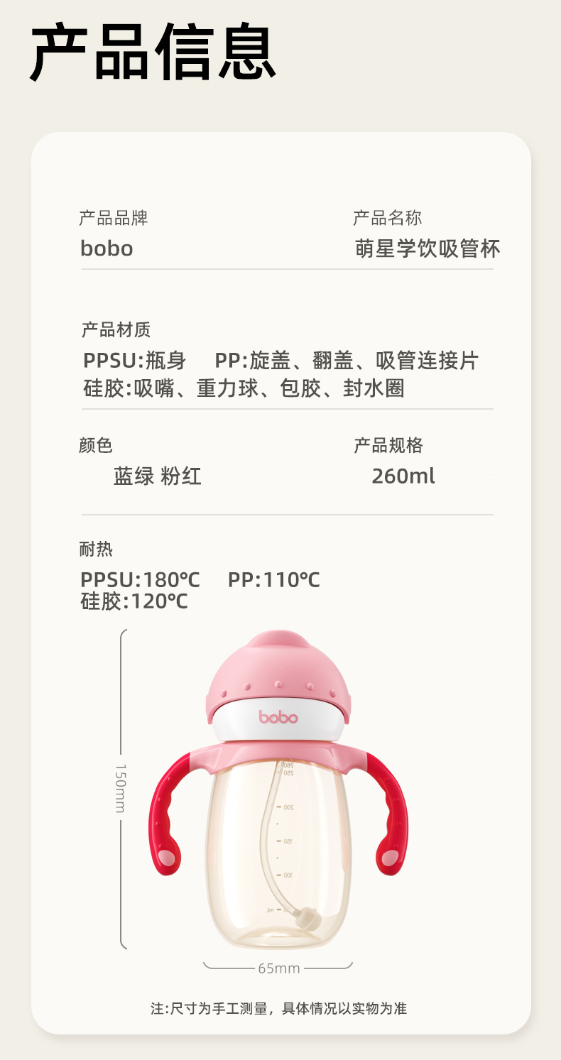 bobo 萌星学饮杯 吸管杯 260ml