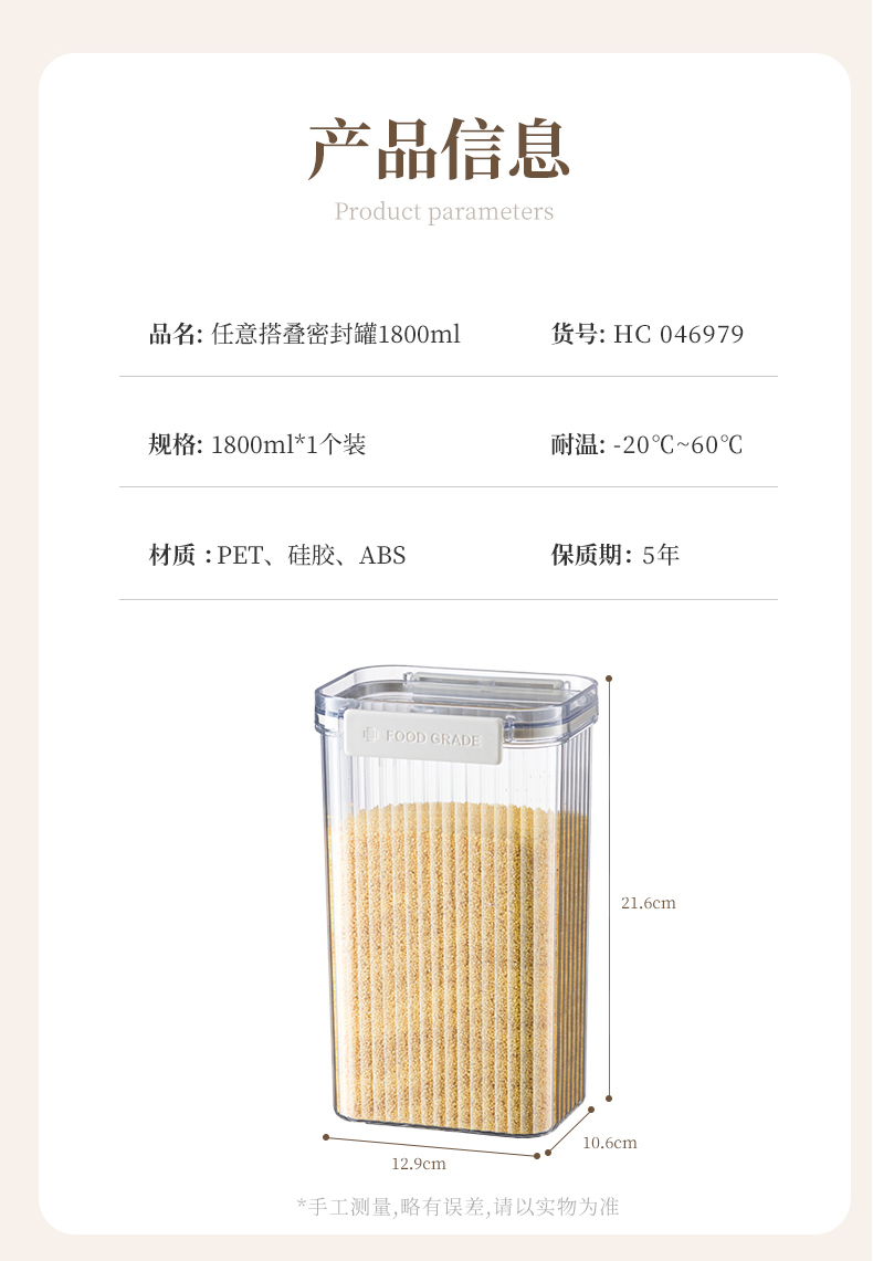 美丽雅密封罐食品级储存罐子厨房香料收纳盒塑料五谷杂粮储物罐