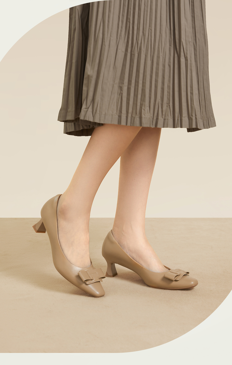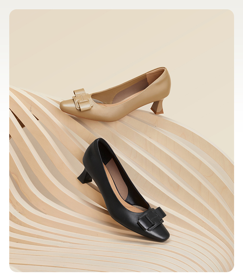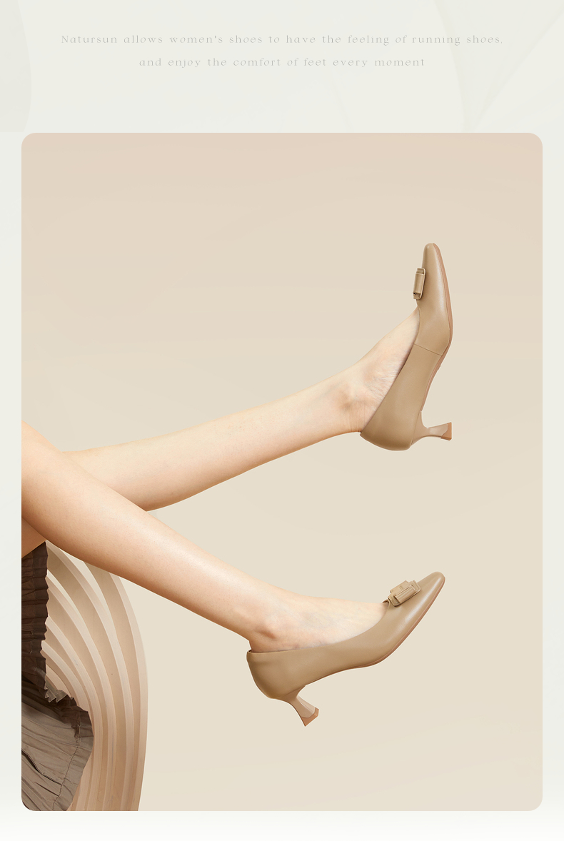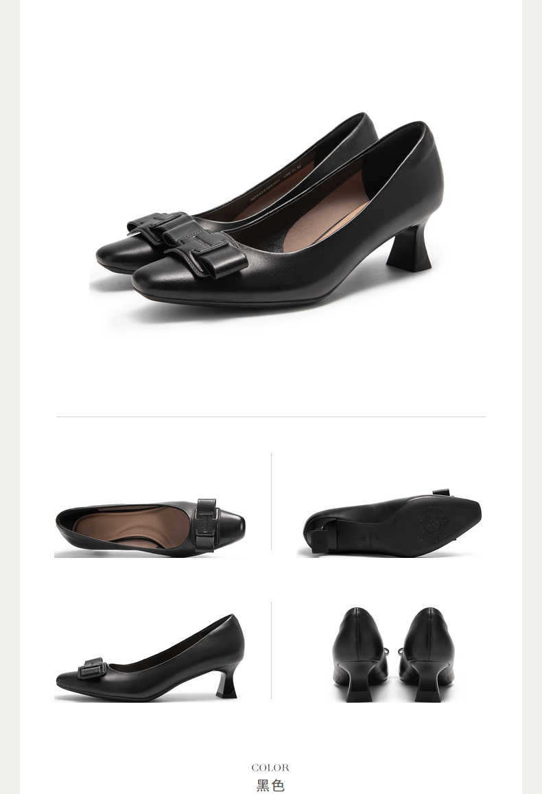 natursun女鞋法式名媛气质粗跟高跟鞋黑色通勤单鞋女N24424326