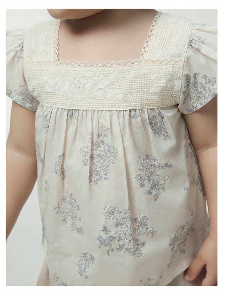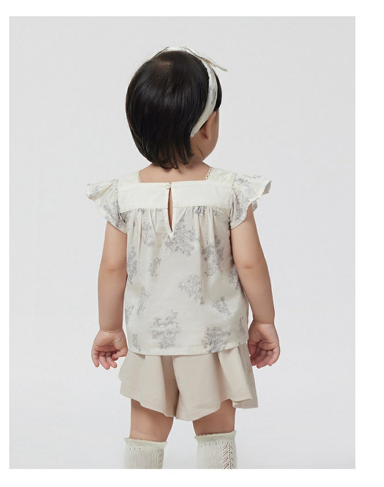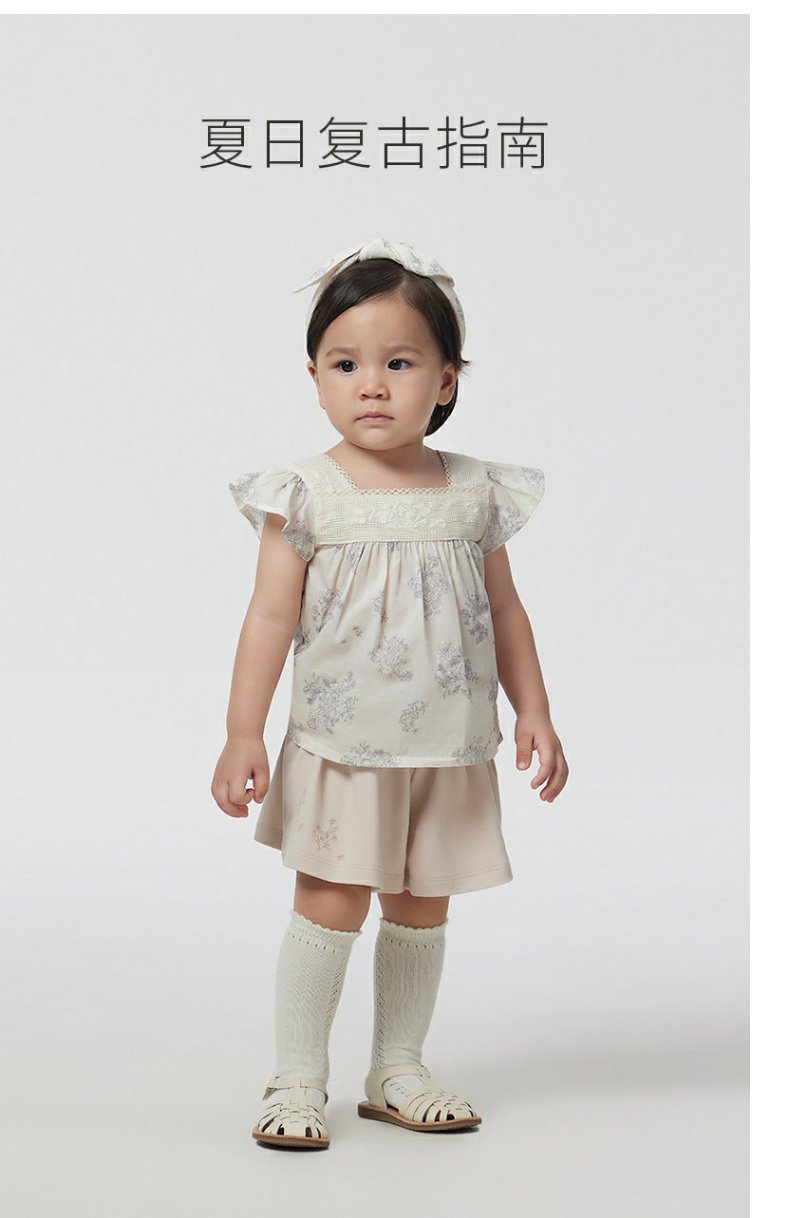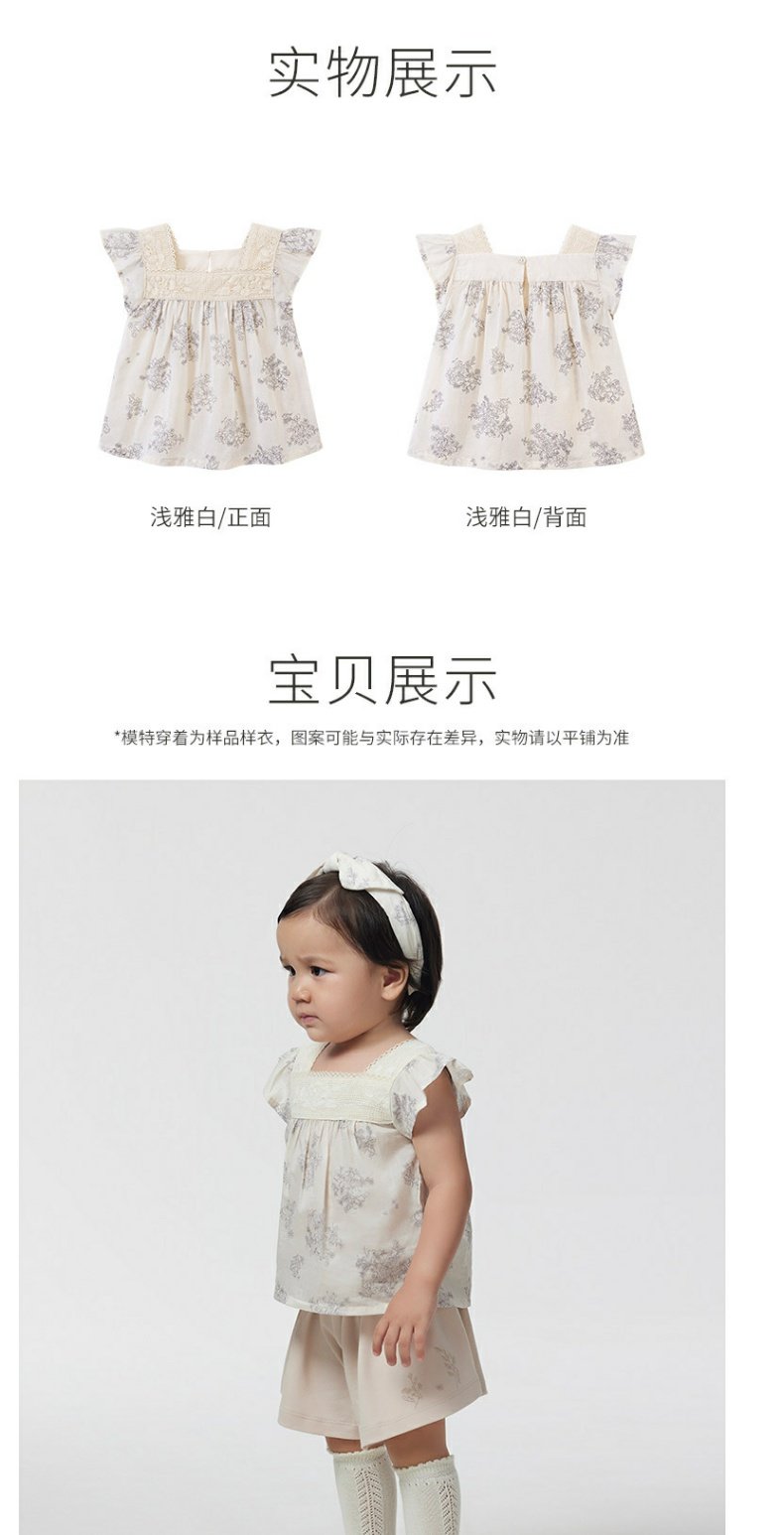 英氏女童装T恤夏季新款超萌小飞袖纯棉素雅方领上衣YRTCJ2P279A