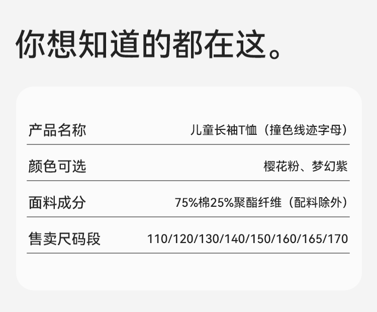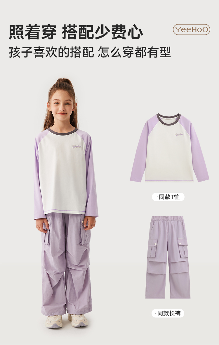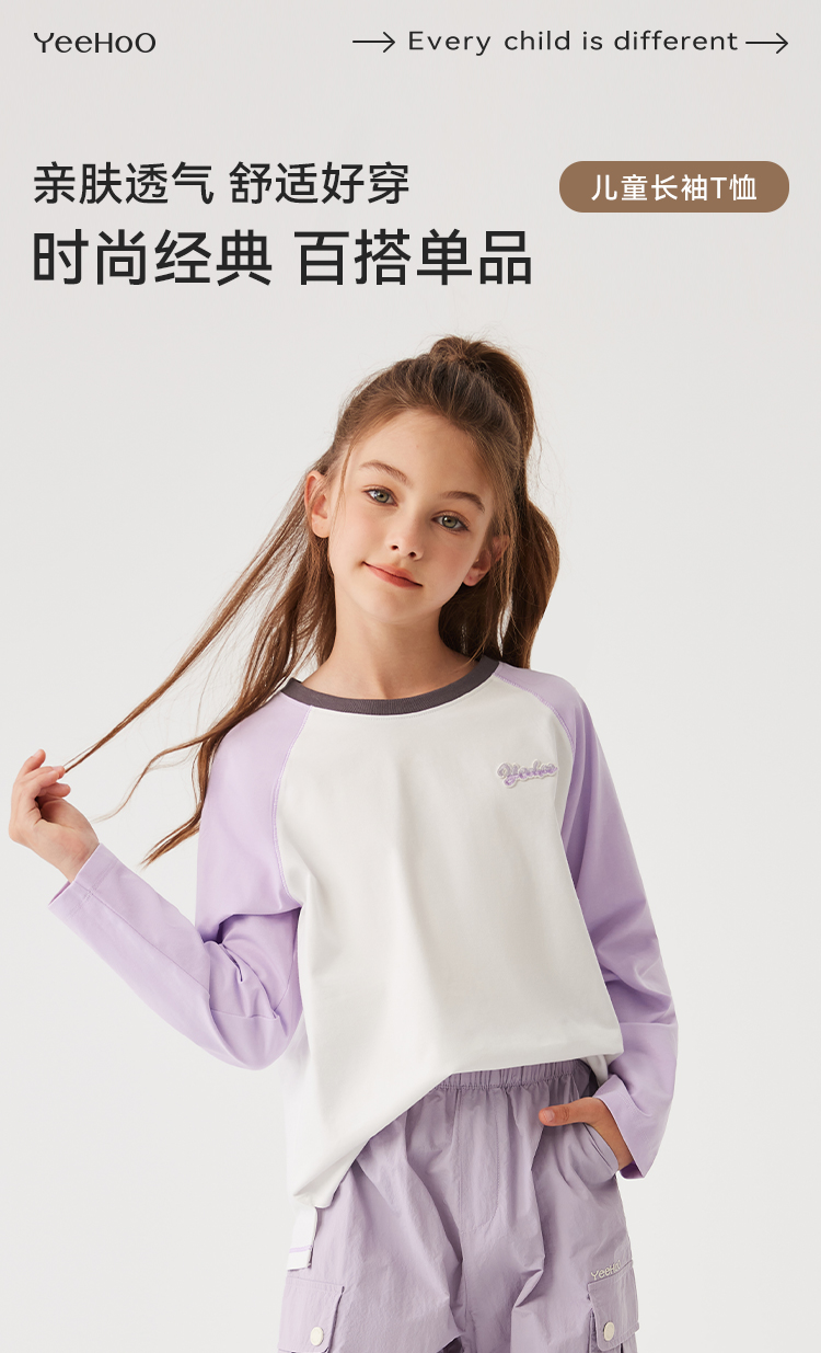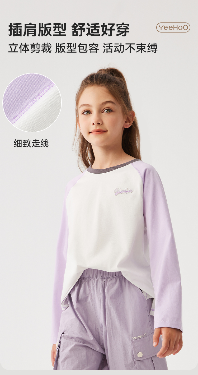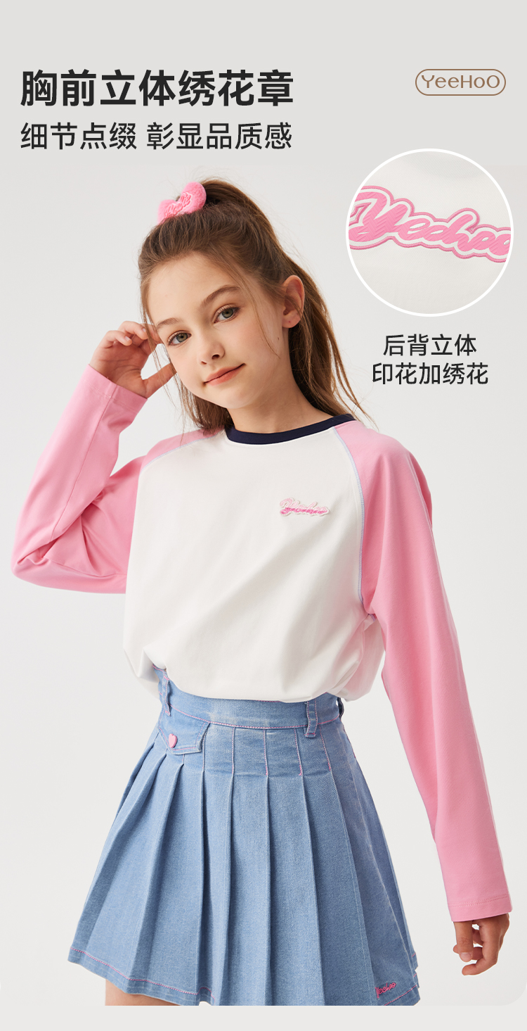 【英氏】【110-170】女童春秋撞色长袖T恤