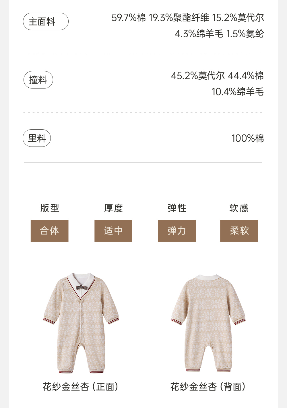英氏婴儿衣服秋冬保暖羊毛连体衣男童2024新款连身衣YRHAJ3Q592A
