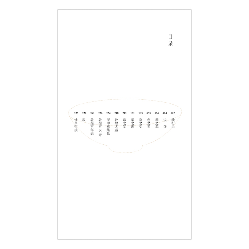 本书以敦煌石窟元素为核心,从文脉和瓷脉间的关系展开叙说,到打破了敦煌自古无陶瓷的说法。在景德镇著名瓷器大师藤町先生的带领下花费了三年时间千锤百炼创造诞生了敦煌体系孤品一格的瓷器。每一件器物均是盏的造型,取源于敦煌,故而称之为“敦煌盏”。其中每件作品中包含了敦煌学的纹饰、色彩、唐风宋韵的独特审美造型。书中每一件瓷器从纹饰到色彩到制作工艺无一雷同,堪称国宝级佳品。在欣赏书中的器皿时敦煌文化的复原到唐风宋韵的格调再创造跃然纸上。