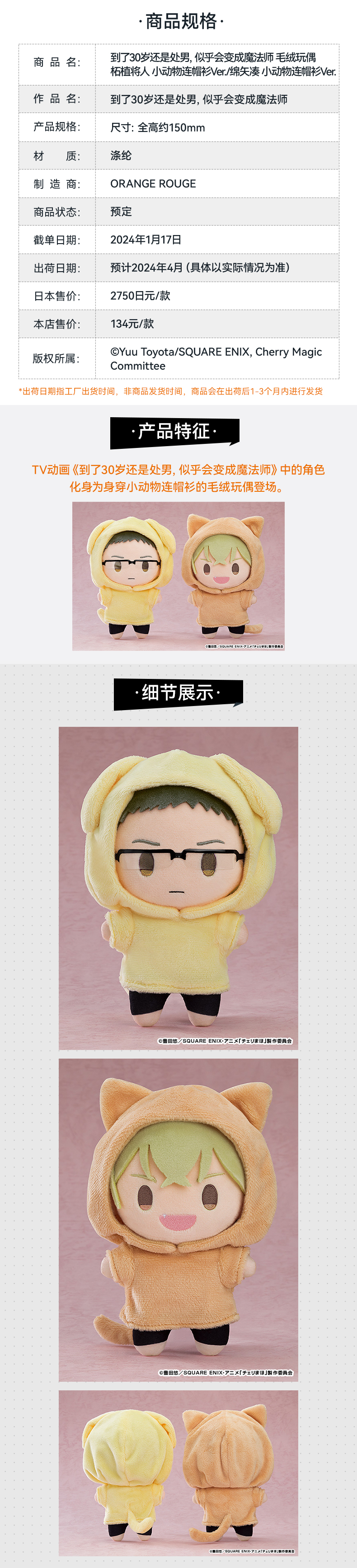【GSC现货】到了30岁还是处男,似乎会变成魔法师 毛绒玩偶 安达清/黑泽优一/柘植将人/绵矢凑 小动物连帽衫Ver.