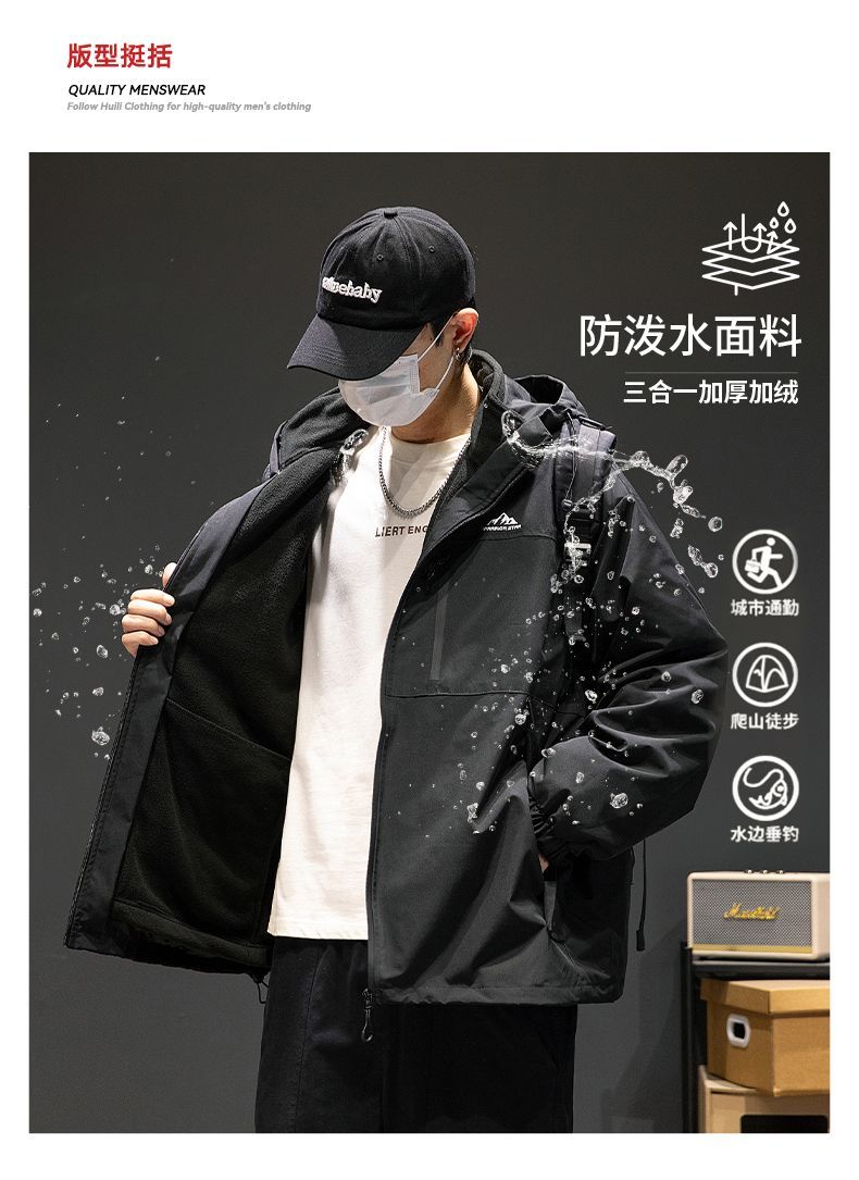 回力冲锋外套男2025春季户外登山服三合一可拆卸防泼水连帽夹克男