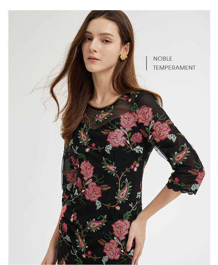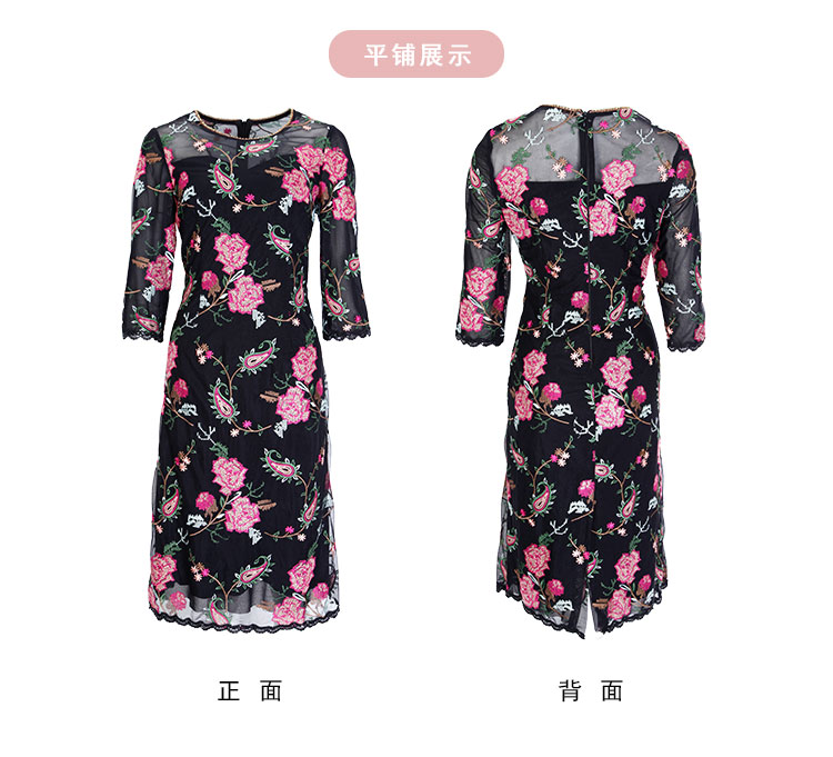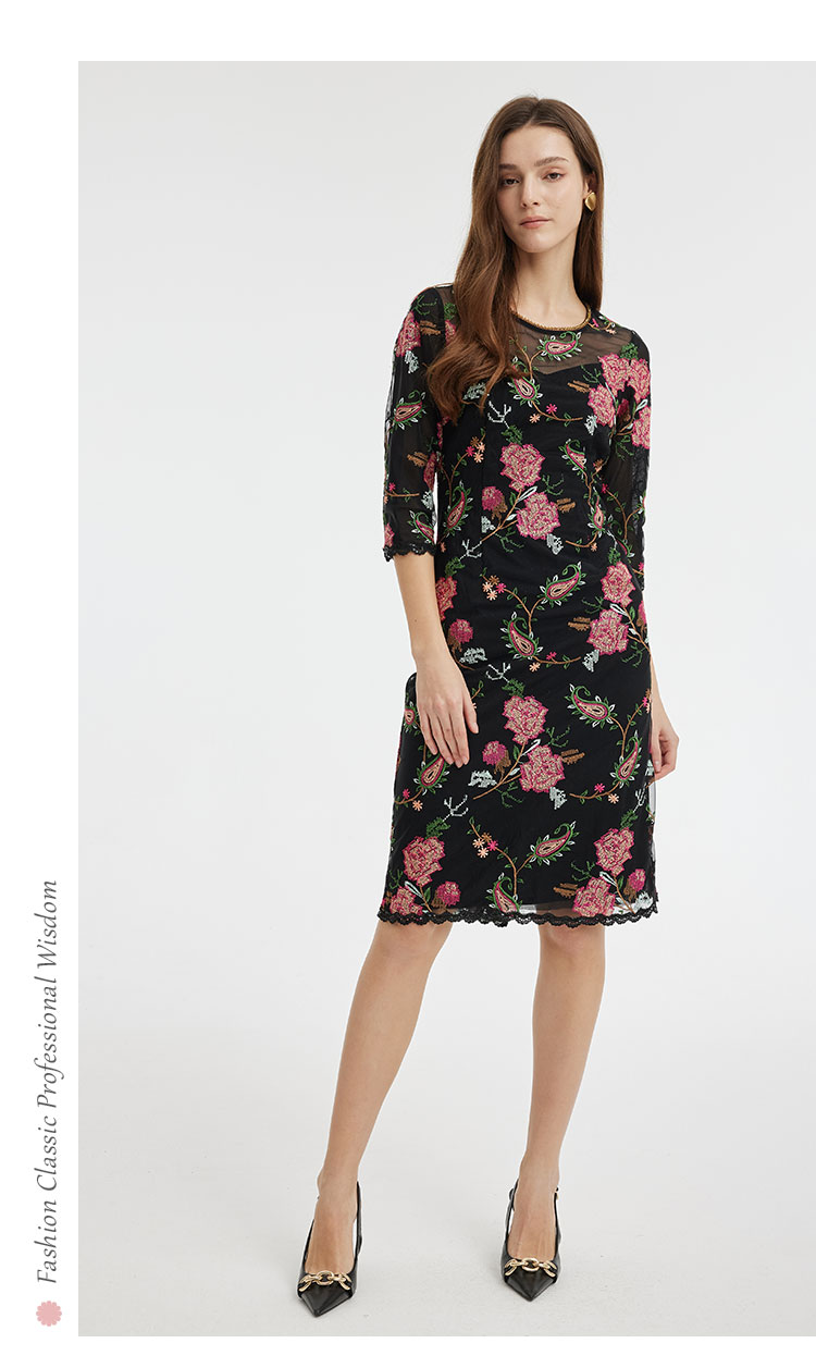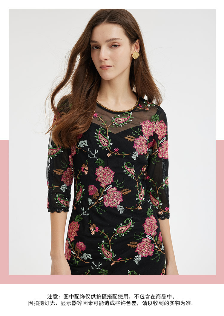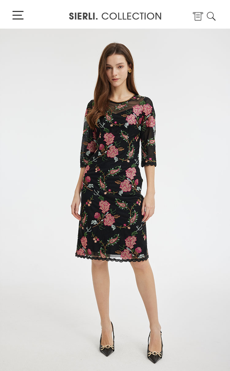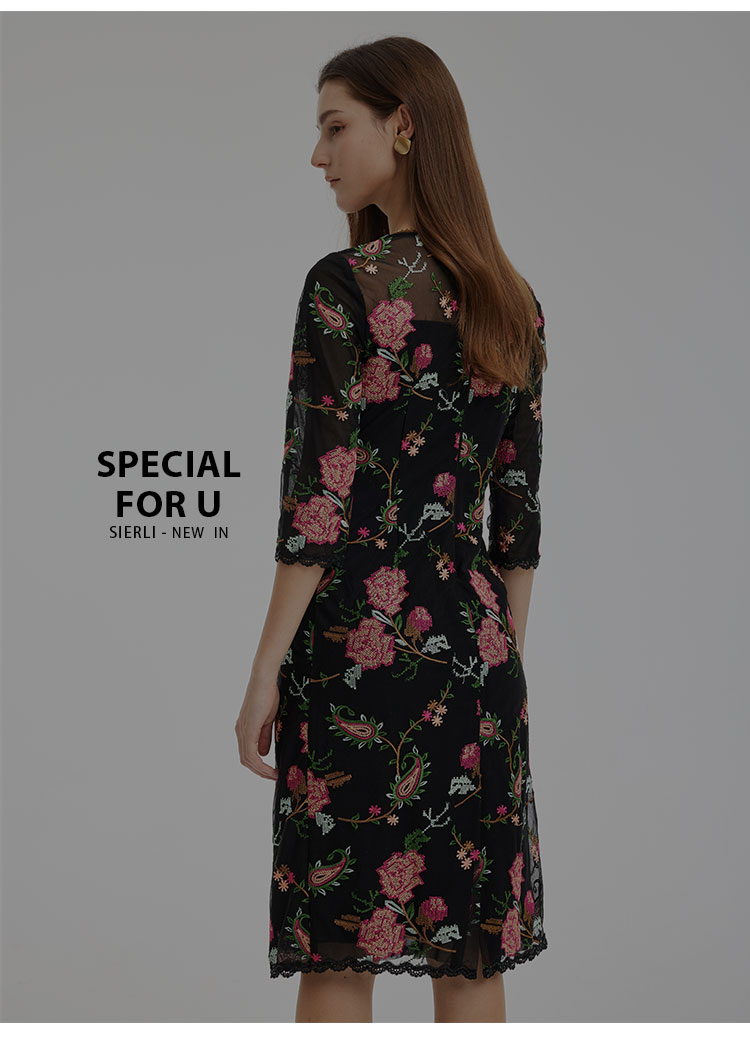 RF8F6斯尔丽2021年瑟俪春季新款圆领合体小A十字绣连衣裙