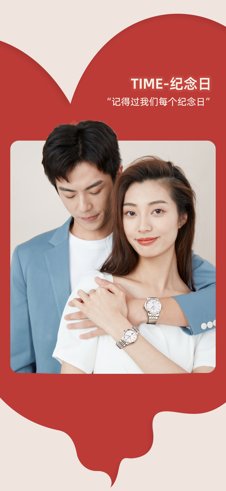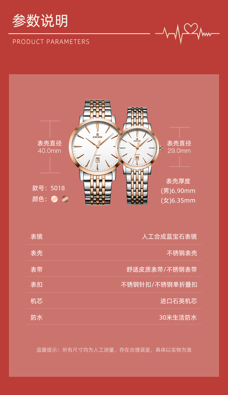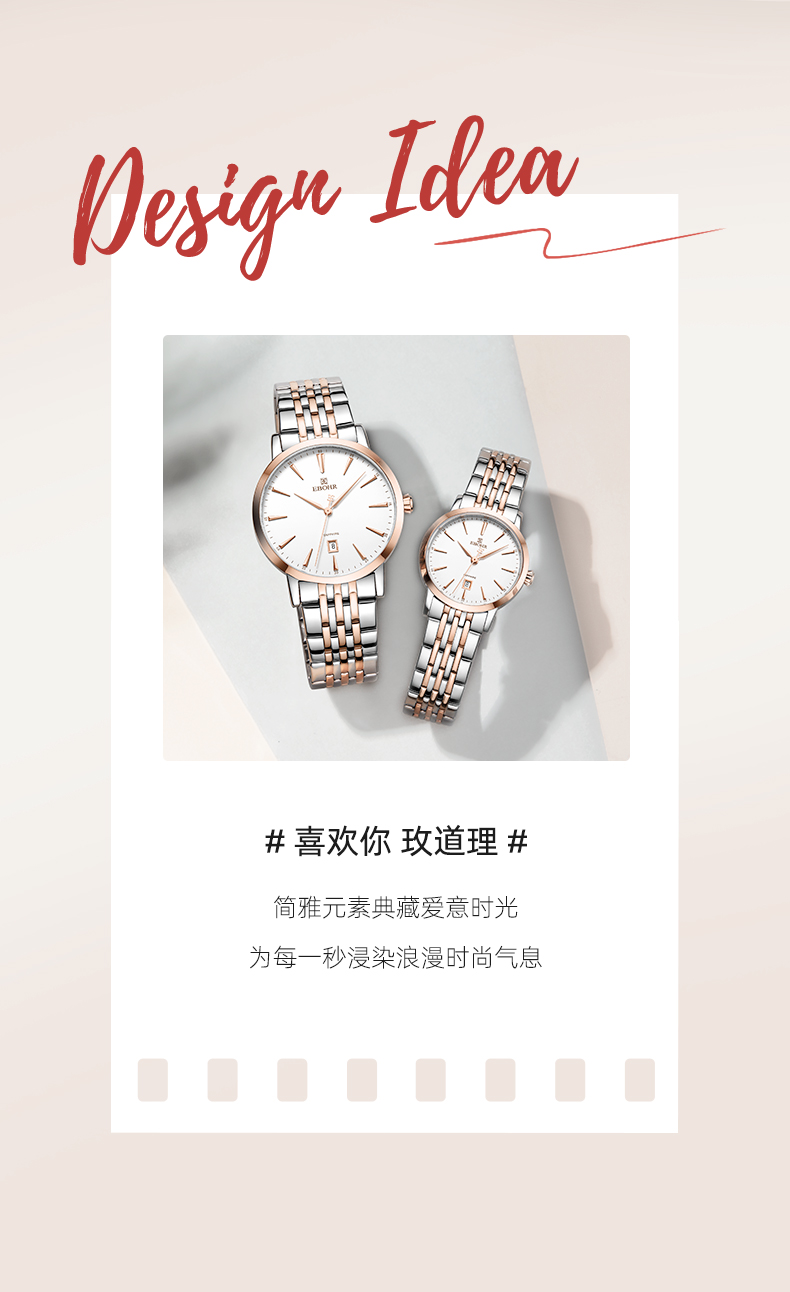依波(EBOHR)时尚间金钢带情侣表男女石英表5018