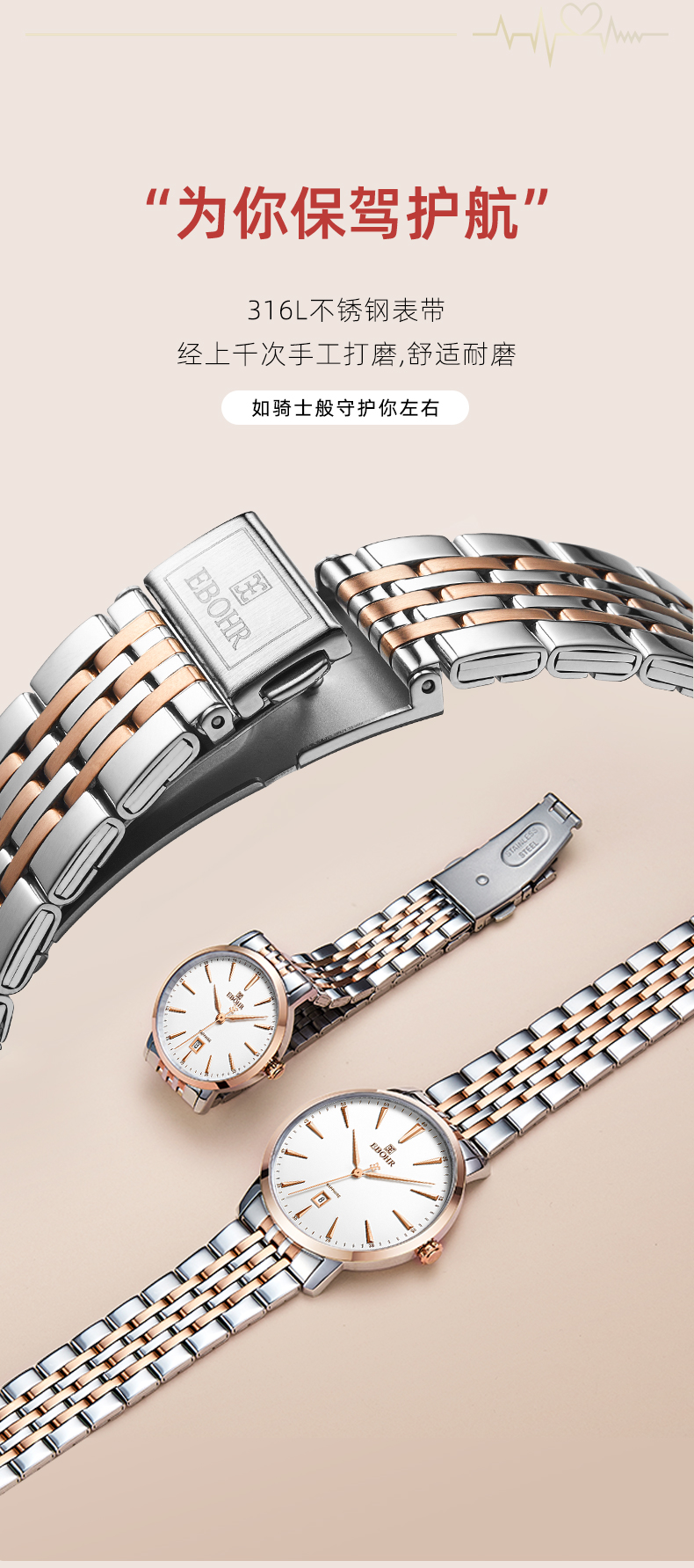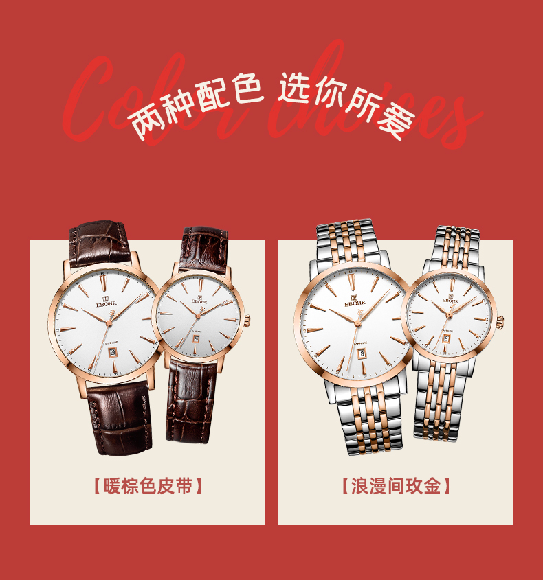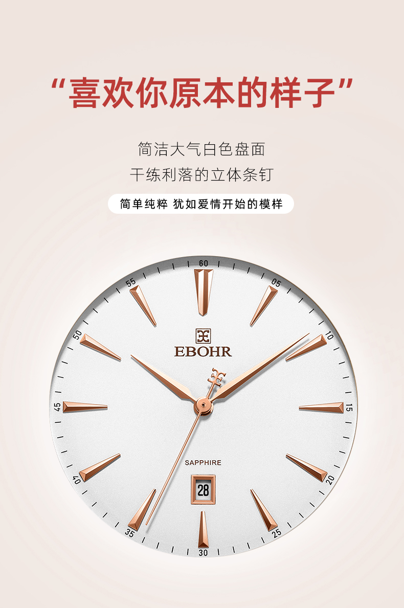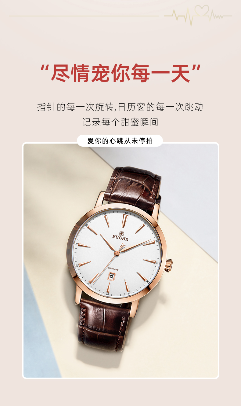 依波表手表EBOHR情侣款男表女表机械表腕表防水皮带日历3617