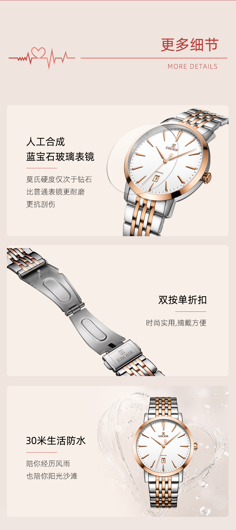 依波(EBOHR)时尚简约女士腕表樱粉金女士石英手表5138