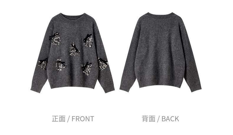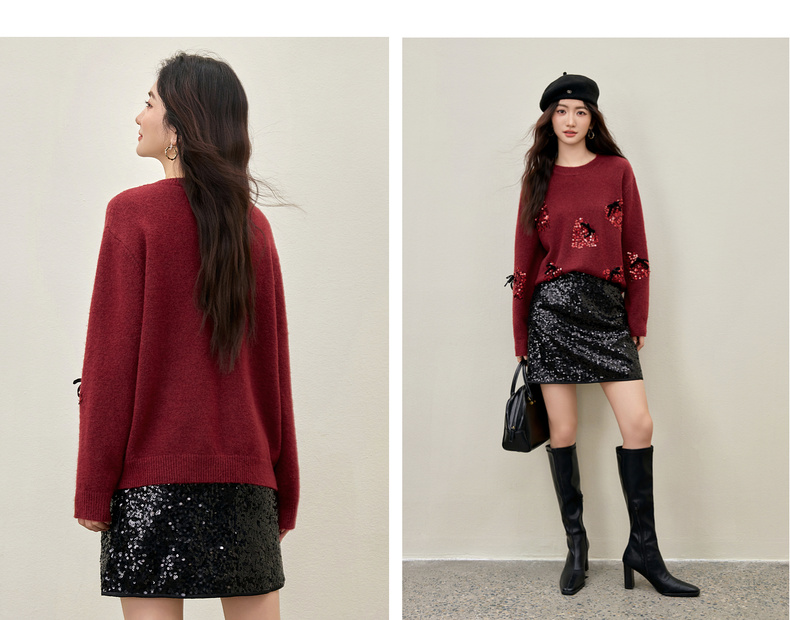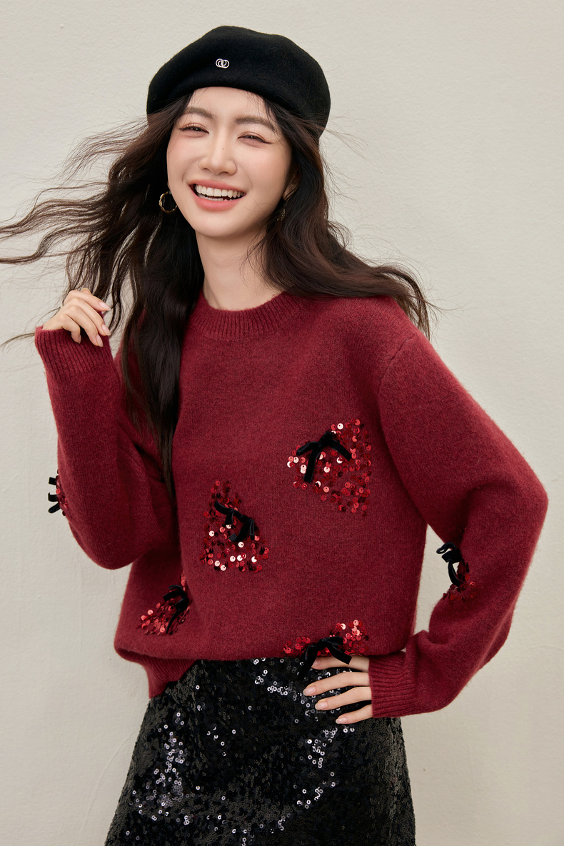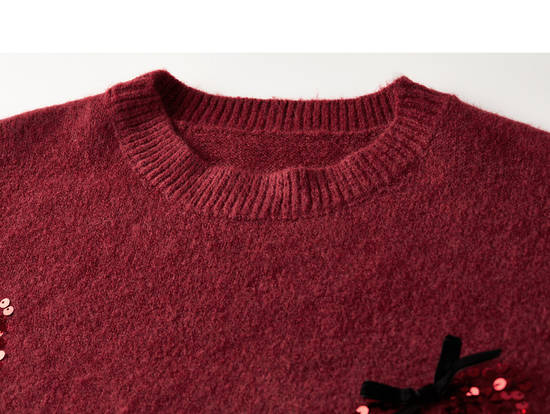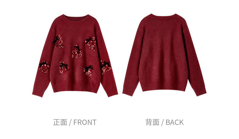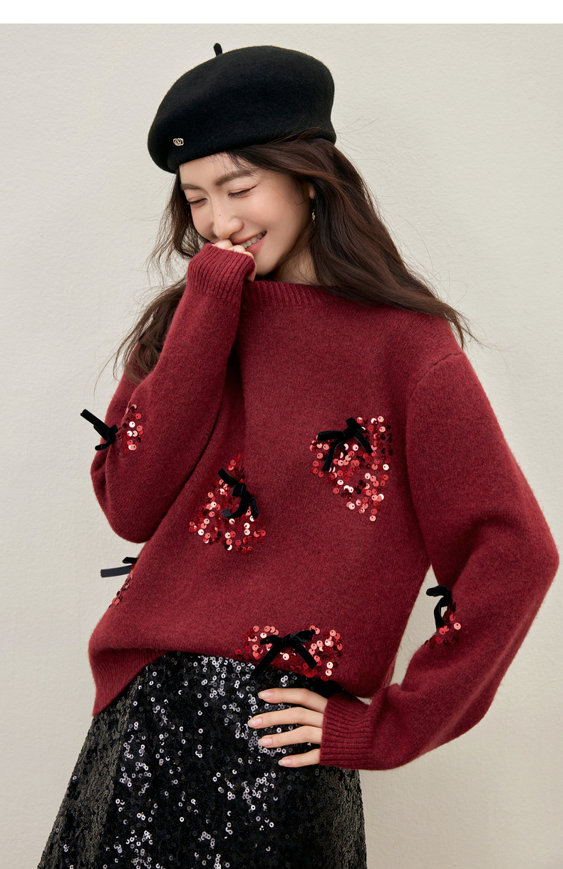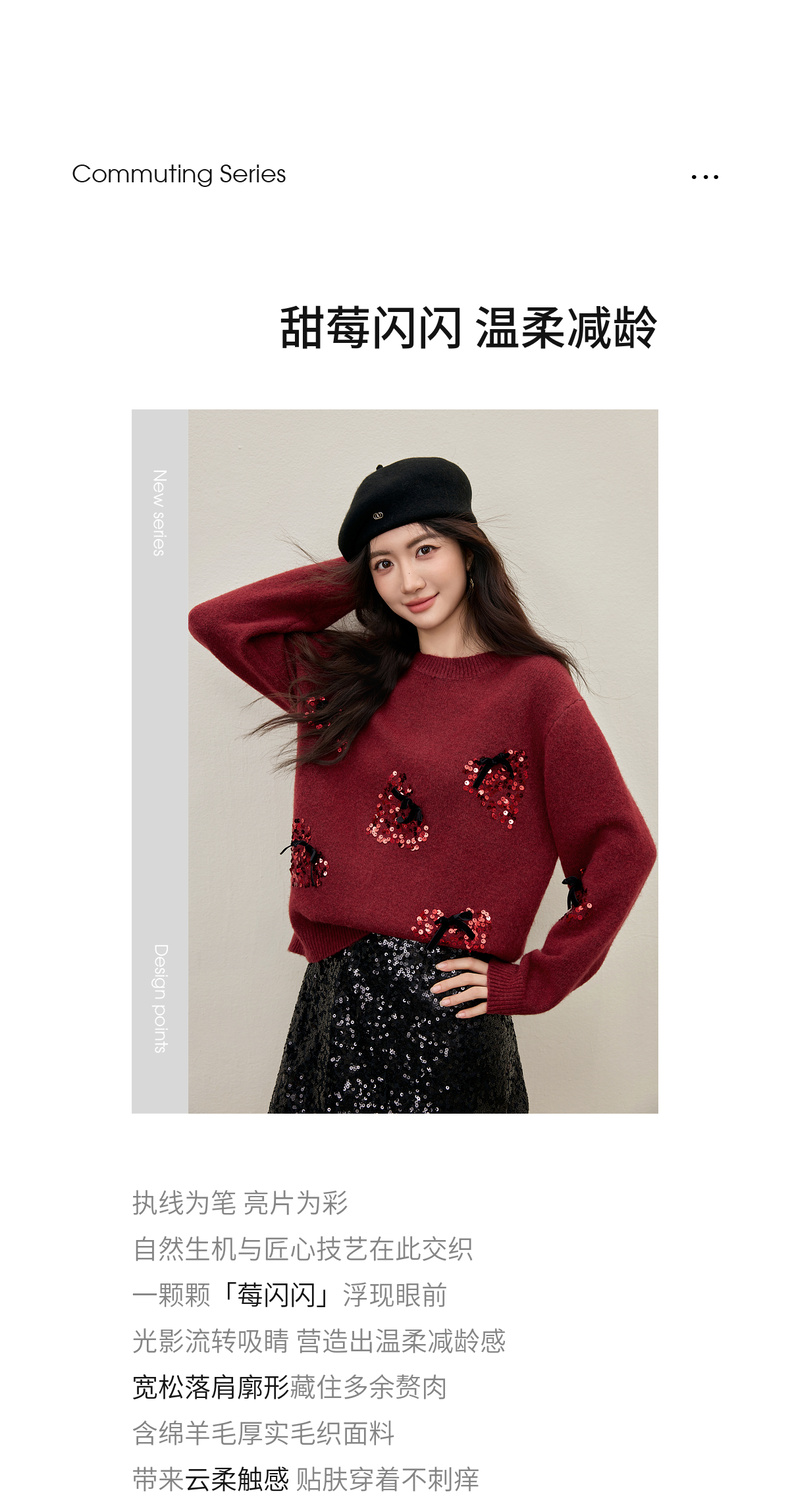 【内购】【莓闪闪】时尚通勤亮片草莓圆领落肩袖宽松显瘦含绵羊毛厚毛衣-W54EE3879