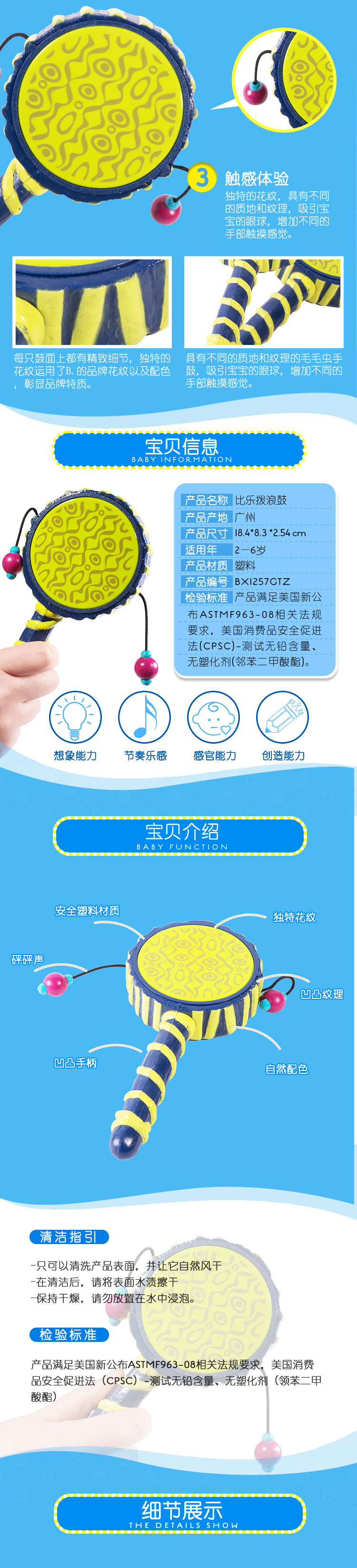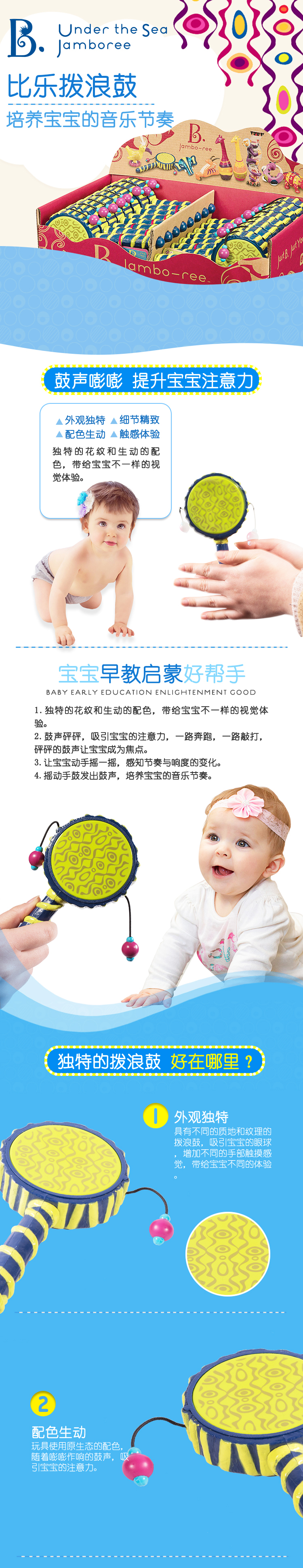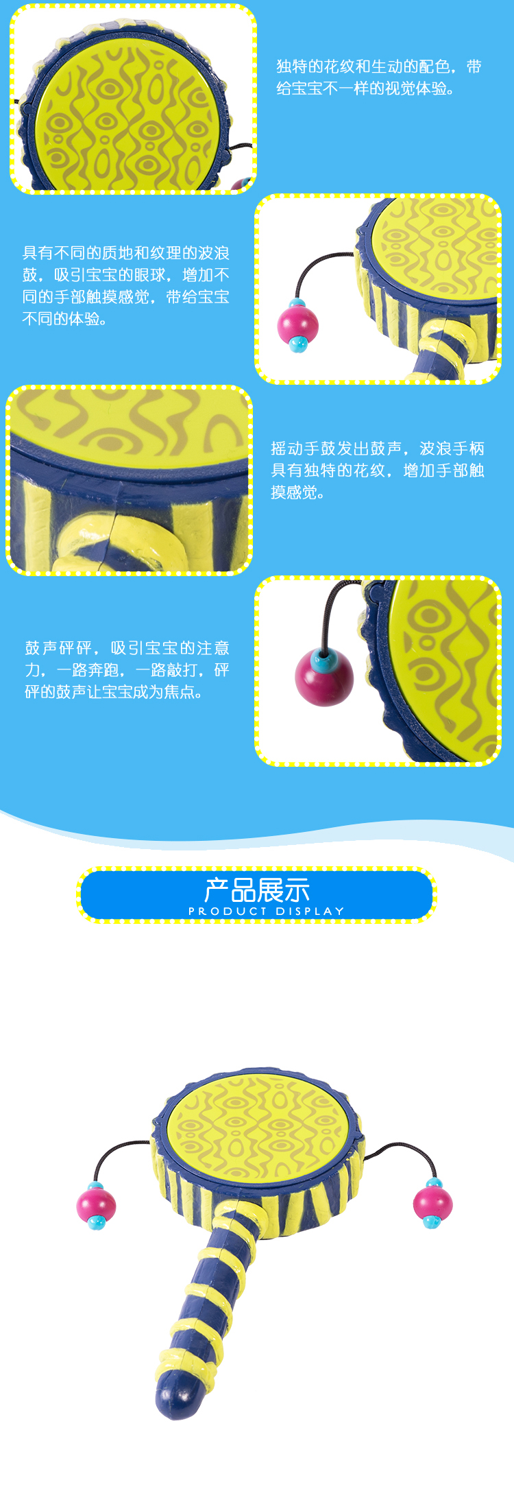 2-6岁 | 早教好帮手 | 美国B-toys 比乐 扭腰手鼓婴幼儿拨浪鼓宝宝扭腰手摇鼓益智玩具 1个装