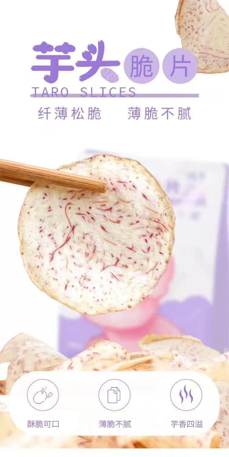 【产品亮点】1.原料选用紫纹细密的上品槟榔芋,芋头中的优质品种,香气浓郁的同时,含水量低、淀粉含量高,口感特别粉糯、味道清甜。 2.低温油浴炸酥工艺锁住香芋原香。