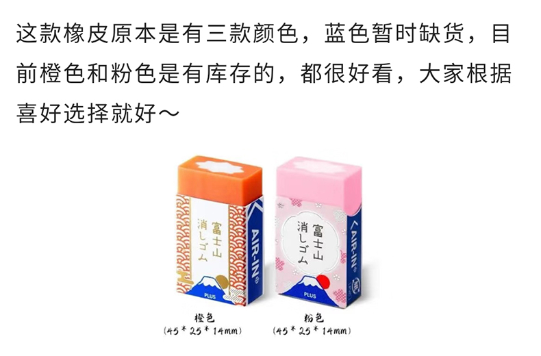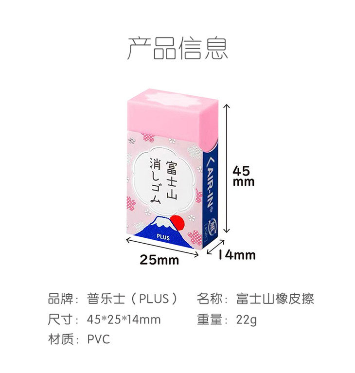 日本plus普乐士限定富士山橡皮擦省力易擦少碎屑普通学生创意