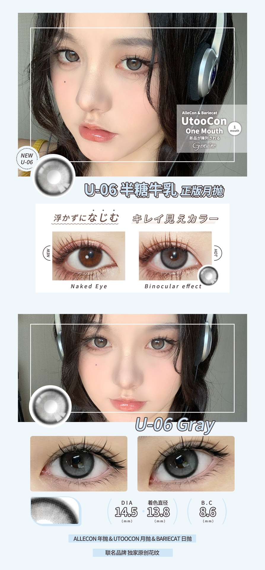Utoocon月抛 半糖牛乳 14.5mm 有同款日抛年抛 一盒不同度数写在备注里就好啦