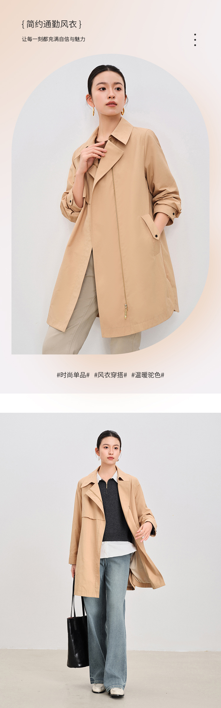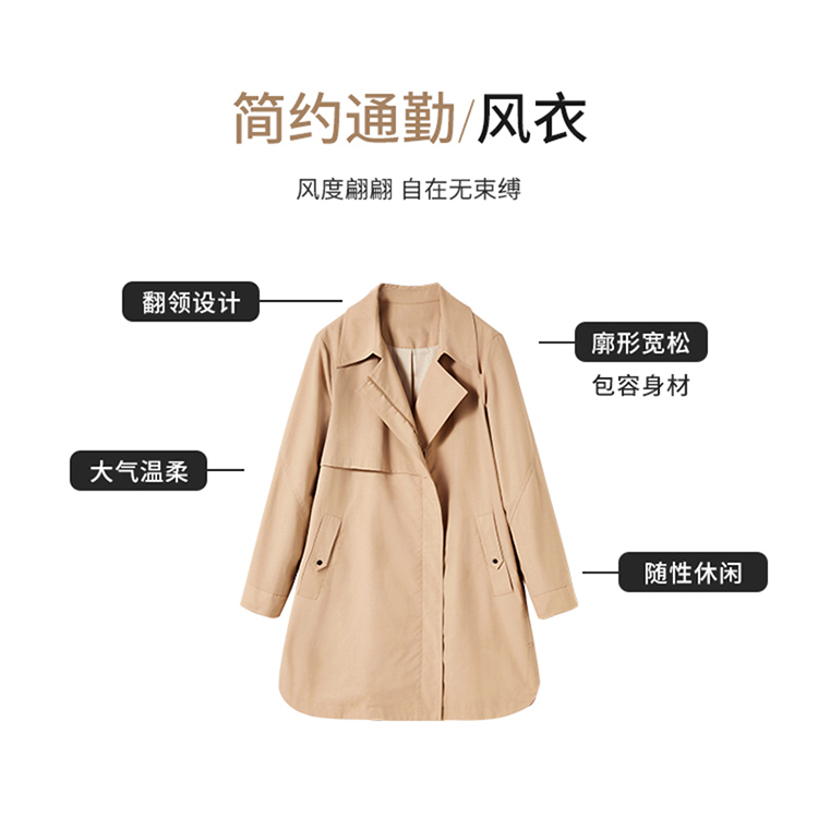 【商场同款】CNG4872 “极简通勤风衣” 温和驼色 宽松廓形 舒适包容身材 翻领结合拉链 大气洒脱 一手长小个子也适合 春秋风衣