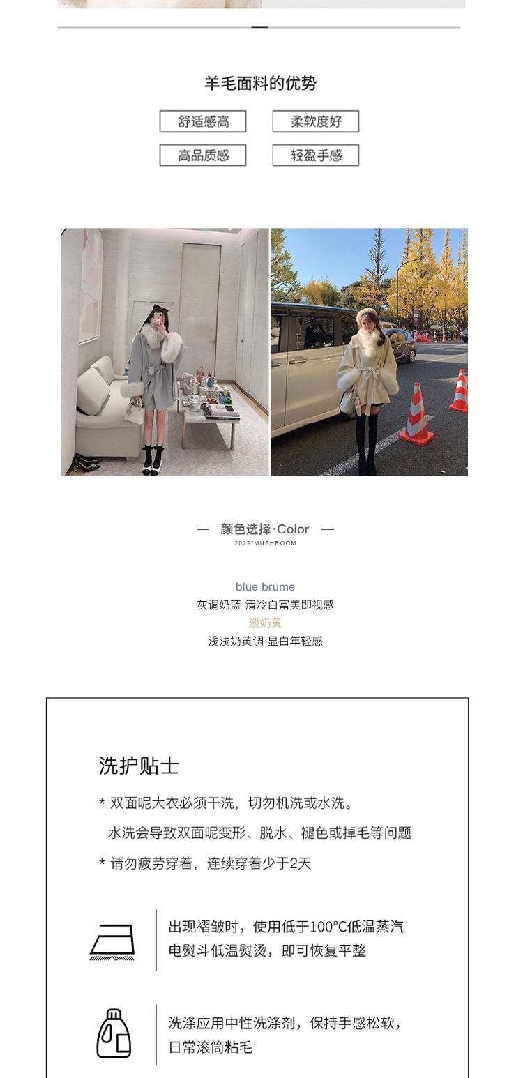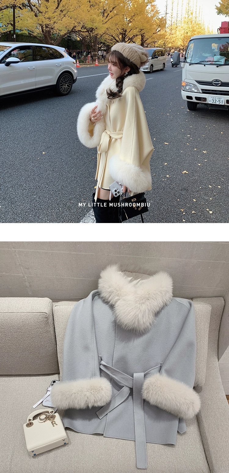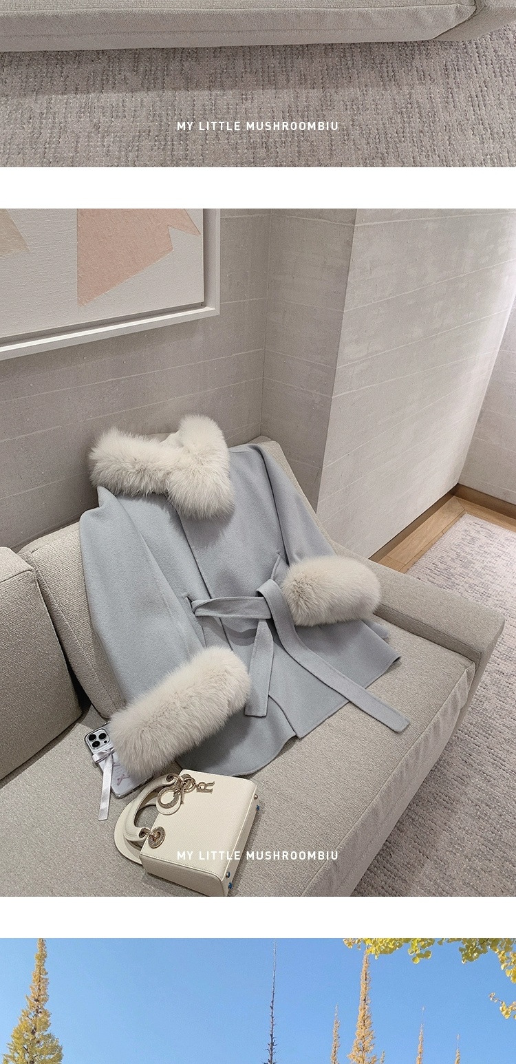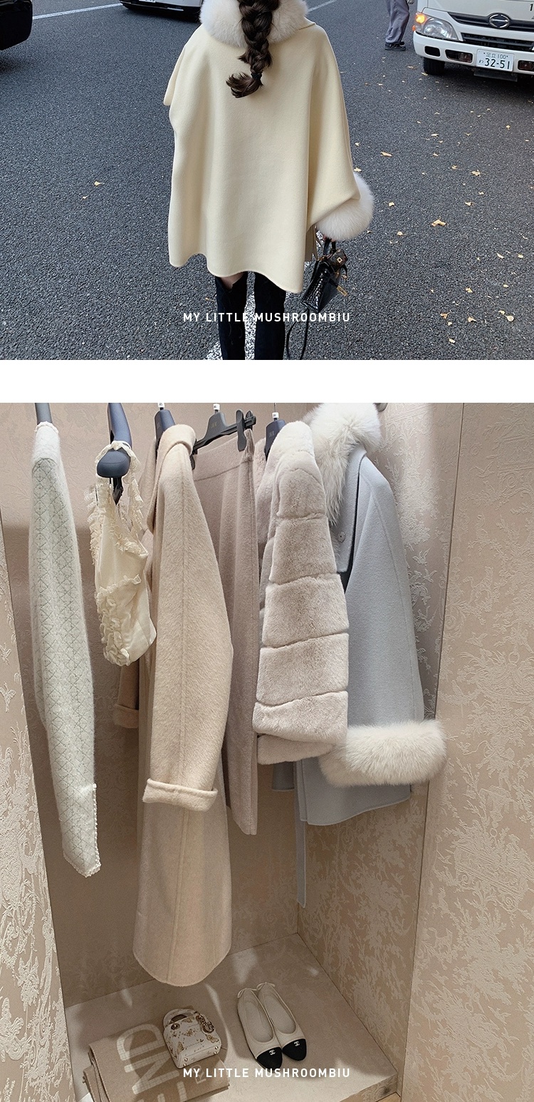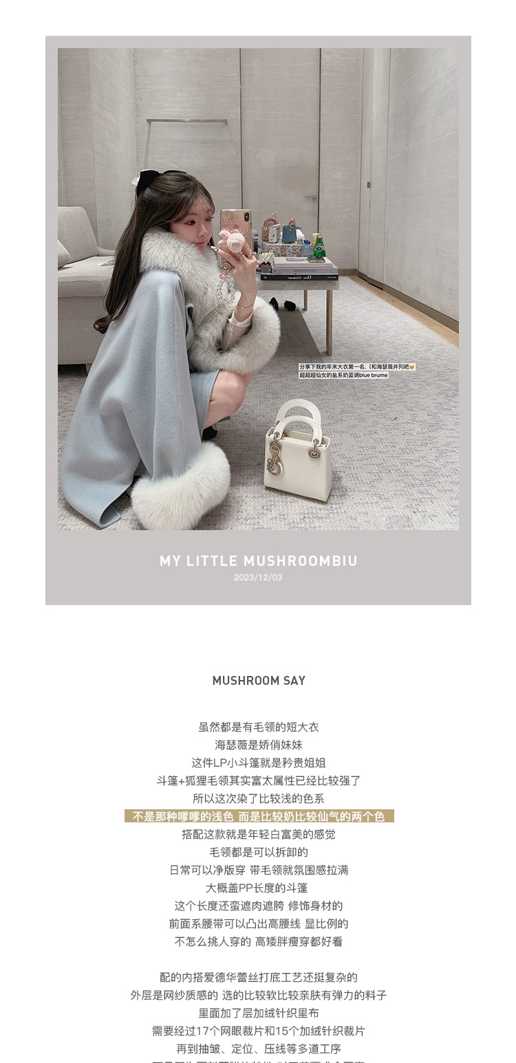 金蘑菇菇 Ombres玉兔 lp小斗篷系列/ 10羊绒狐狸毛领双面呢大衣