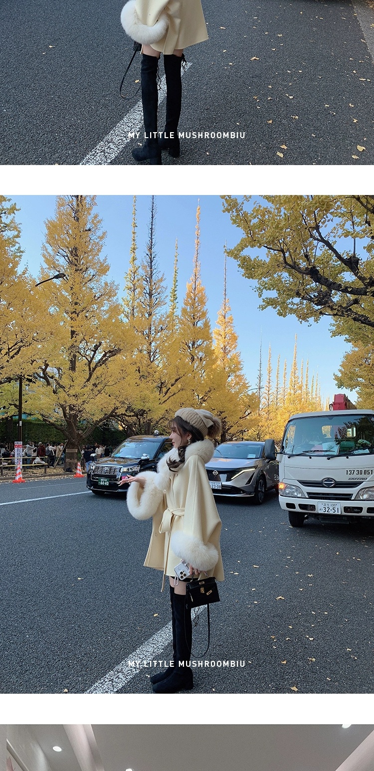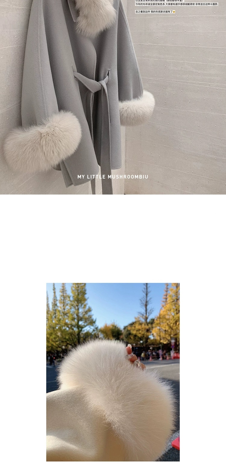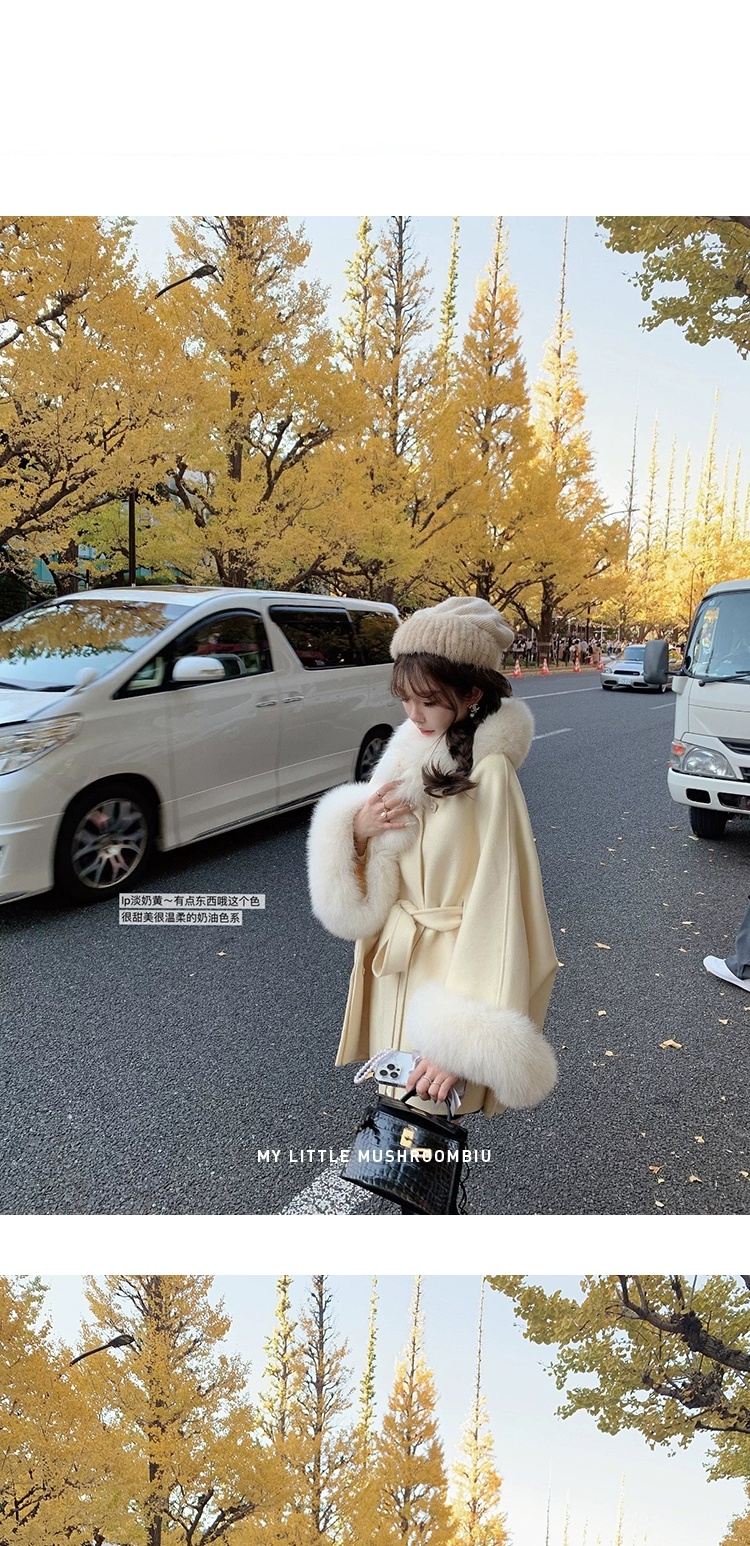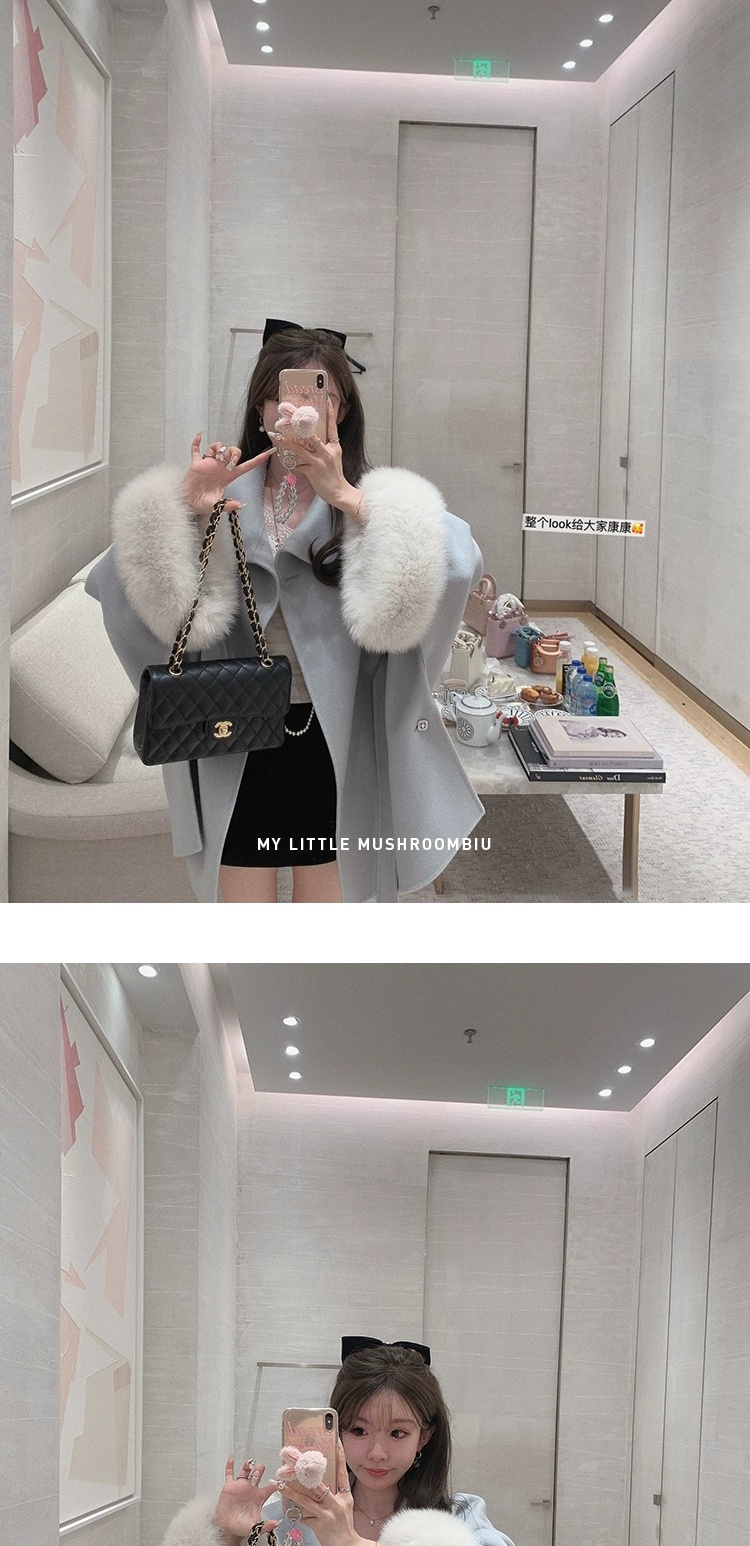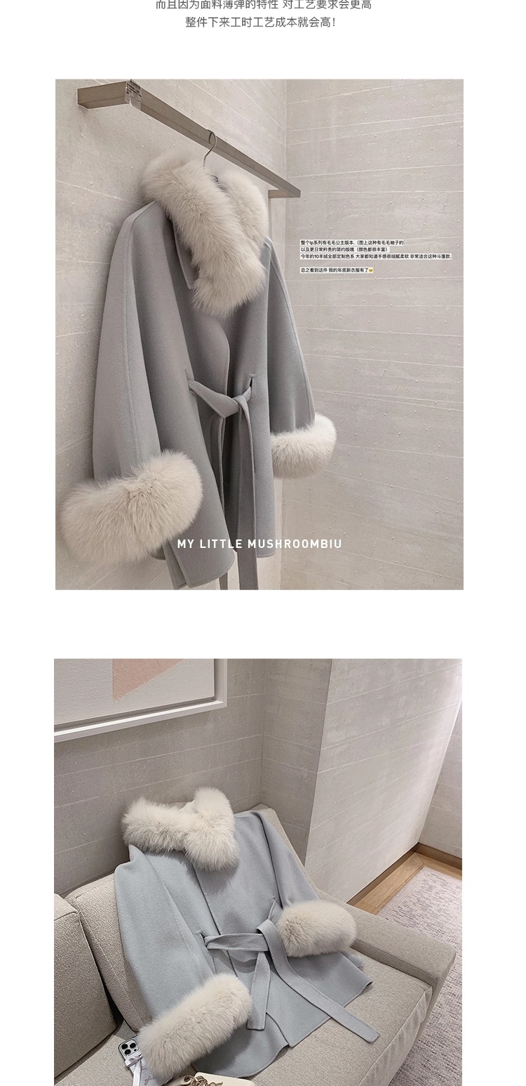 金蘑菇菇 Ombres玉兔 lp小斗篷系列/ 10羊绒狐狸毛领双面呢大衣