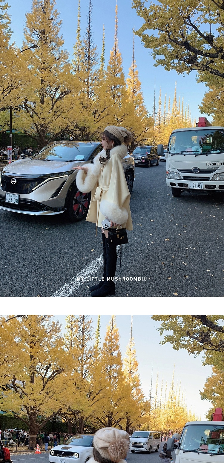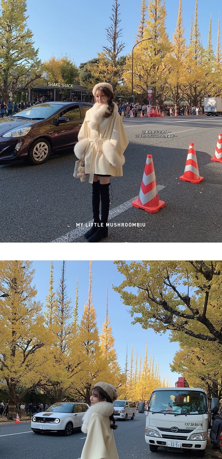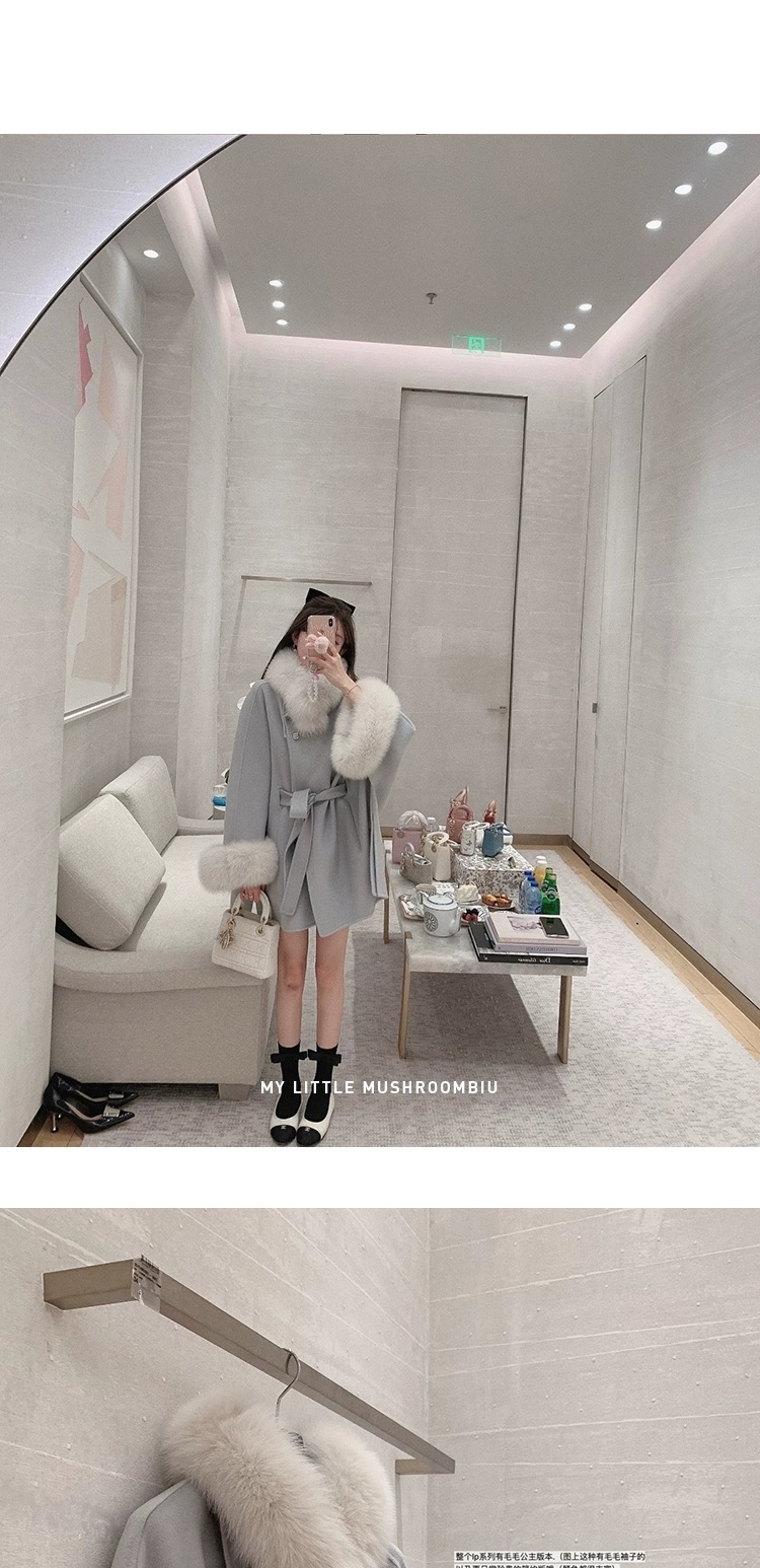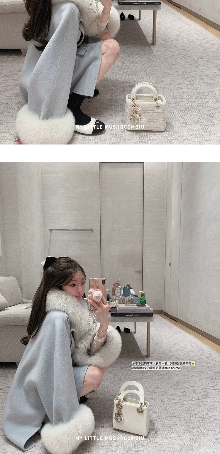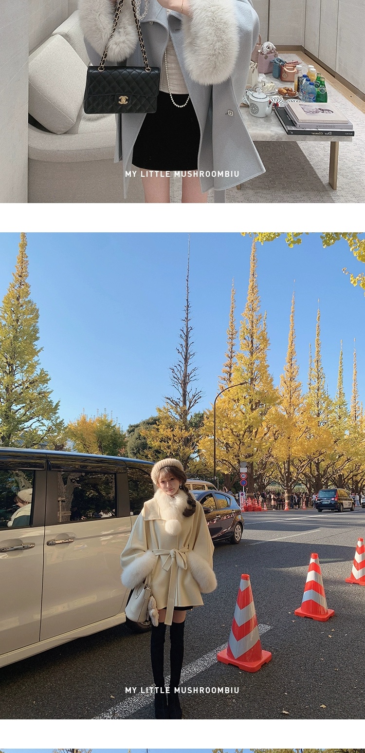 金蘑菇菇 Ombres玉兔 lp小斗篷系列/ 10羊绒狐狸毛领双面呢大衣