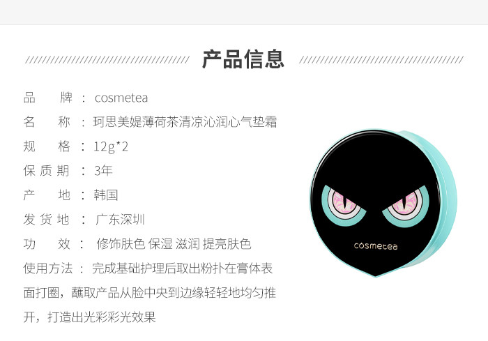 【底妆第一步】cosmetea珂思美媞小怪兽薄荷茶清凉沁润心气垫霜