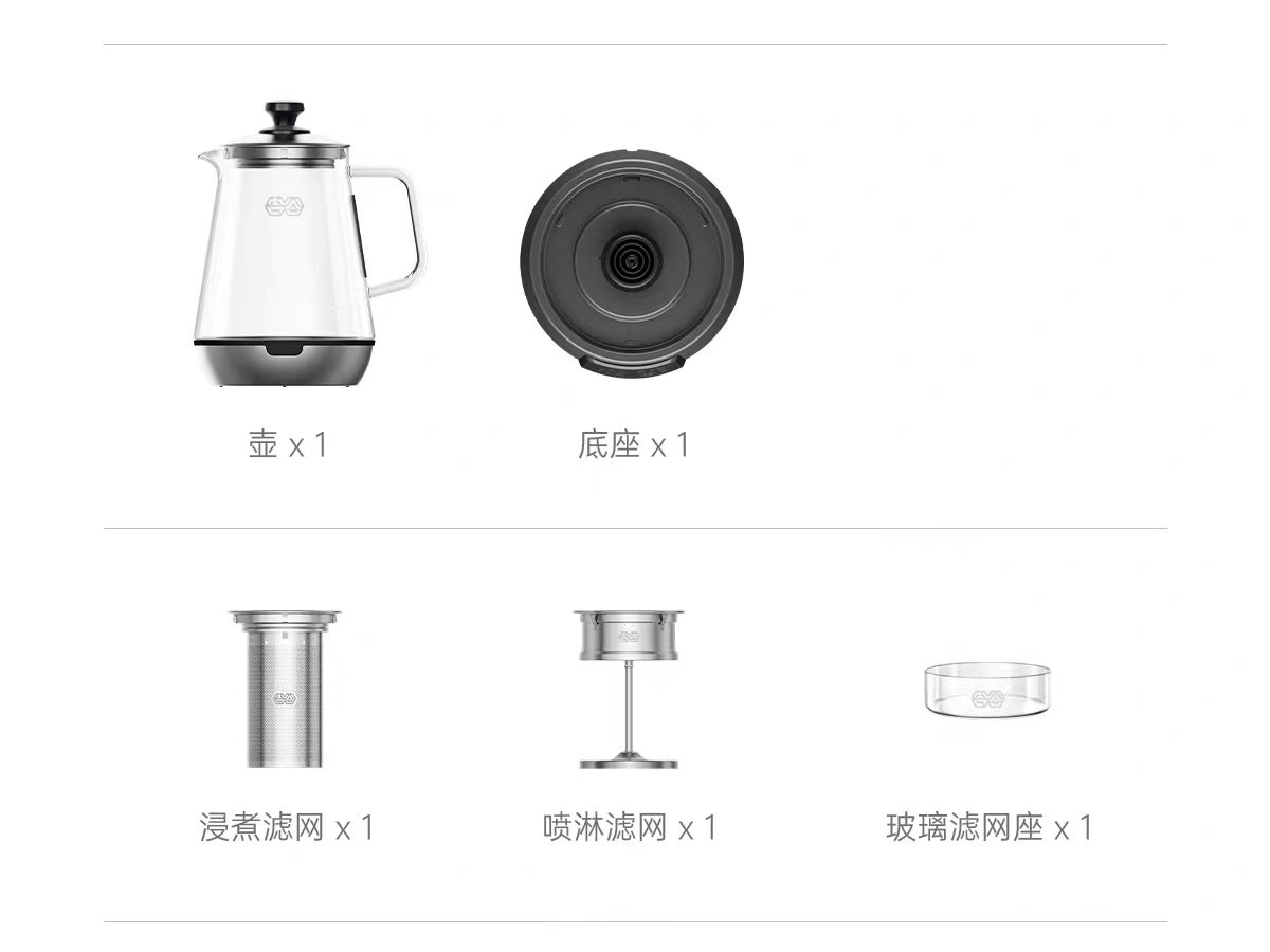 吉谷喷淋式煮茶器烧水壶泡茶专用玻璃煮茶壶恒温一体茶壶粹+TA007