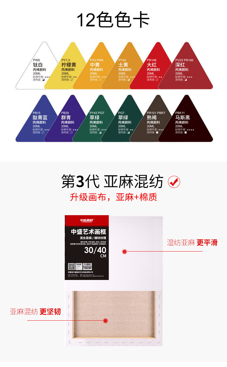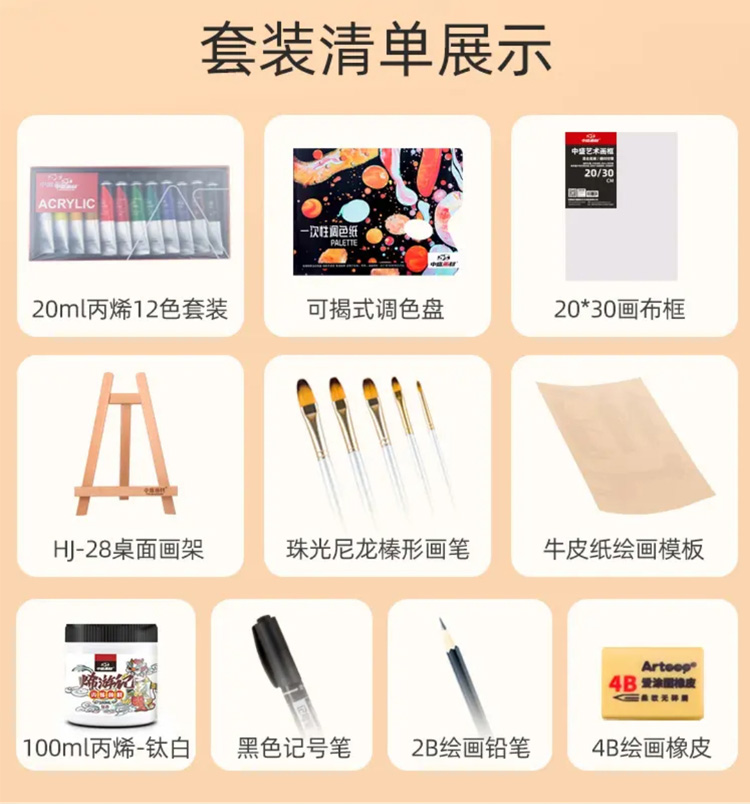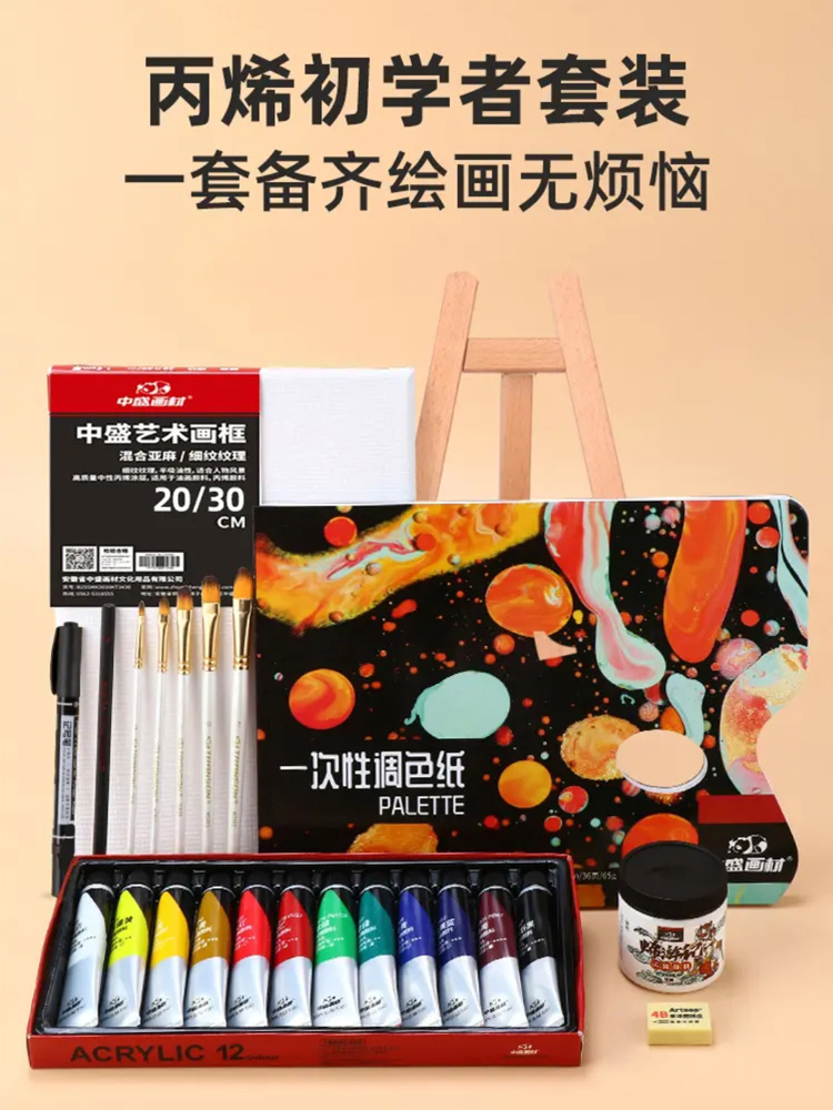 中盛画材美术高考色彩画笔扇形笔水粉水彩油画笔15支套装带笔包