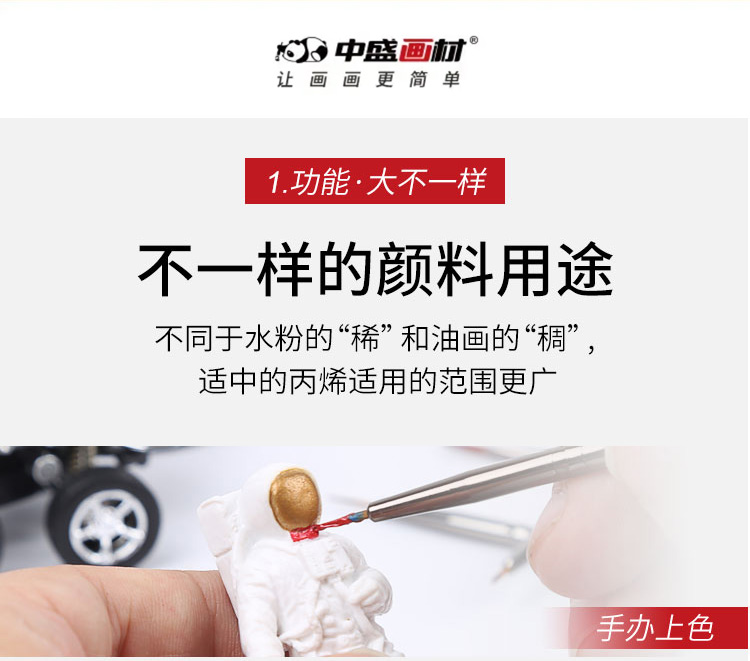 中盛画材 尼龙毛长杆圆峰水粉笔 G1630圆头油画笔水彩笔单支