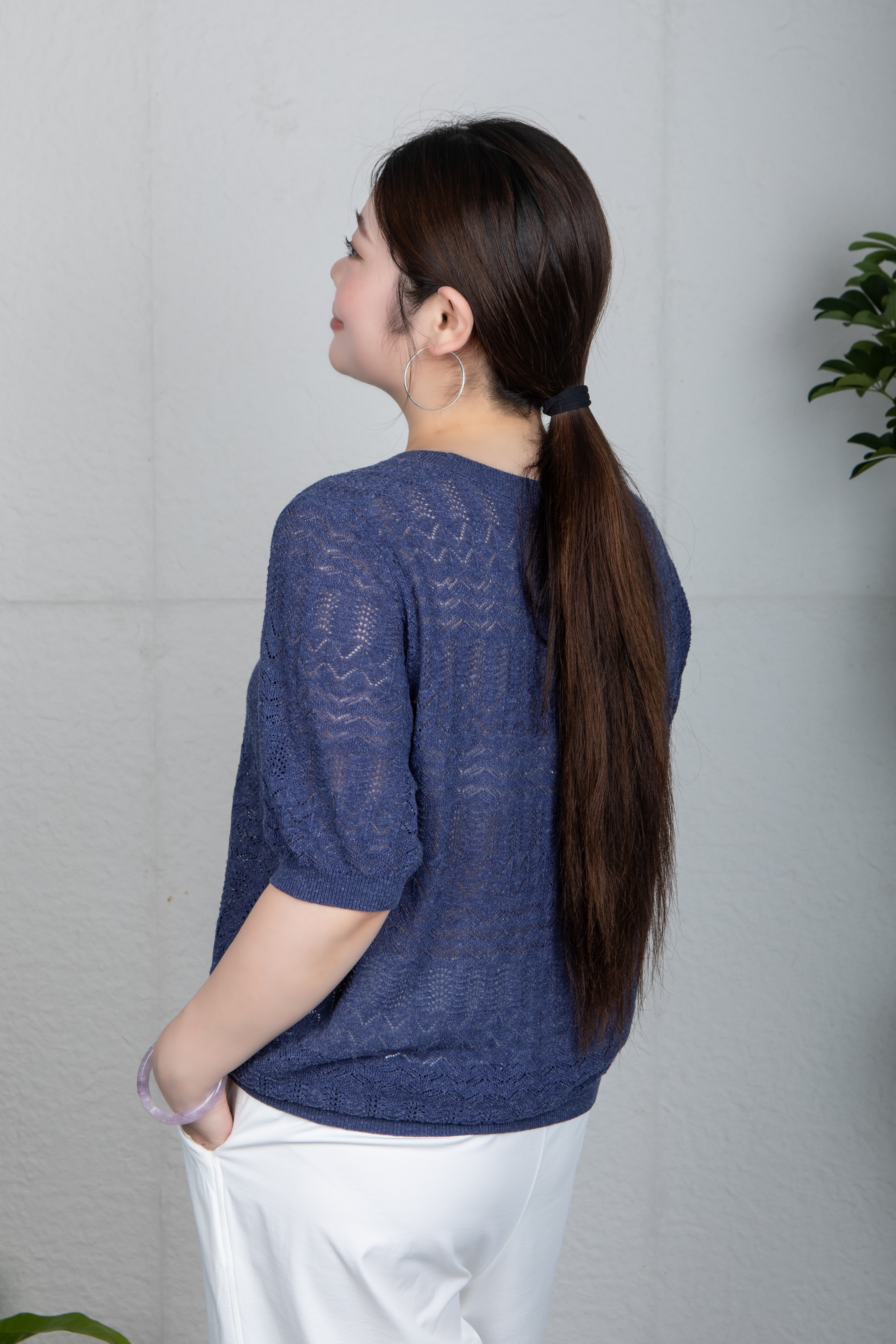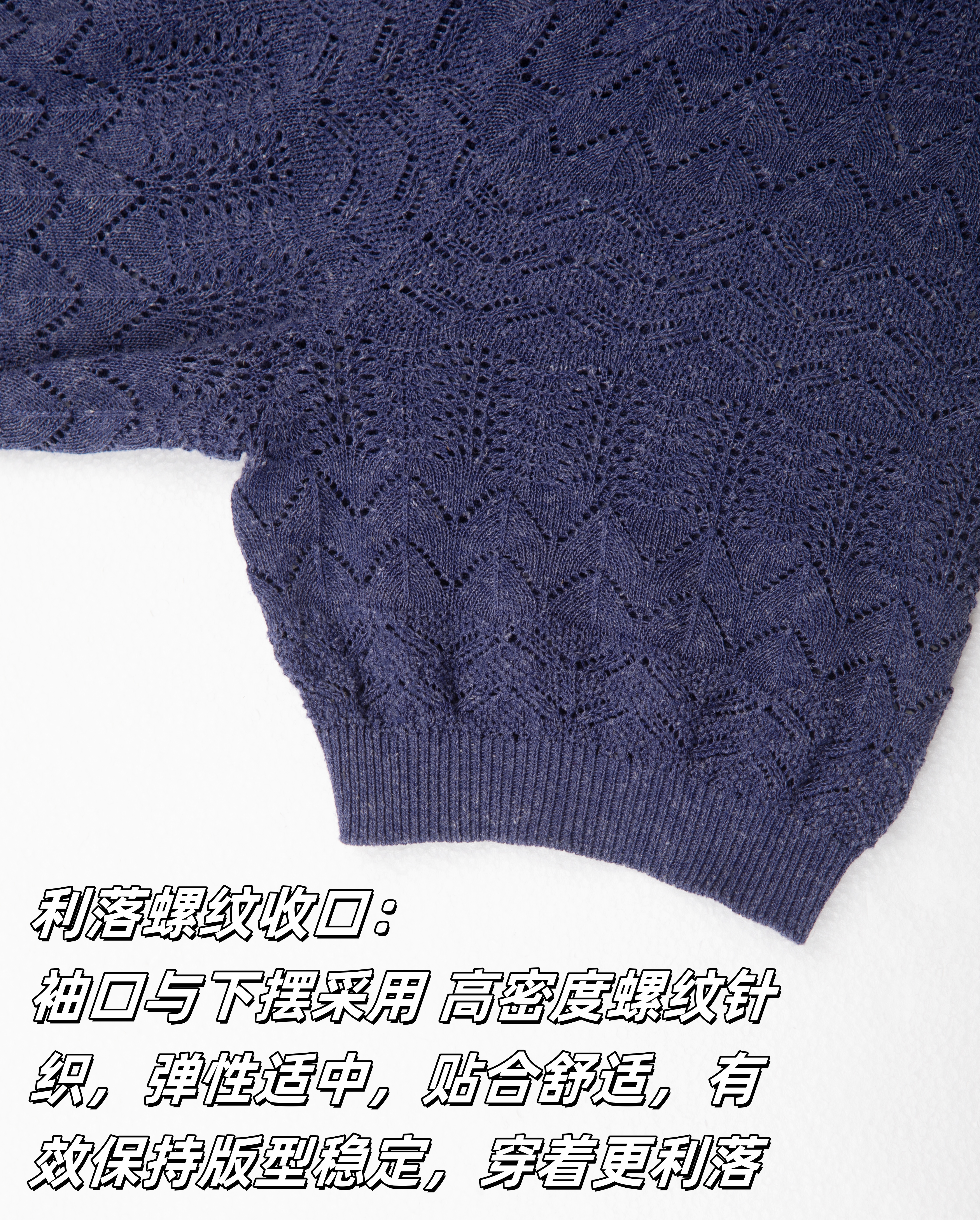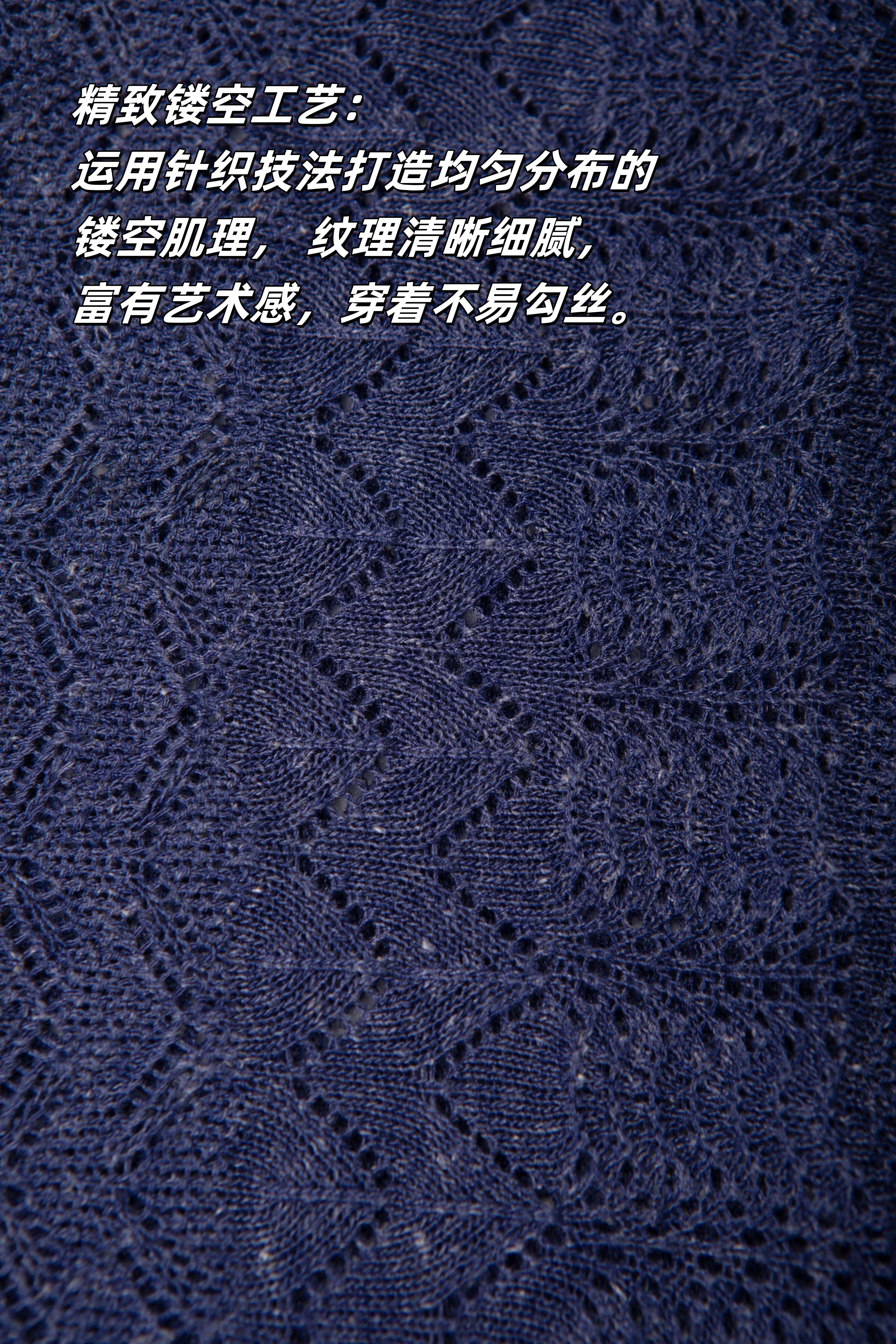 精致镂空工艺: 运用特殊针织技法打造均匀分布的镂空肌理, 纹理清晰细腻,富有艺术感,穿着不易勾丝。