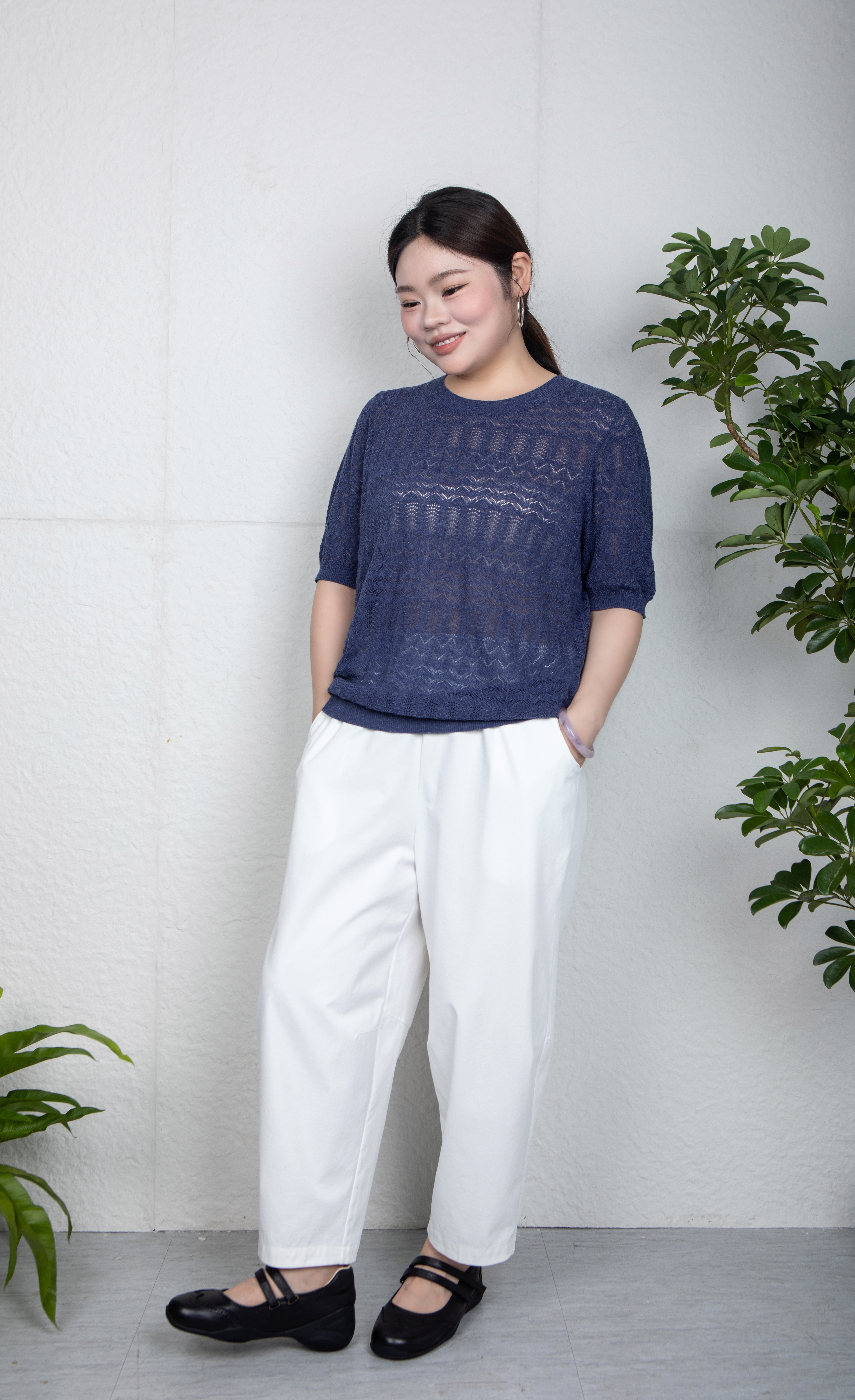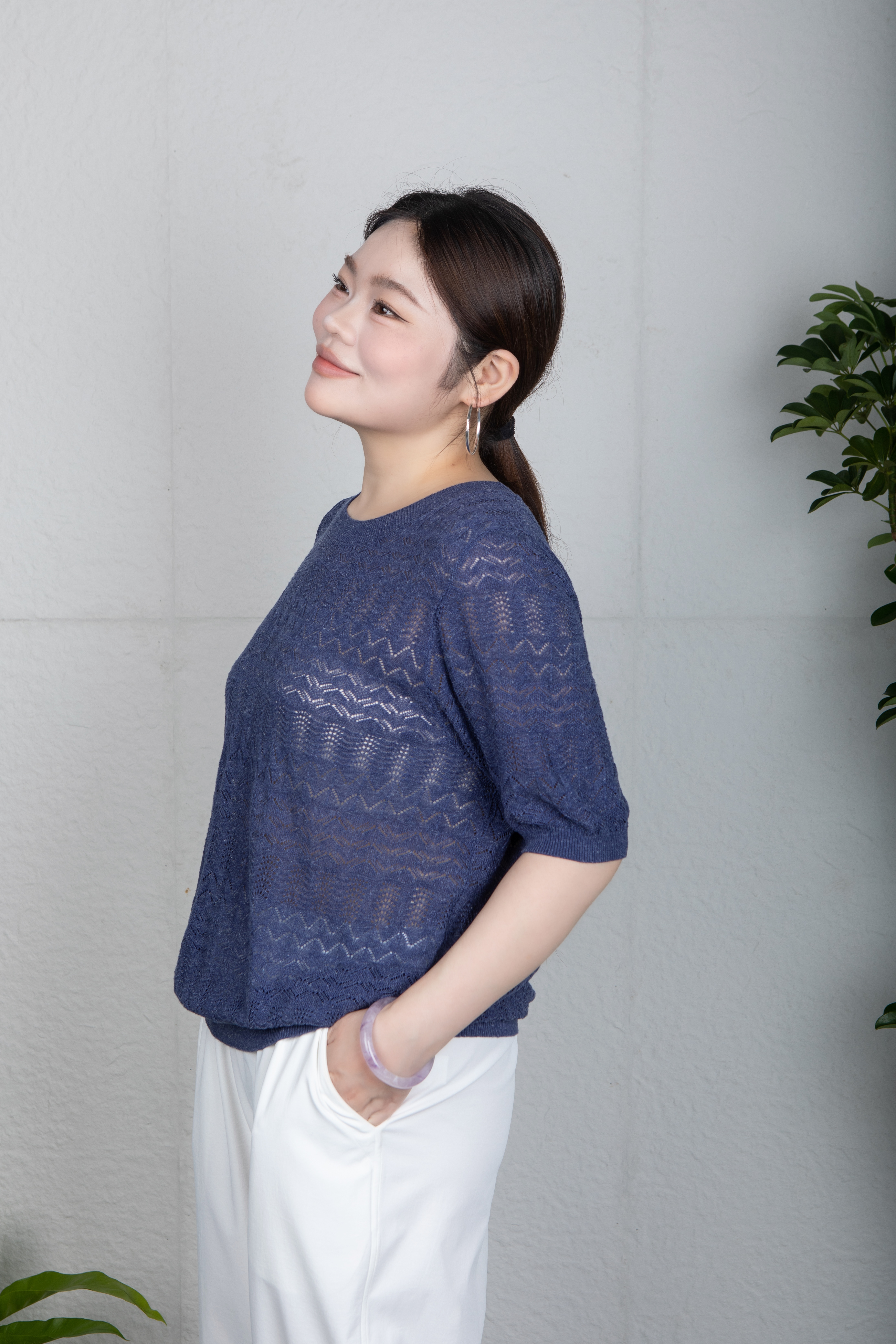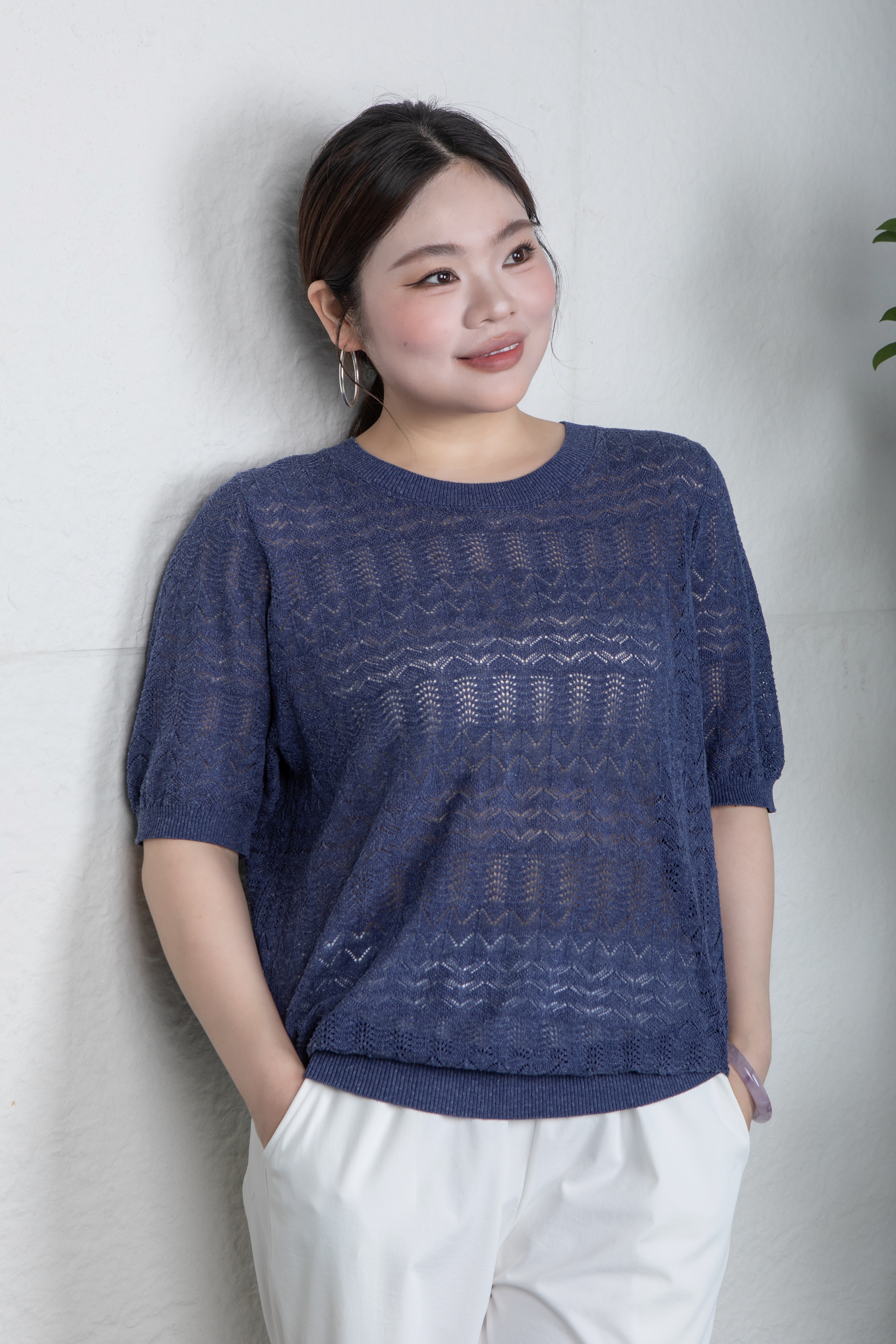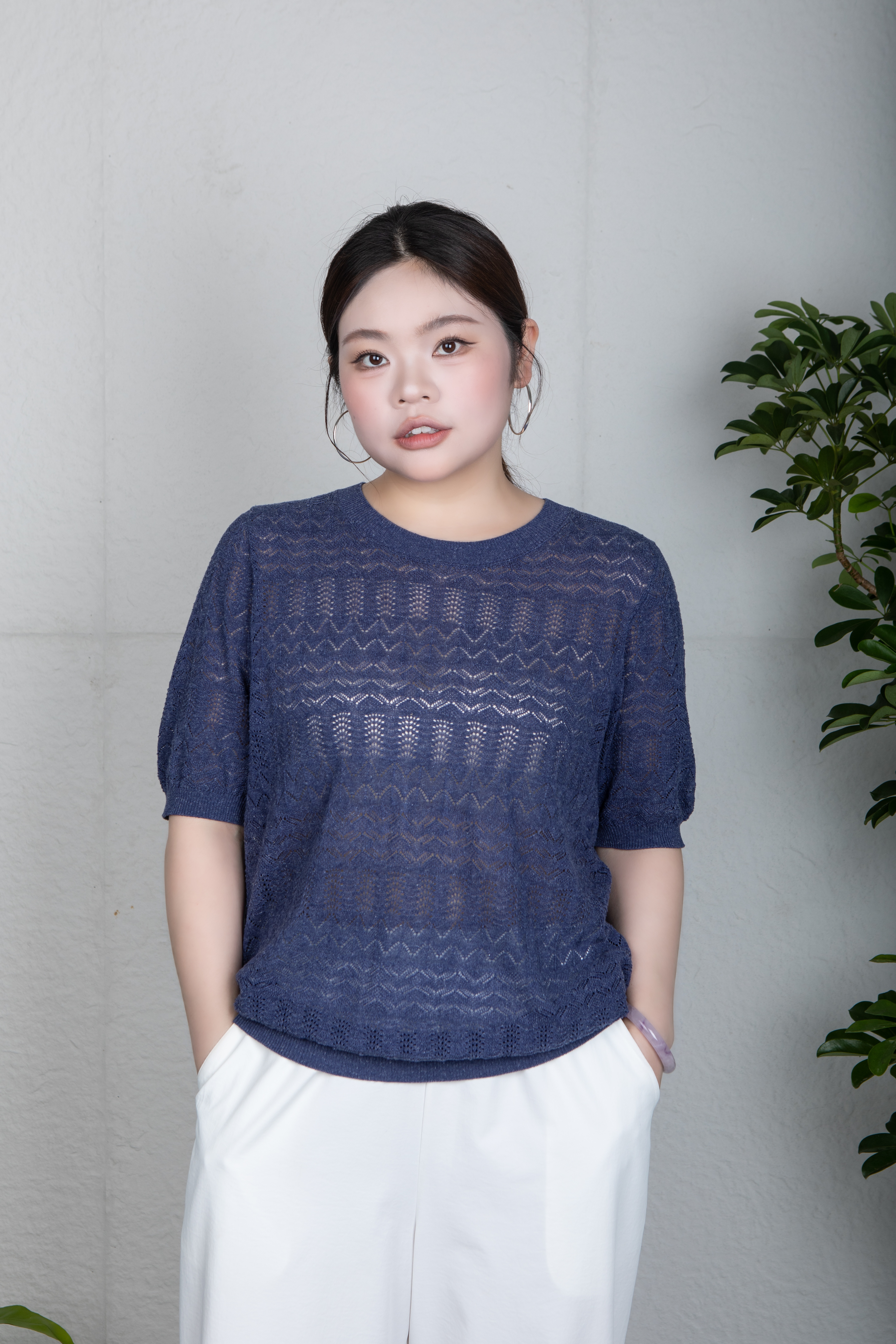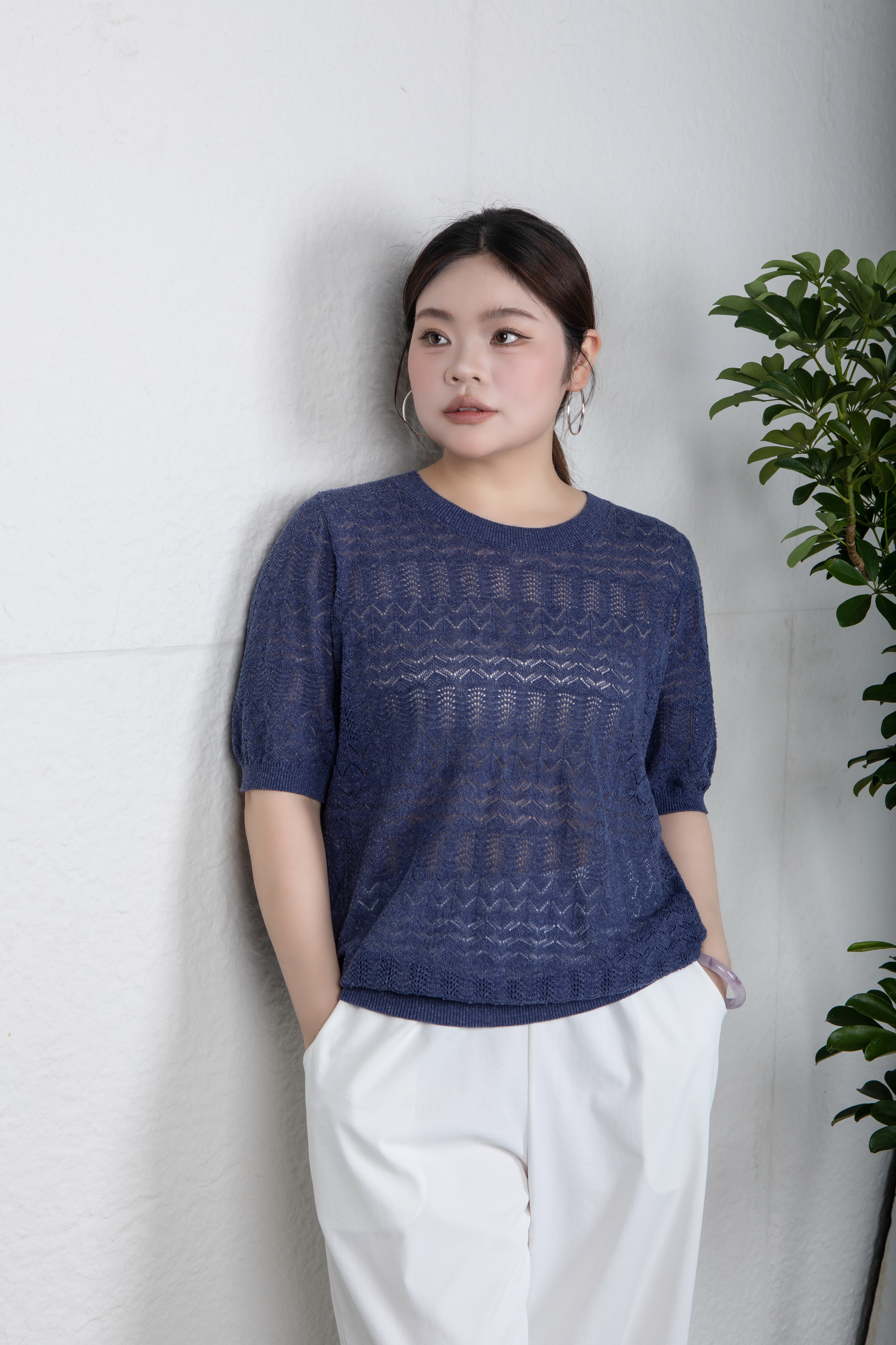 疏密有致的孔洞,不仅带来 视觉上的朦胧美感与层次感,更赋予面料 卓越的透气性,让肌肤自在呼吸,轻松应对夏日升温。