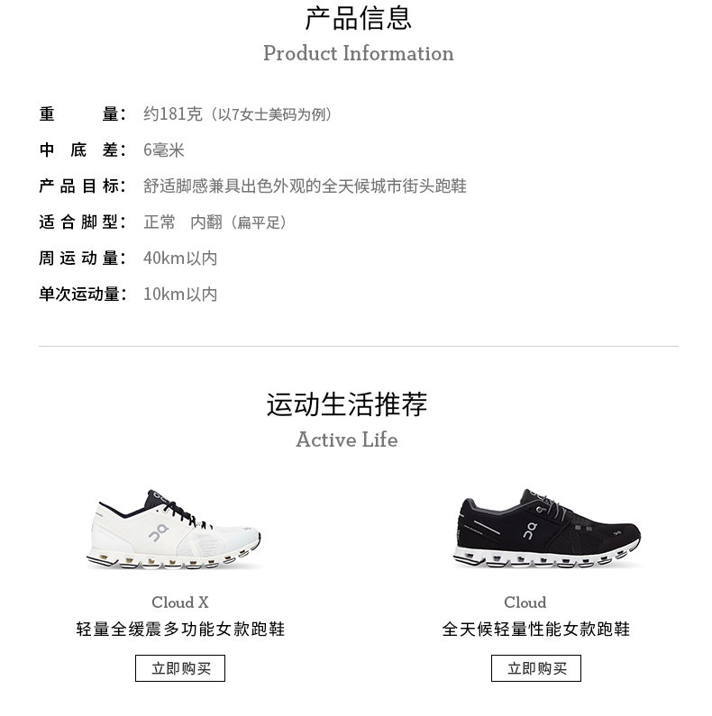 On昂跑 全天候轻量减震女款城市跑鞋 Cloud Terry