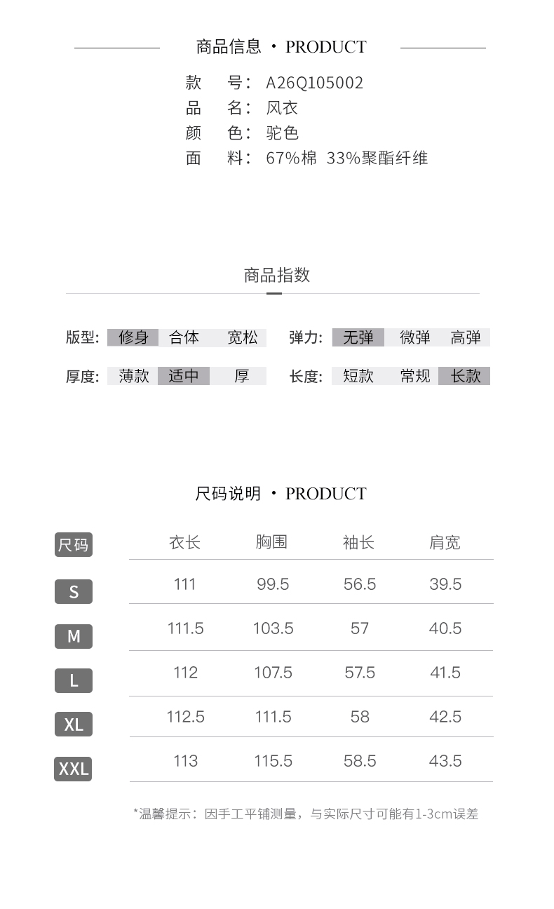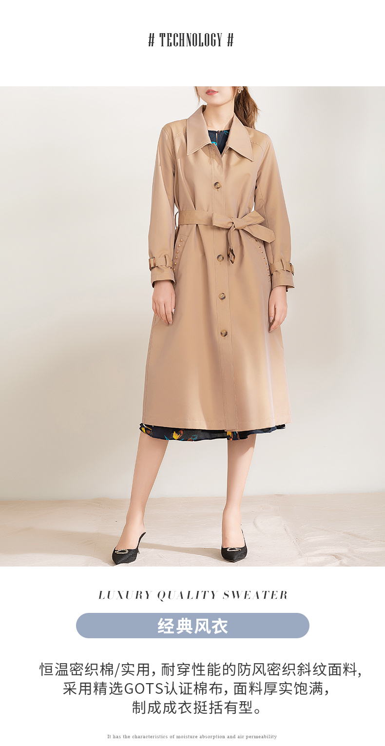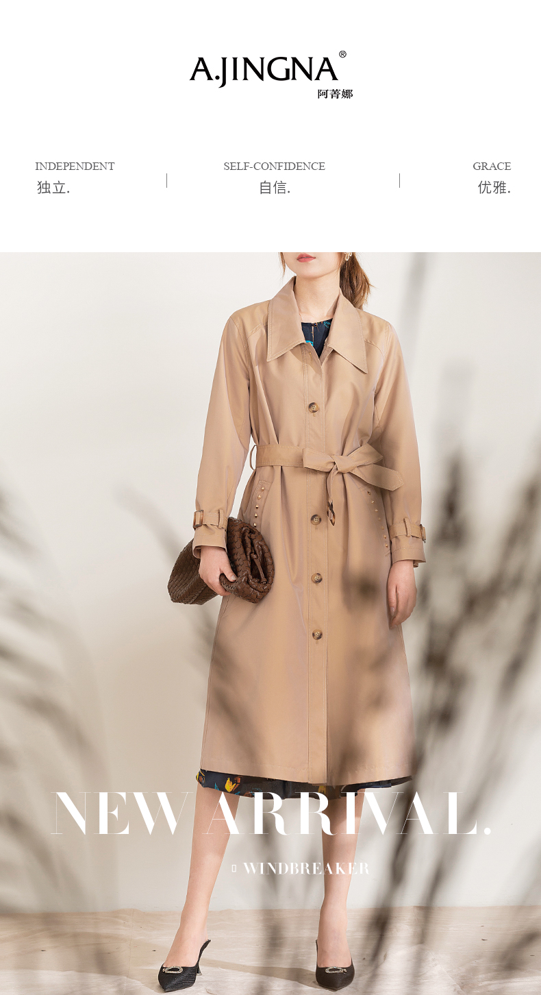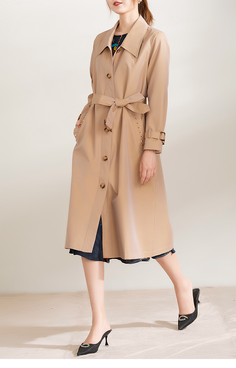 【特价款不退不换】阿菁娜经典驼色铆钉长款风衣A26Q105002