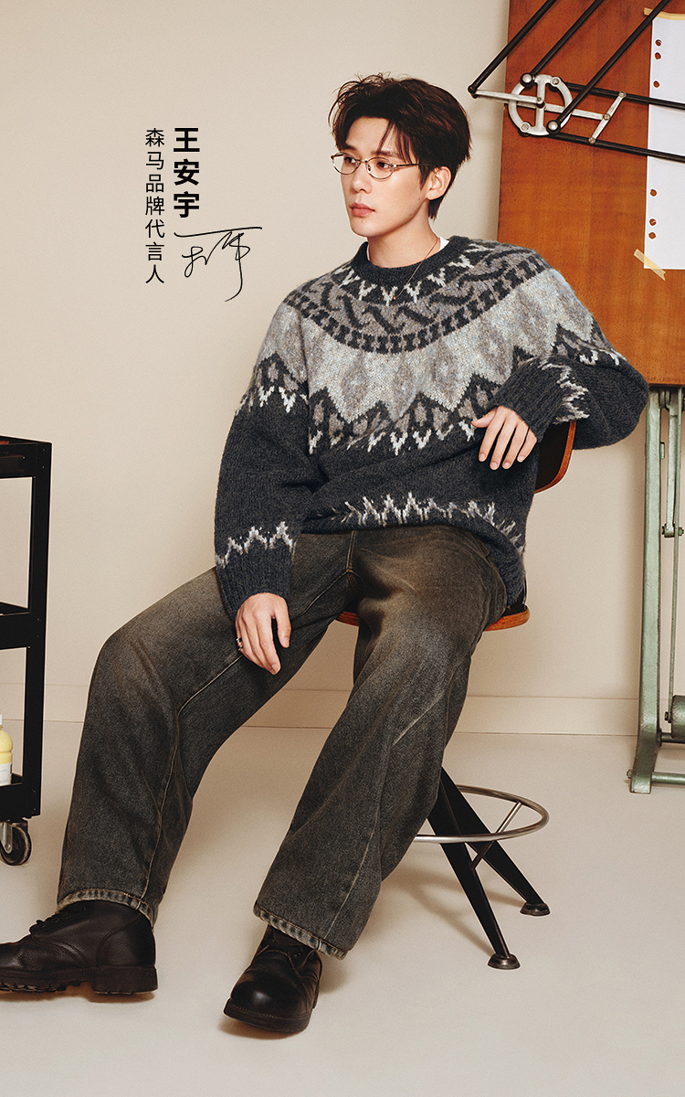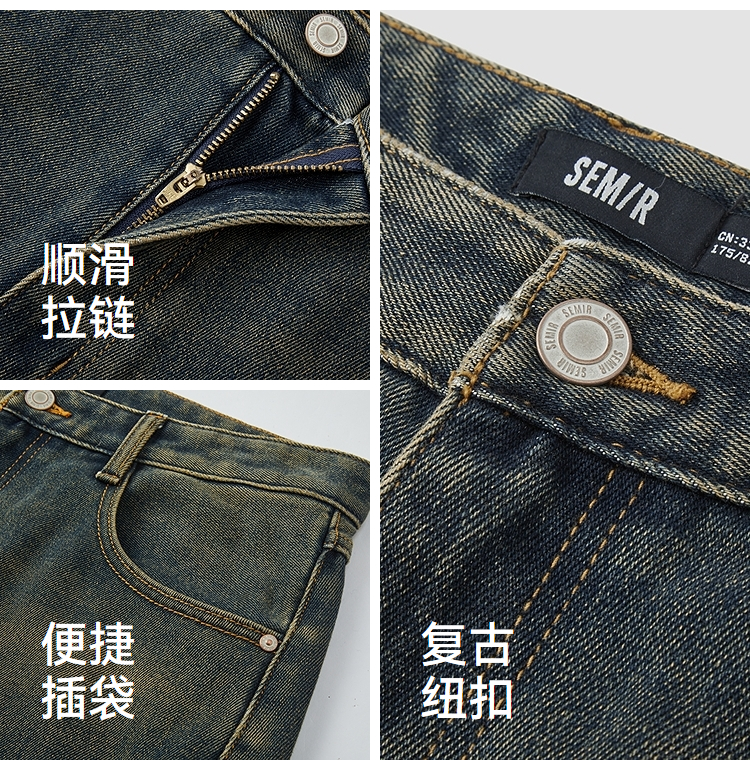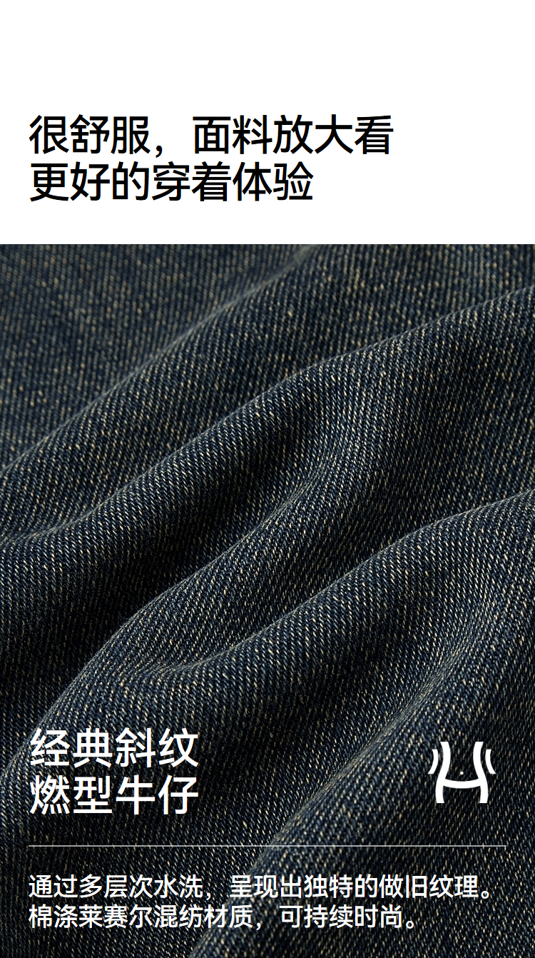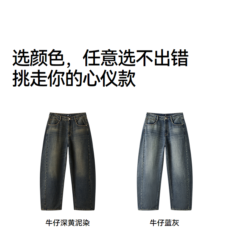 森马牛仔裤男做旧复古阔感弯刀裤宽松弧形裤2025冬新款长裤丹宁布