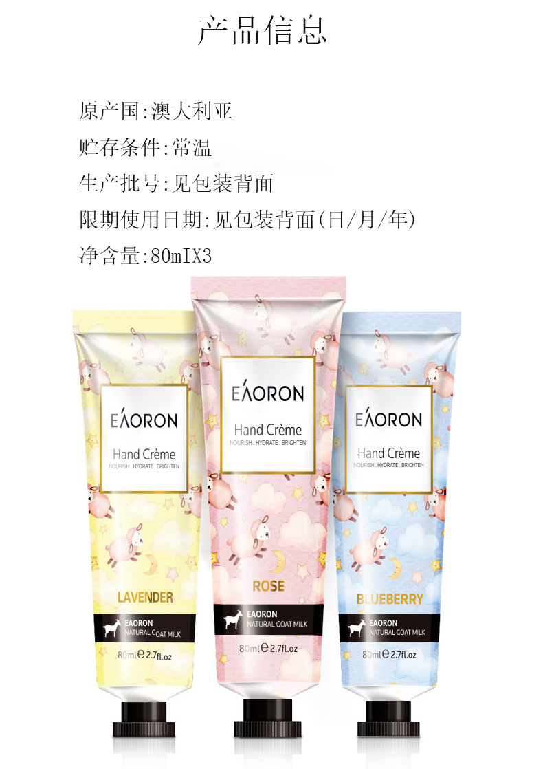 澳洲 Eaoron/澳容 山羊奶护手霜3件套80ml*3 保湿不油腻/滋润(效期:27年12月)