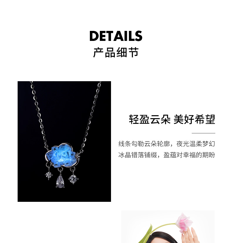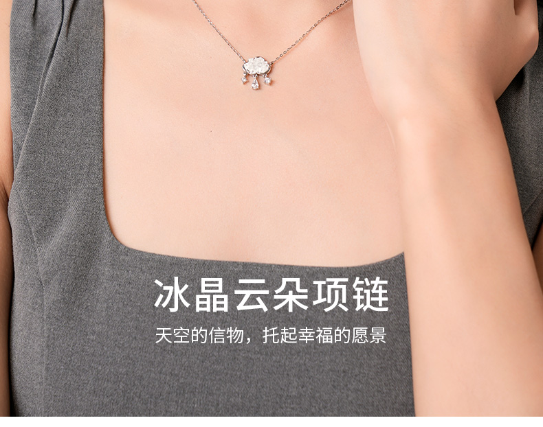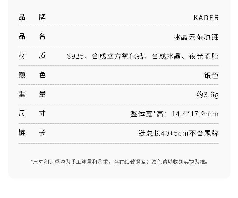 KADER卡蒂罗冰晶云朵项链女S925银小众设计感锁骨链生日礼物送女友送闺蜜