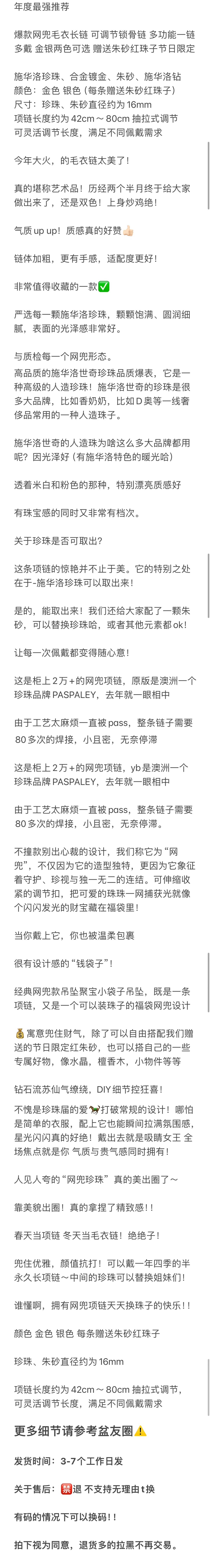 年度推荐 网兜毛衣长链 可调节锁骨链 多功能一链多戴 赠送朱砂红珠子节日限定