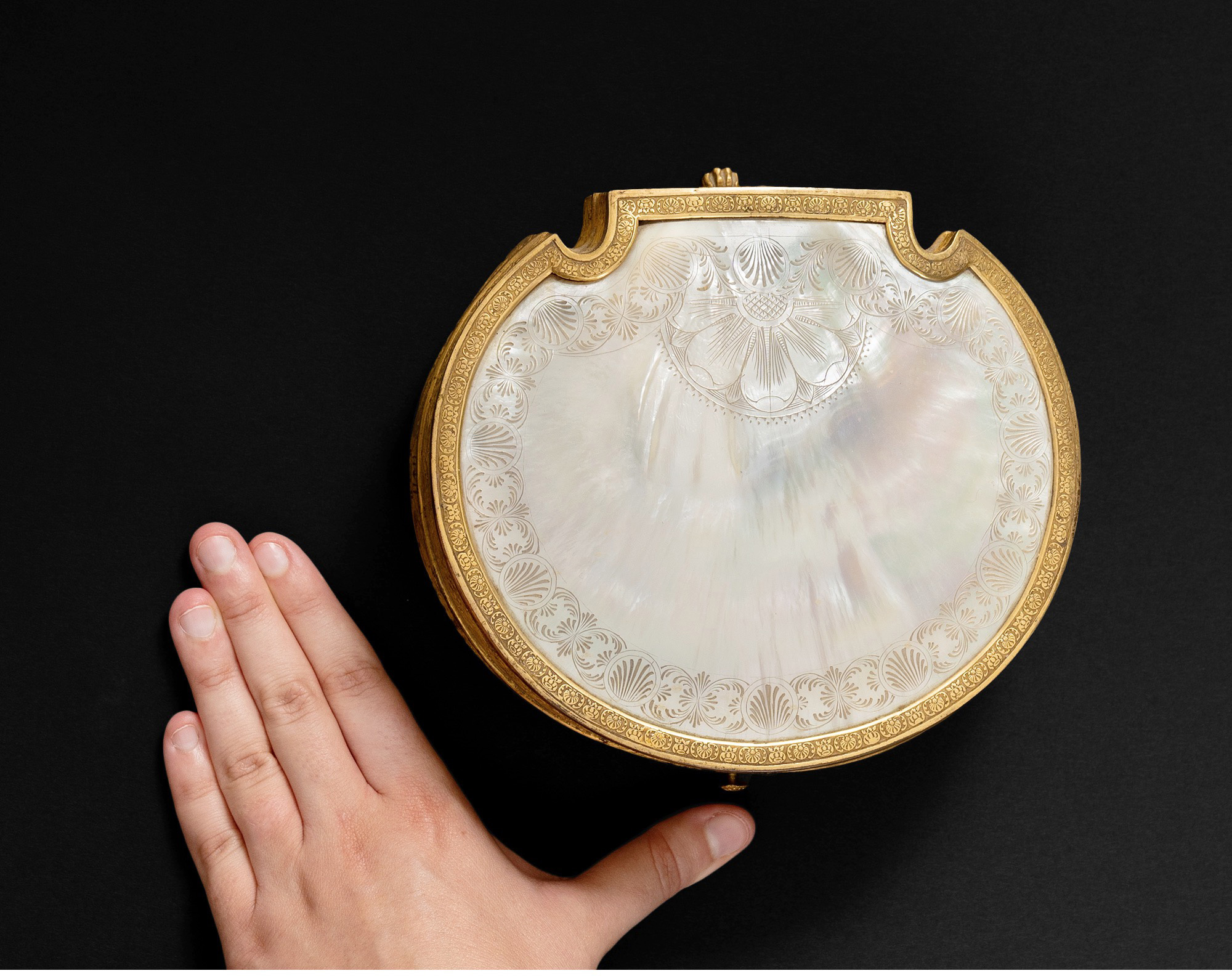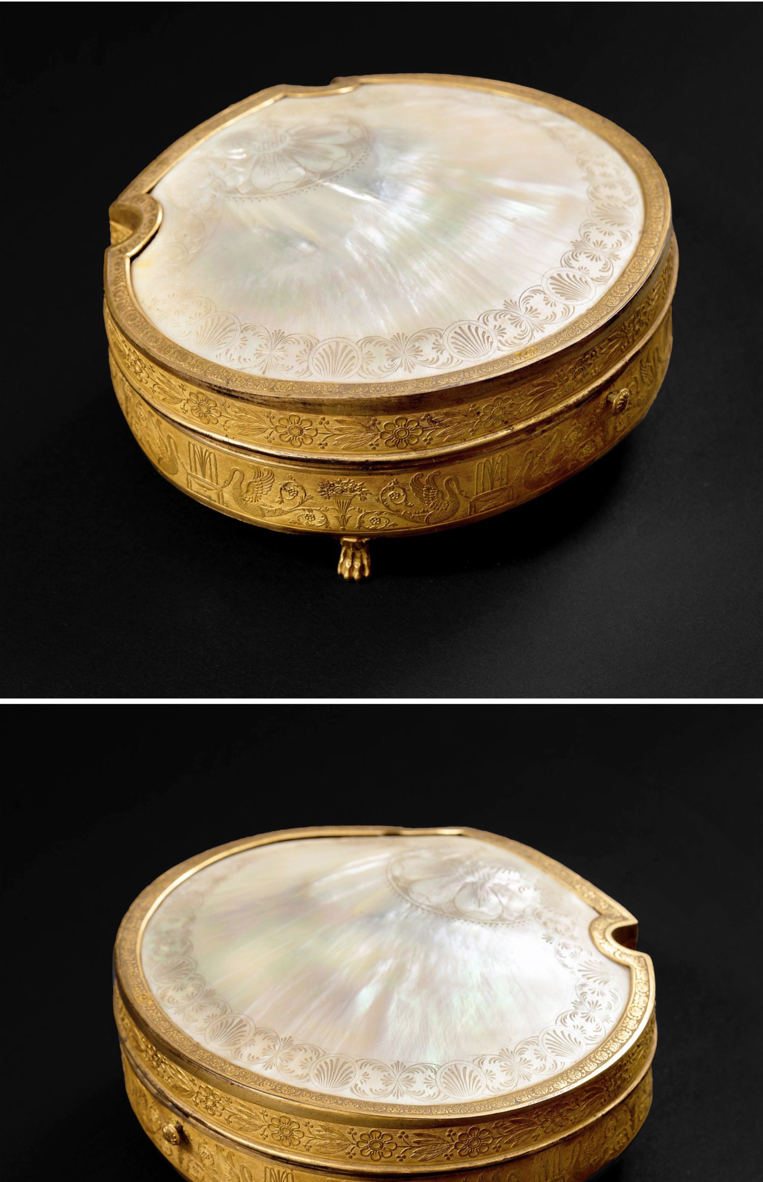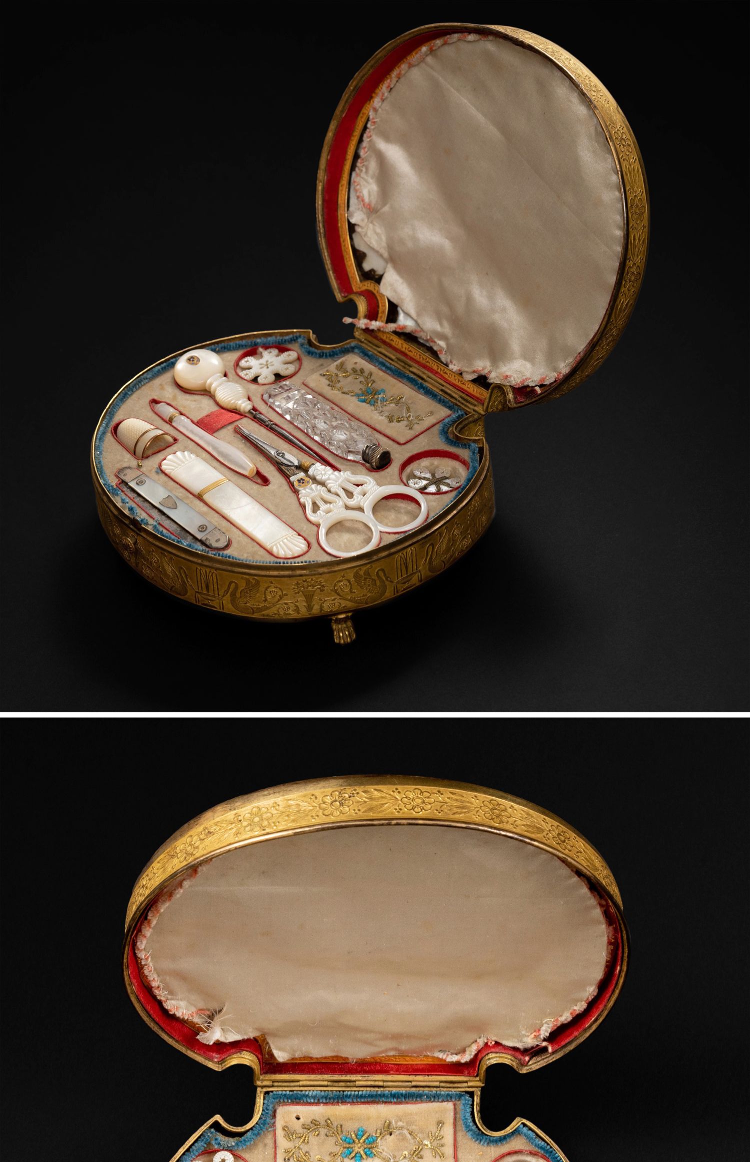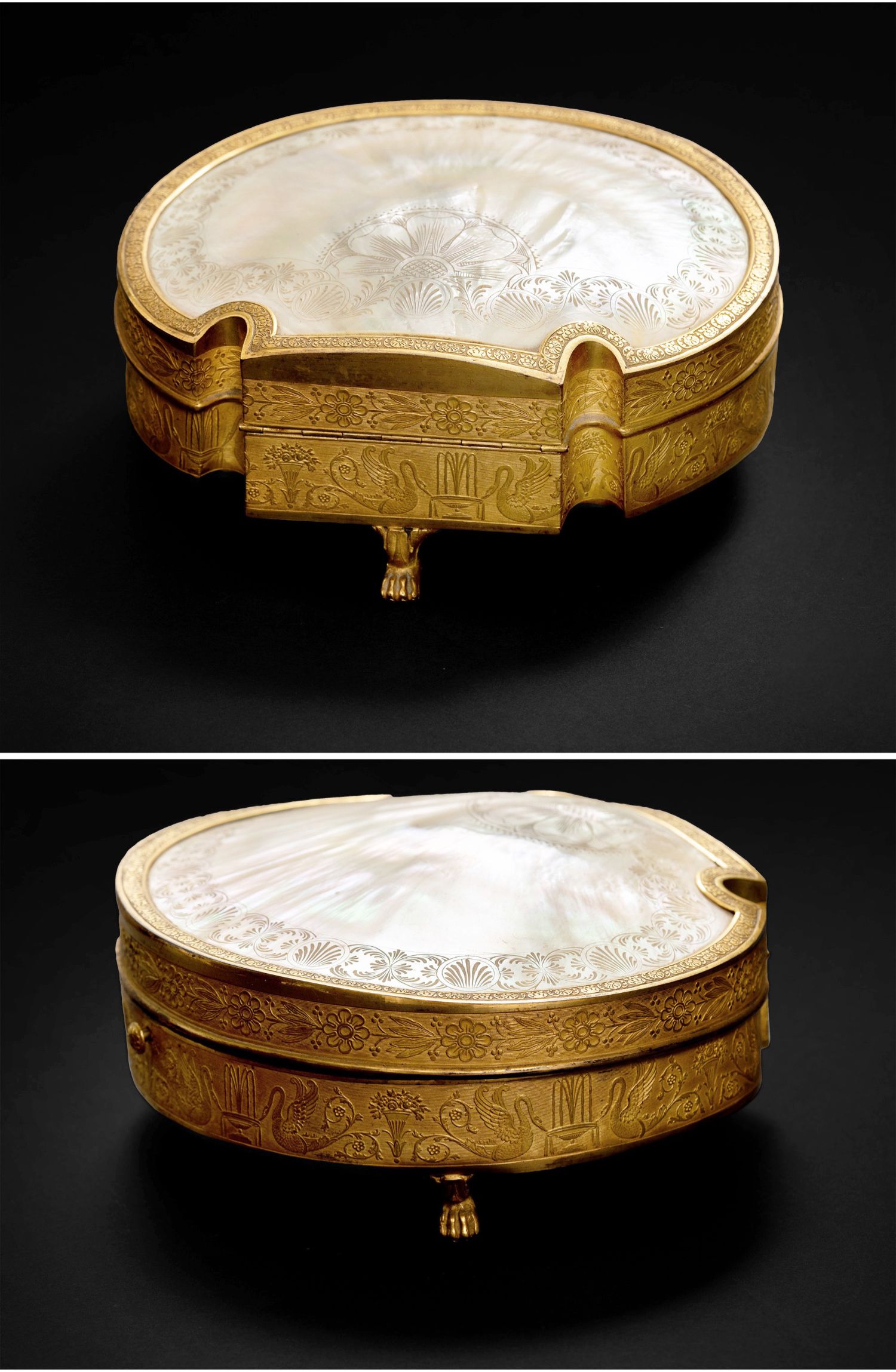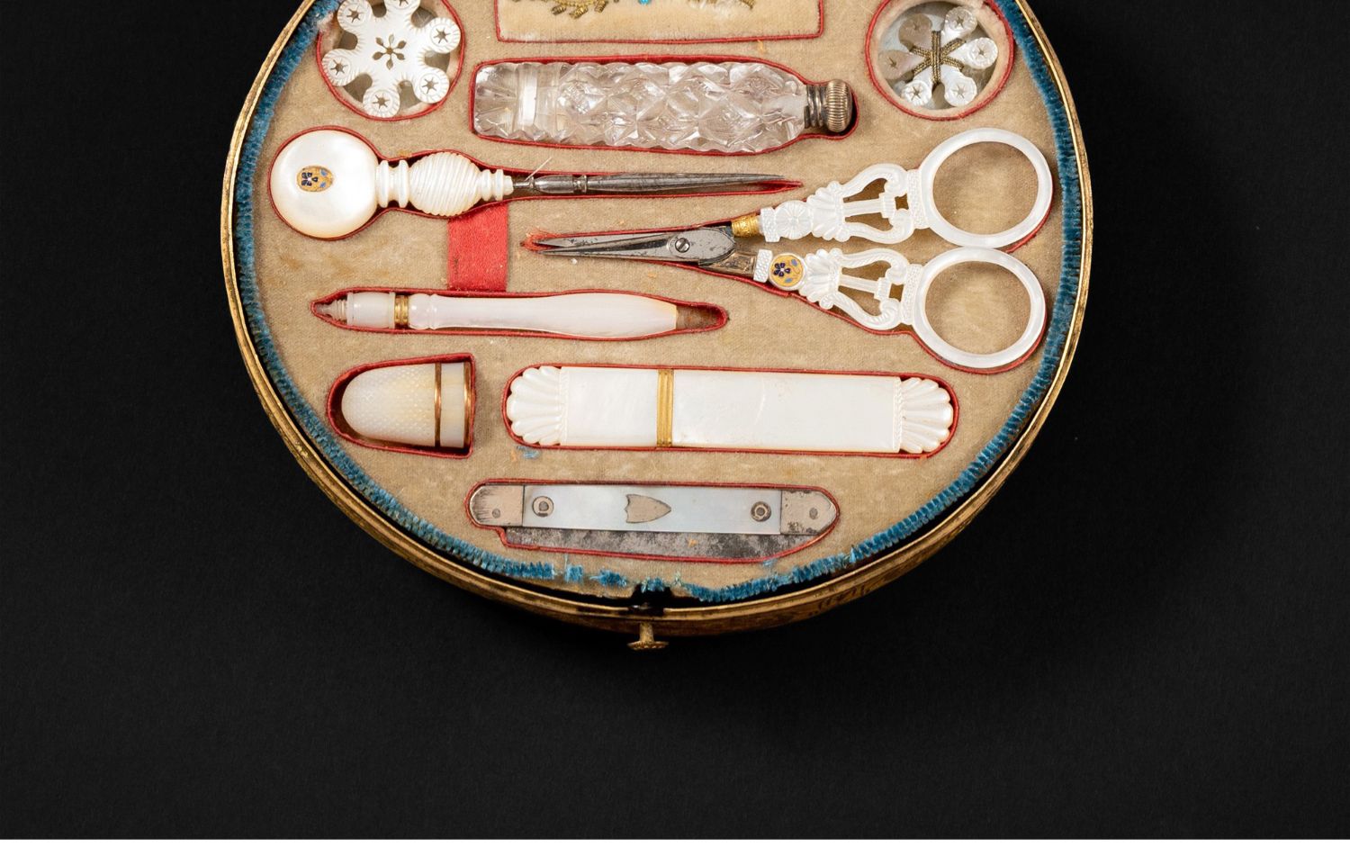 独角鹿西洋古董法国卢浮宫回廊商店天鹅雕饰铜鎏金嵌母贝缝纫套件