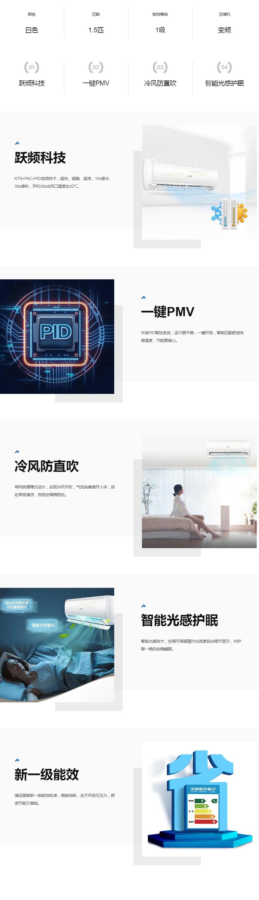 海尔空调(140175)1.5匹壁挂式变频空调 KFR-35GW/B3KHA81U1 独立除湿节能省电WiFi智控能效之星