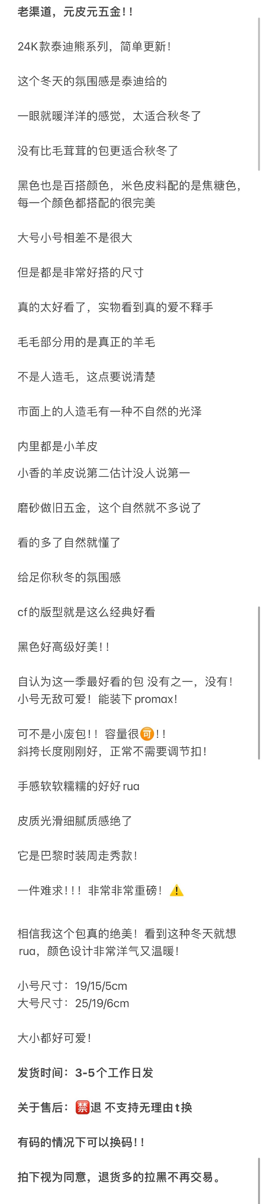 重磅推荐 24K泰迪熊 CF20/25包包 秋冬限定毛茸茸