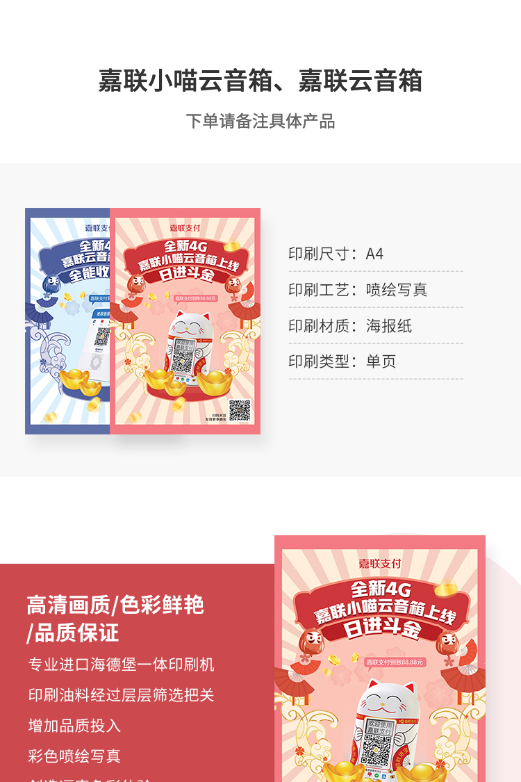 【嘉联周边】嘉联pos机产品手册1000张/套