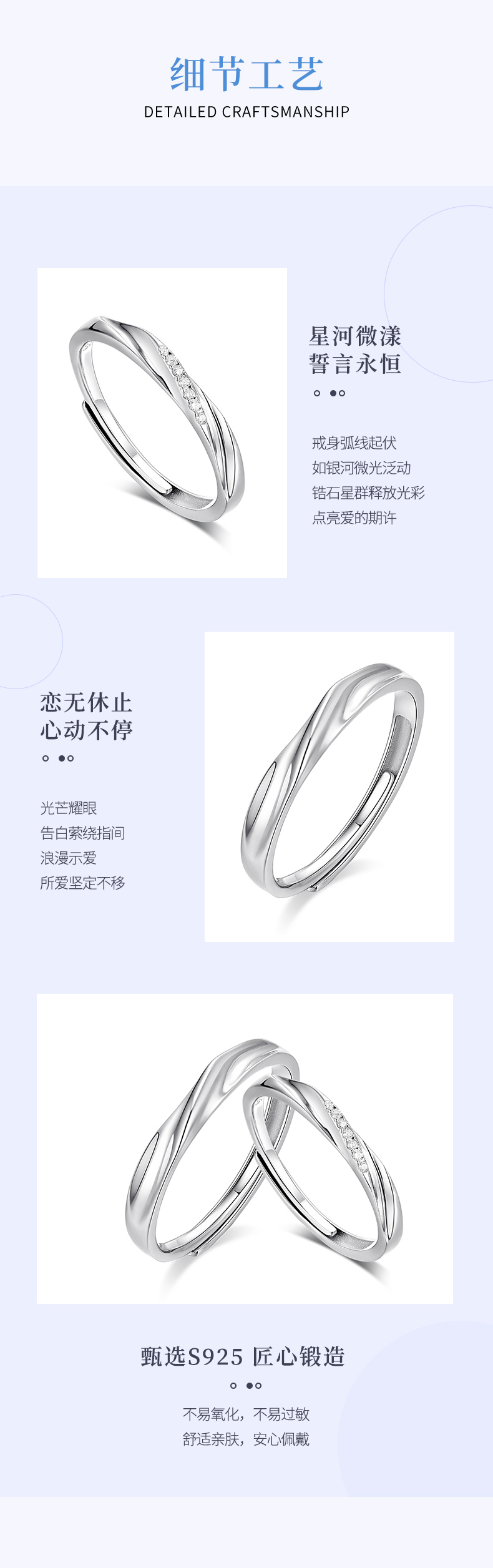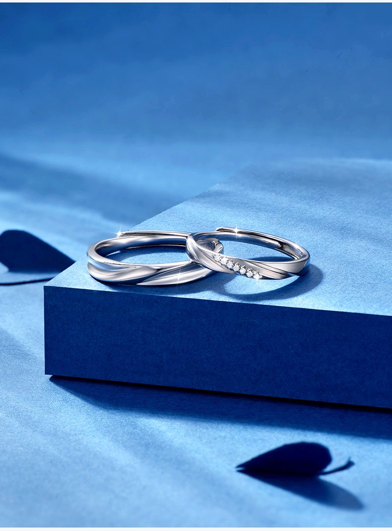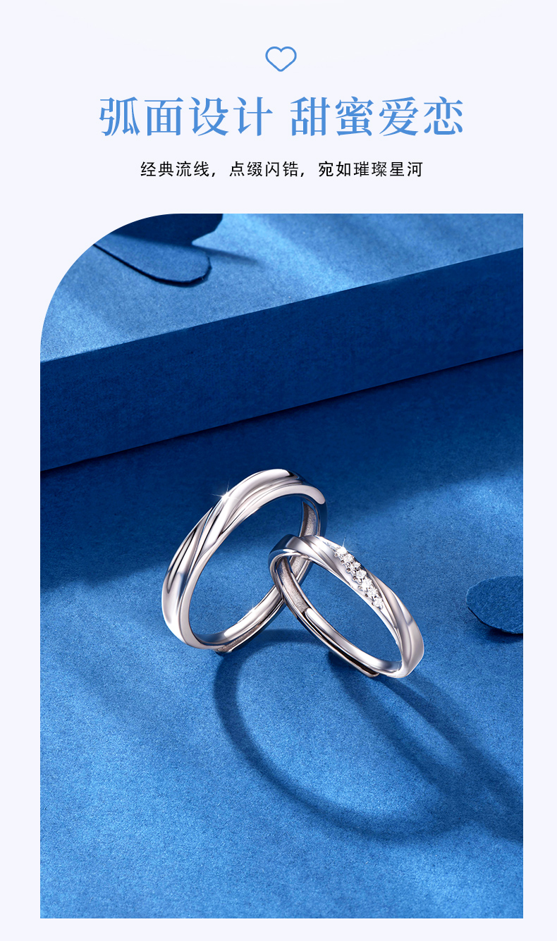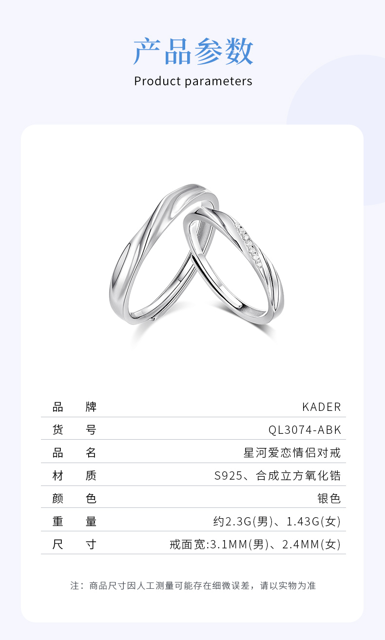 KADER卡蒂罗 共度爱河系列 星河爱恋 S925银浪漫甜蜜开口设计可调节一对 戒指 男女同款情侣款 礼物