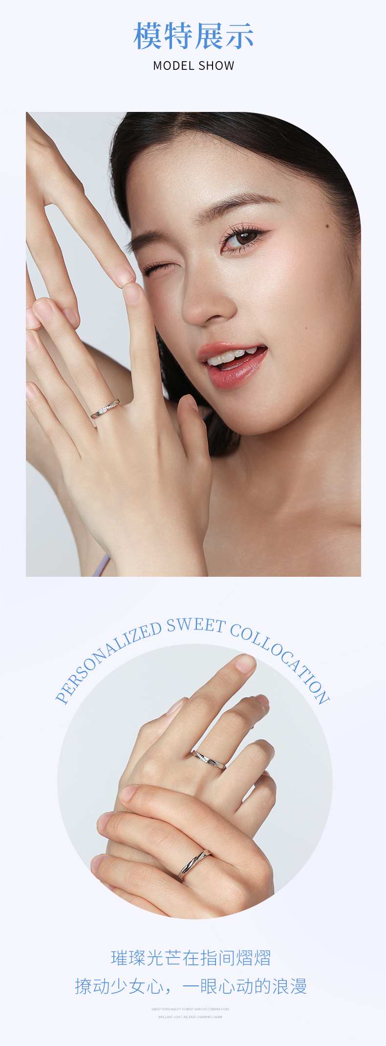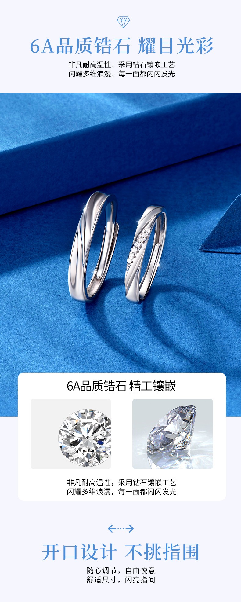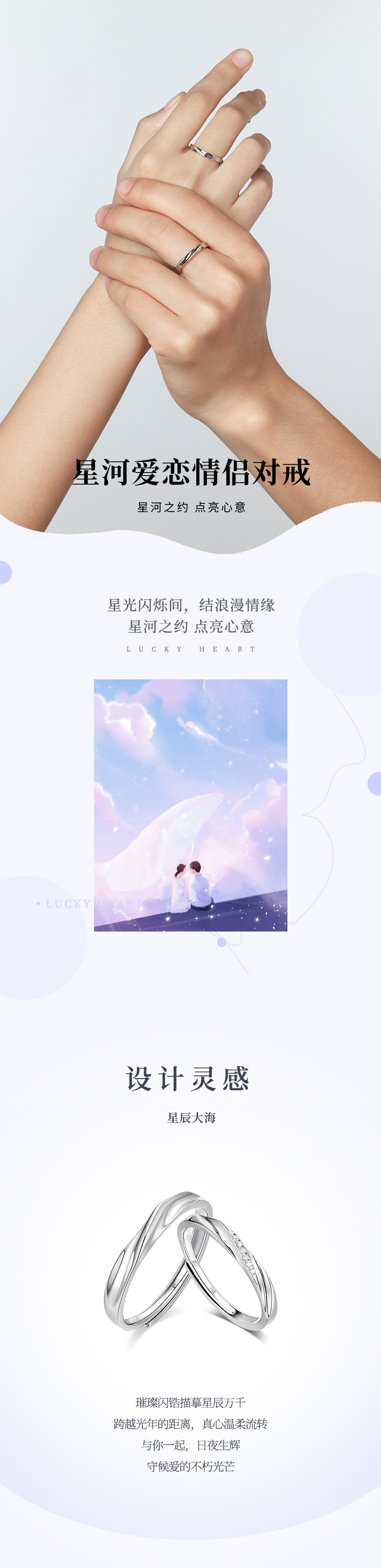 KADER卡蒂罗 共度爱河系列 星河爱恋 S925银浪漫甜蜜开口设计可调节一对 戒指 男女同款情侣款 礼物