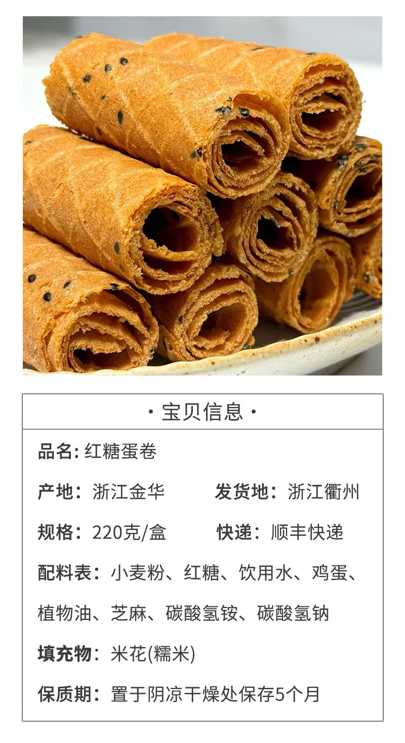 【红糖蛋卷】它不添加防腐剂与色素,酥脆掉渣的口感,唤醒80/90后的童年记忆~