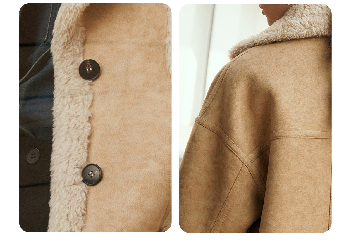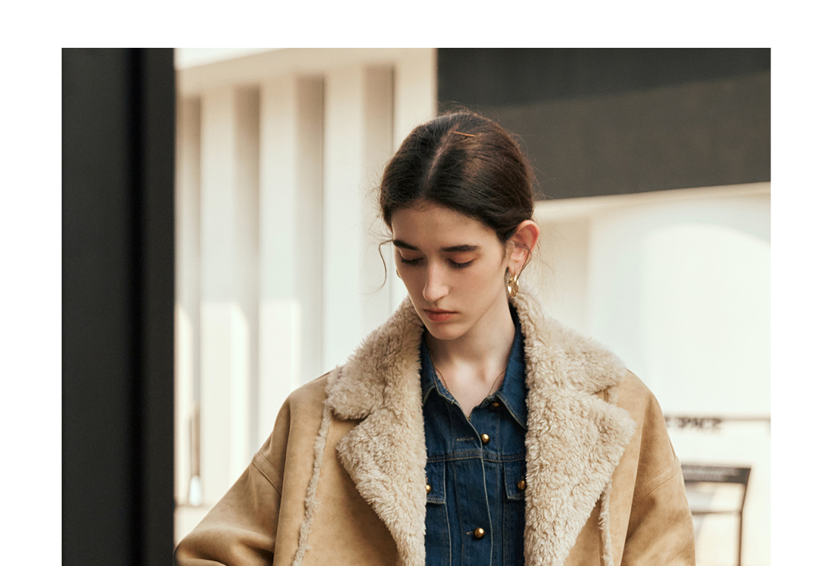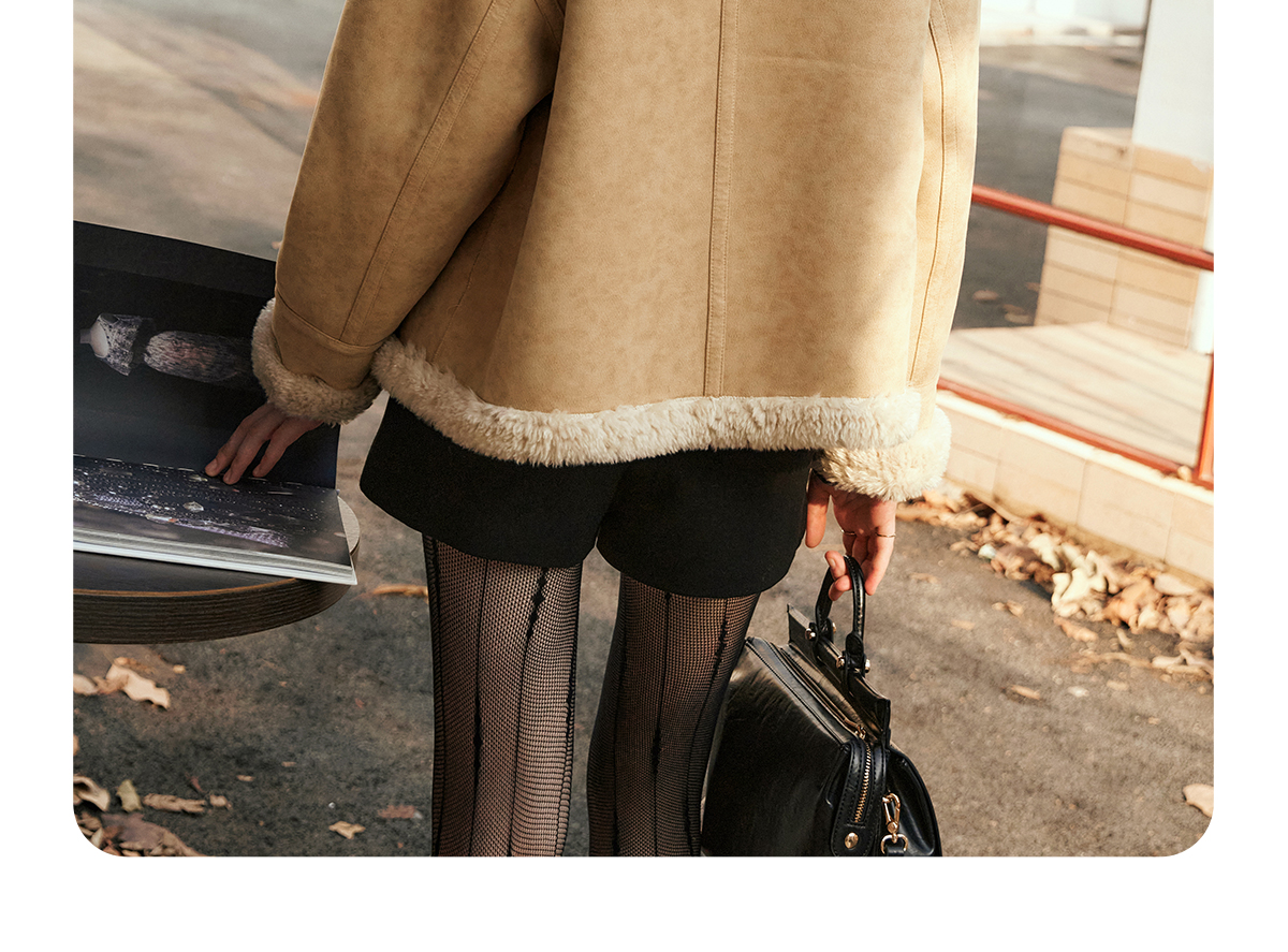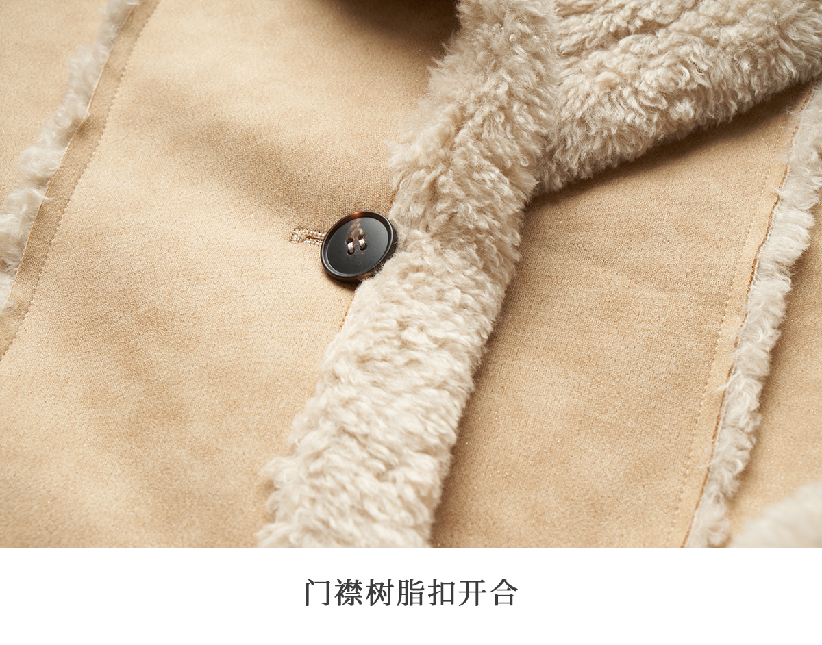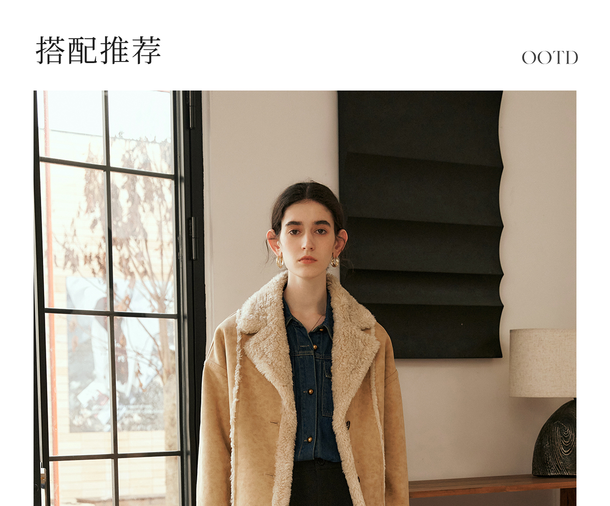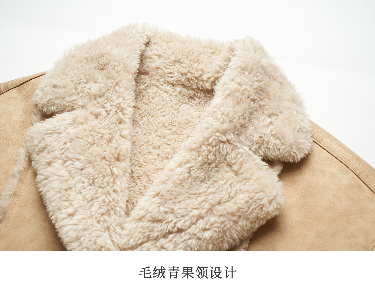 OLrain欧芮儿卡其皮草外套女冬季2024年新款时尚翻领加厚保暖上衣