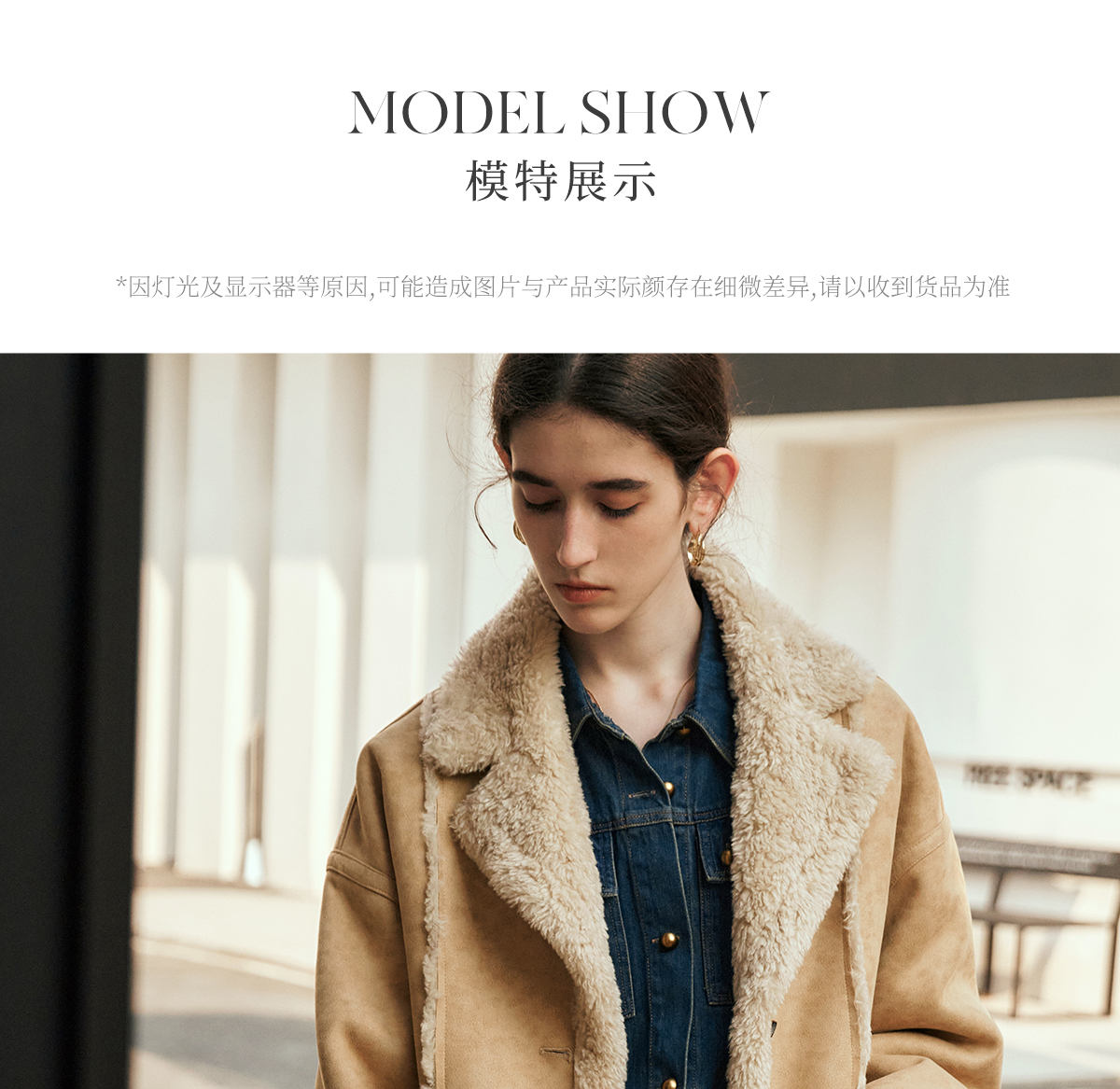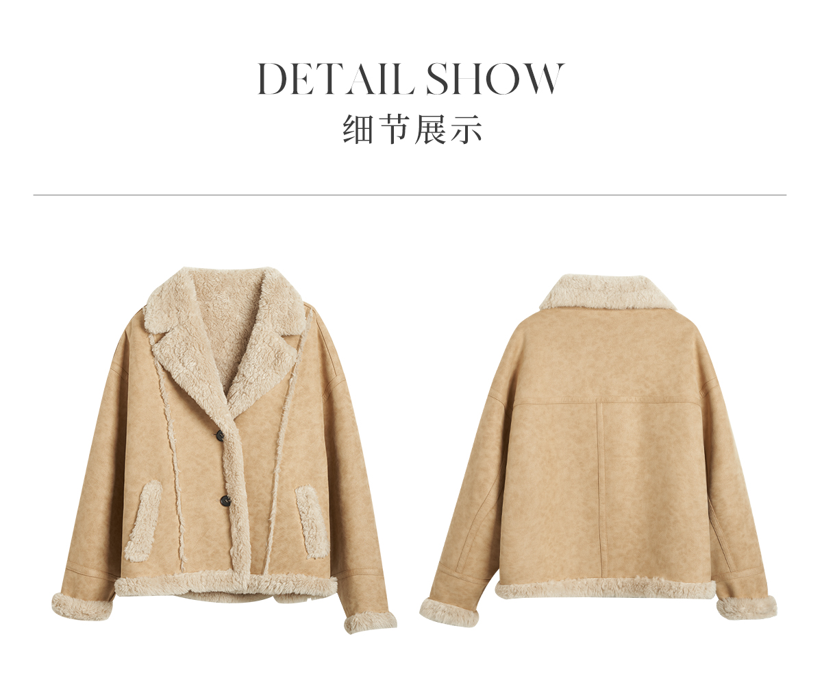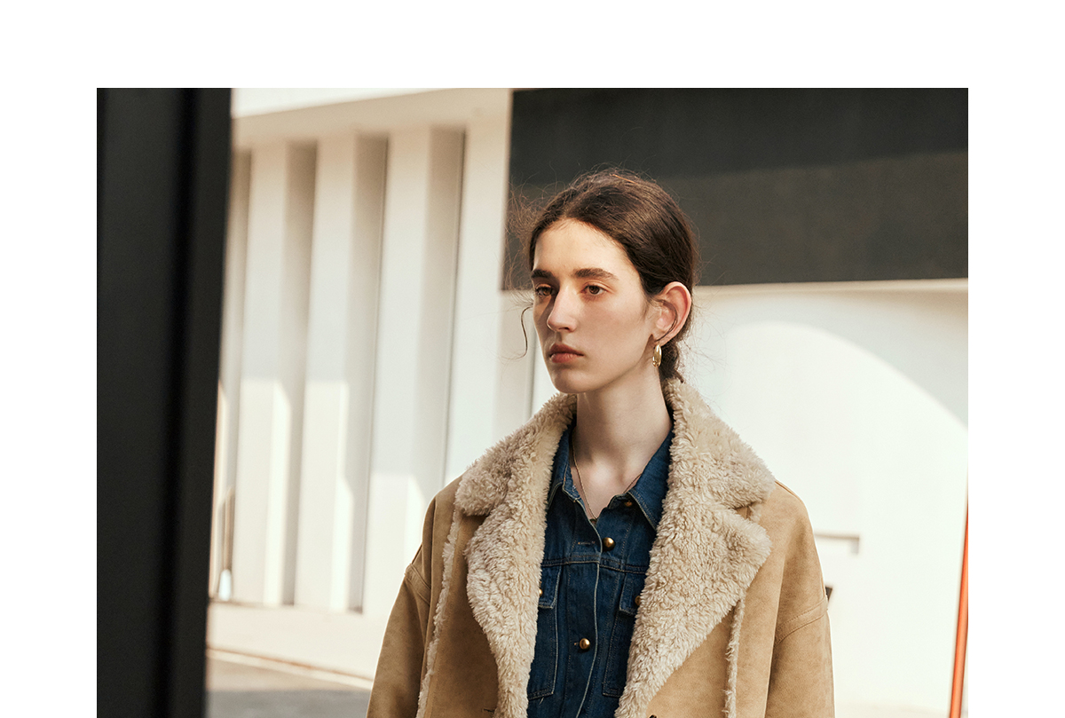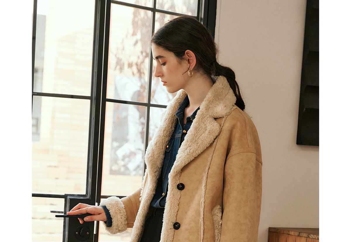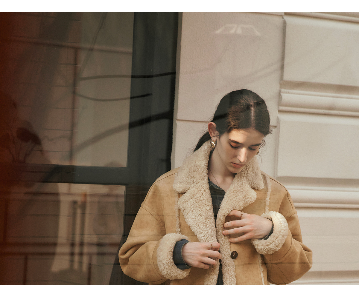 OLrain欧芮儿卡其皮草外套女冬季2024年新款时尚翻领加厚保暖上衣