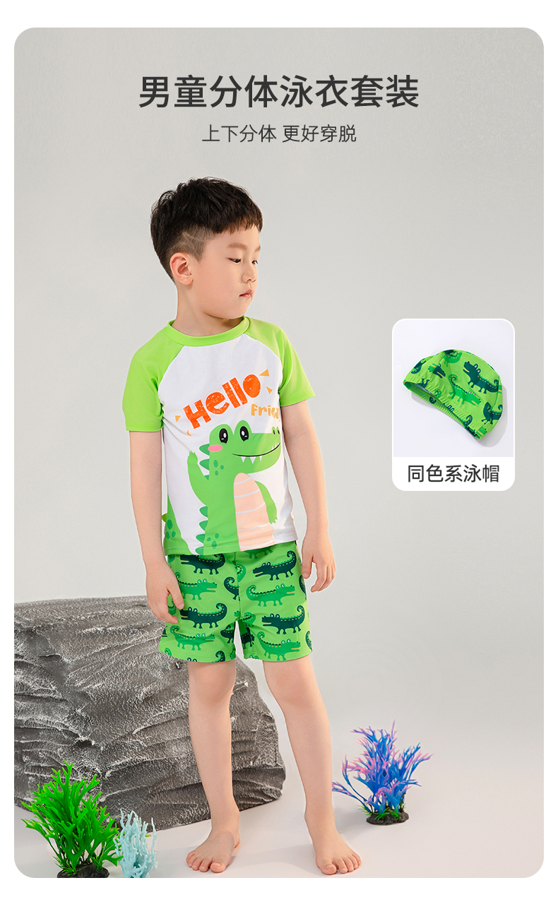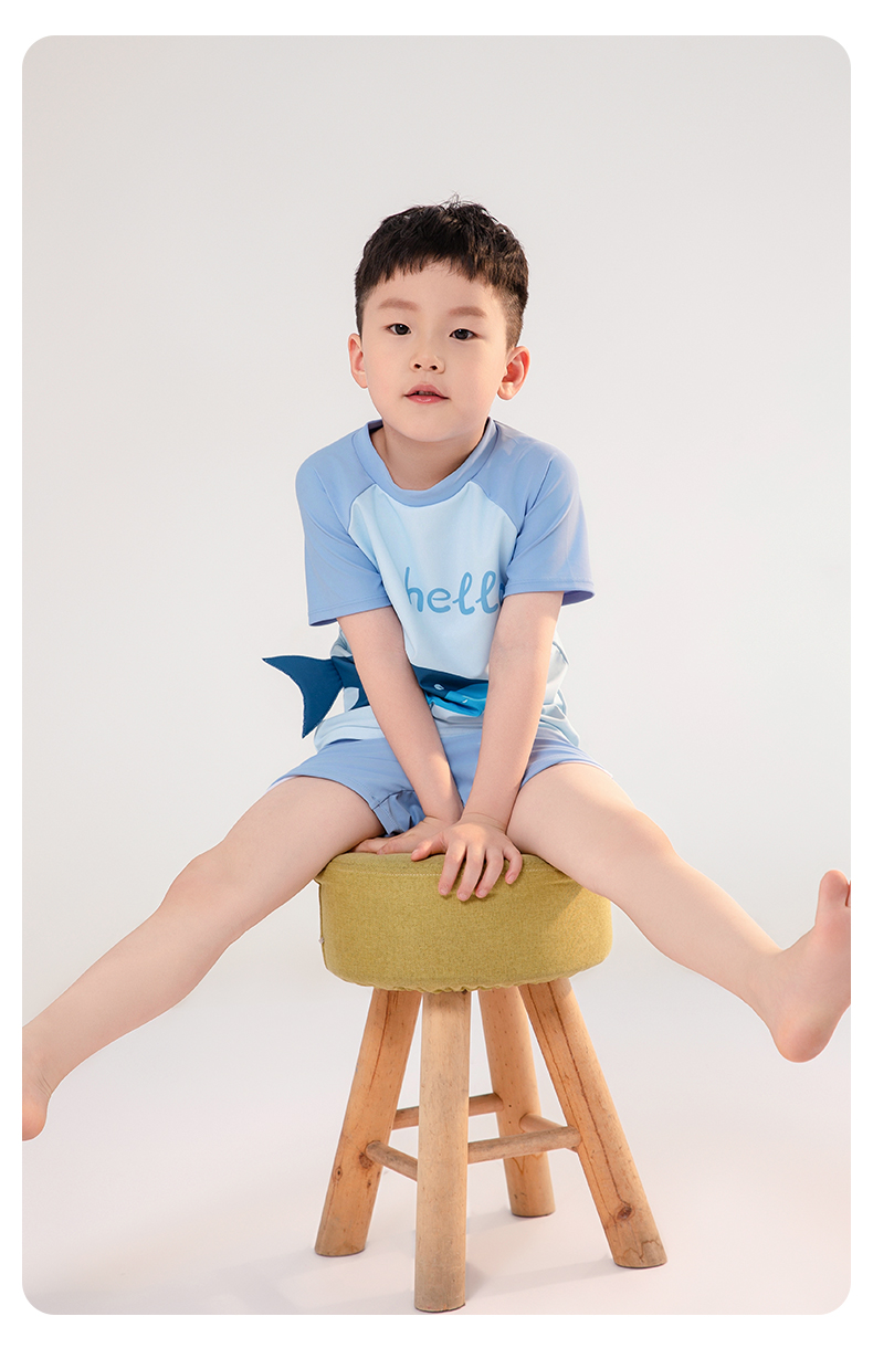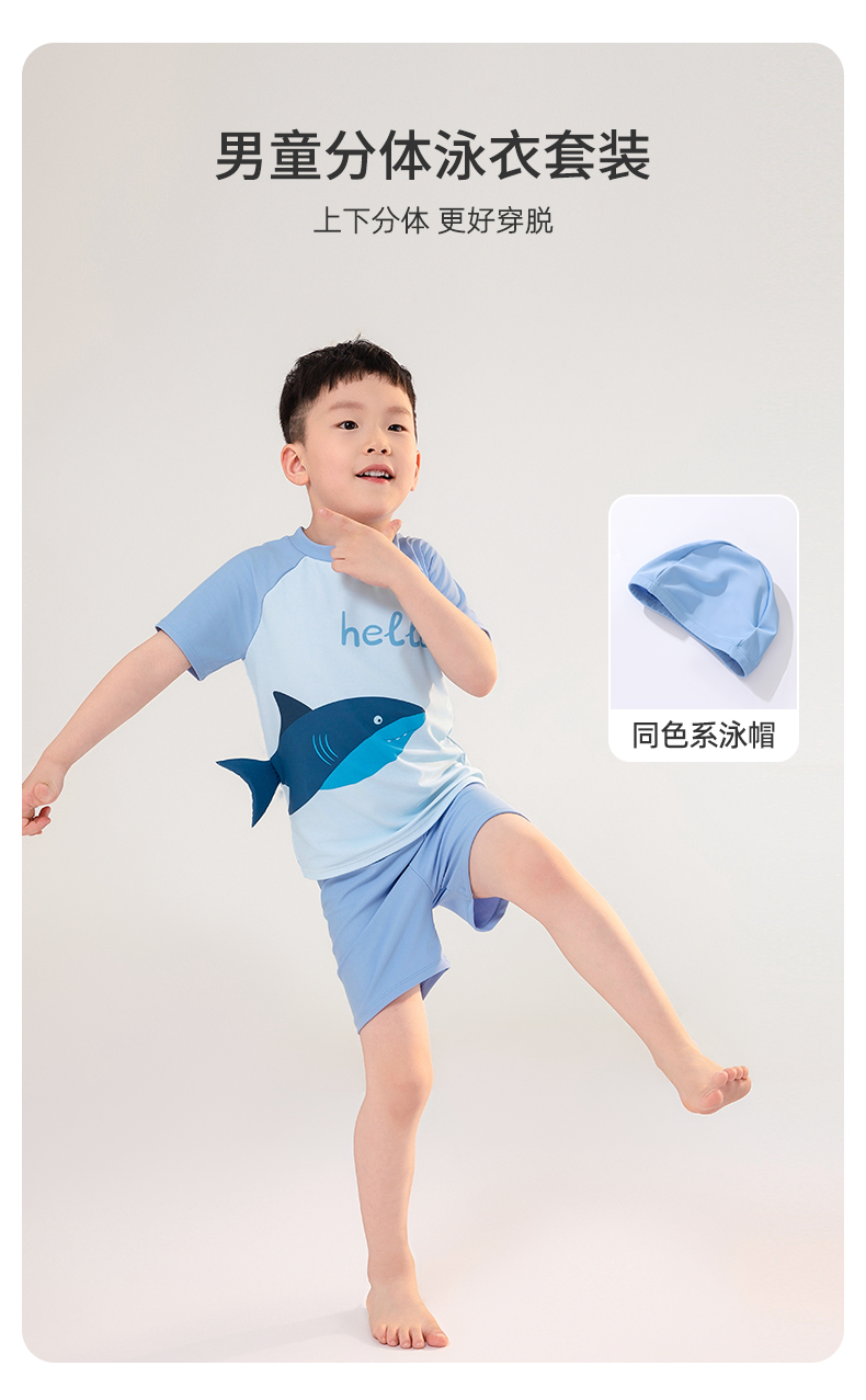 【120-150码】【送泳帽】熳洁儿 男童泳衣夏季短袖分体两件套卡通可爱鲨鱼24206605/24206603