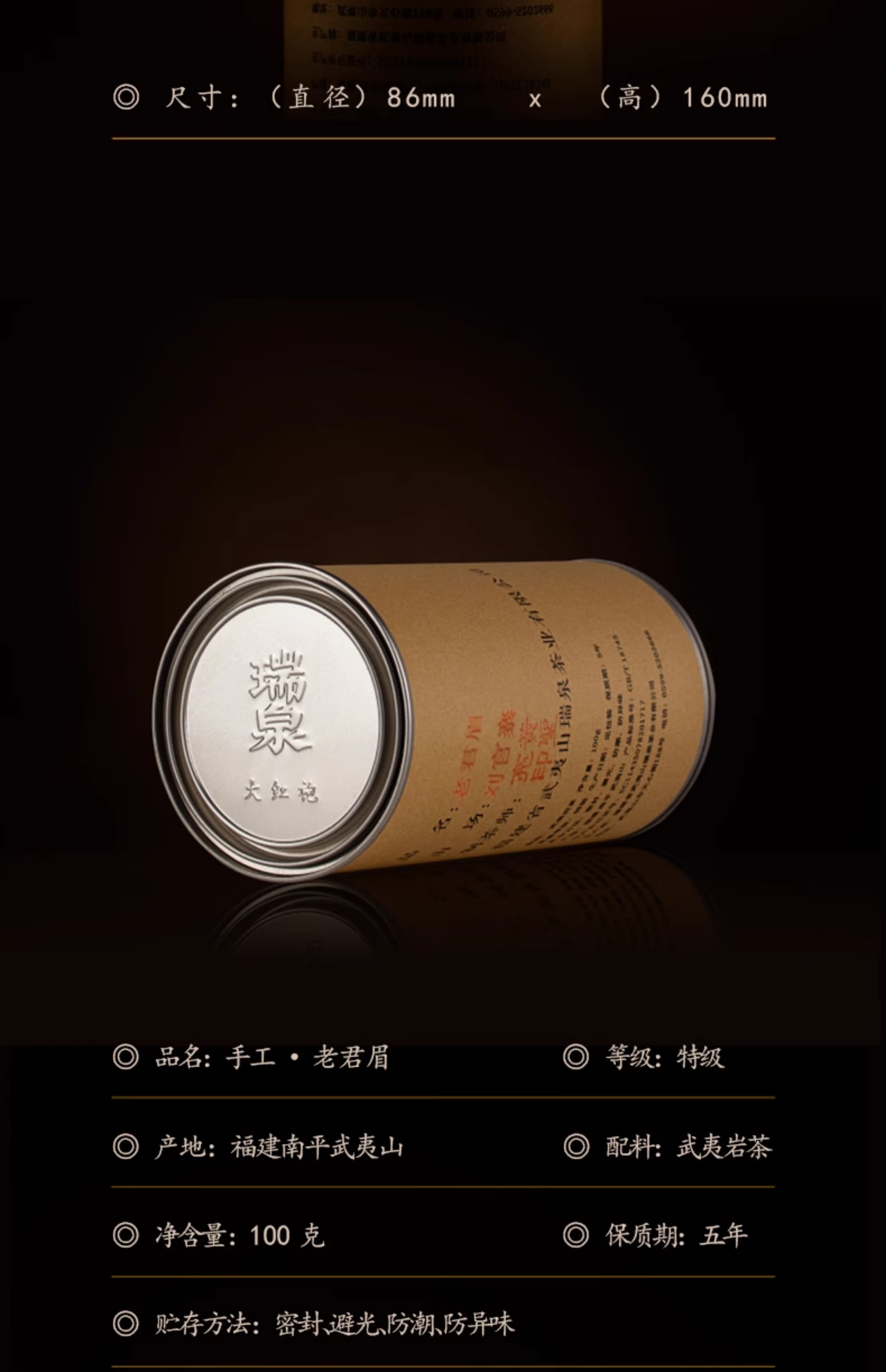 瑞泉 手工 老君眉 武夷岩茶 茶叶 礼盒 100g
