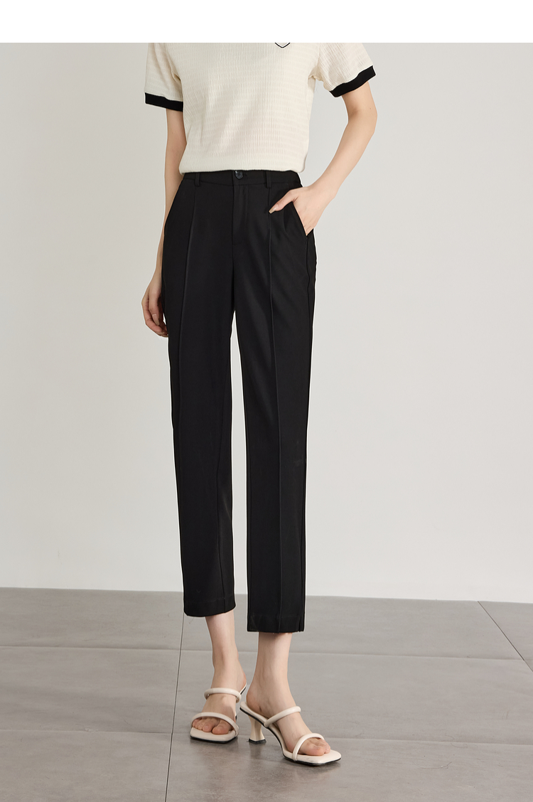 【专属特价】熙世界小个子八九分直筒西装裤夏薄款新款通勤职场休闲烟管裤子