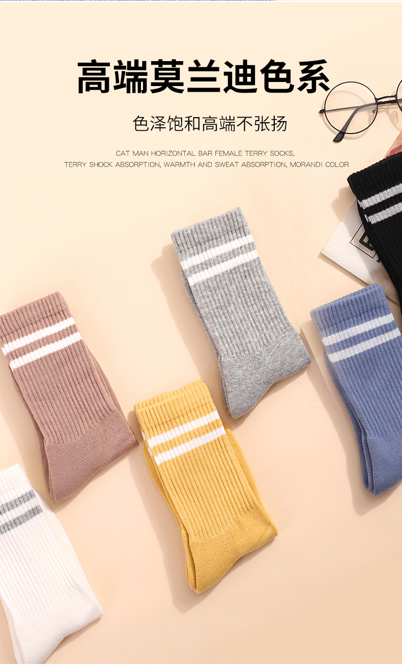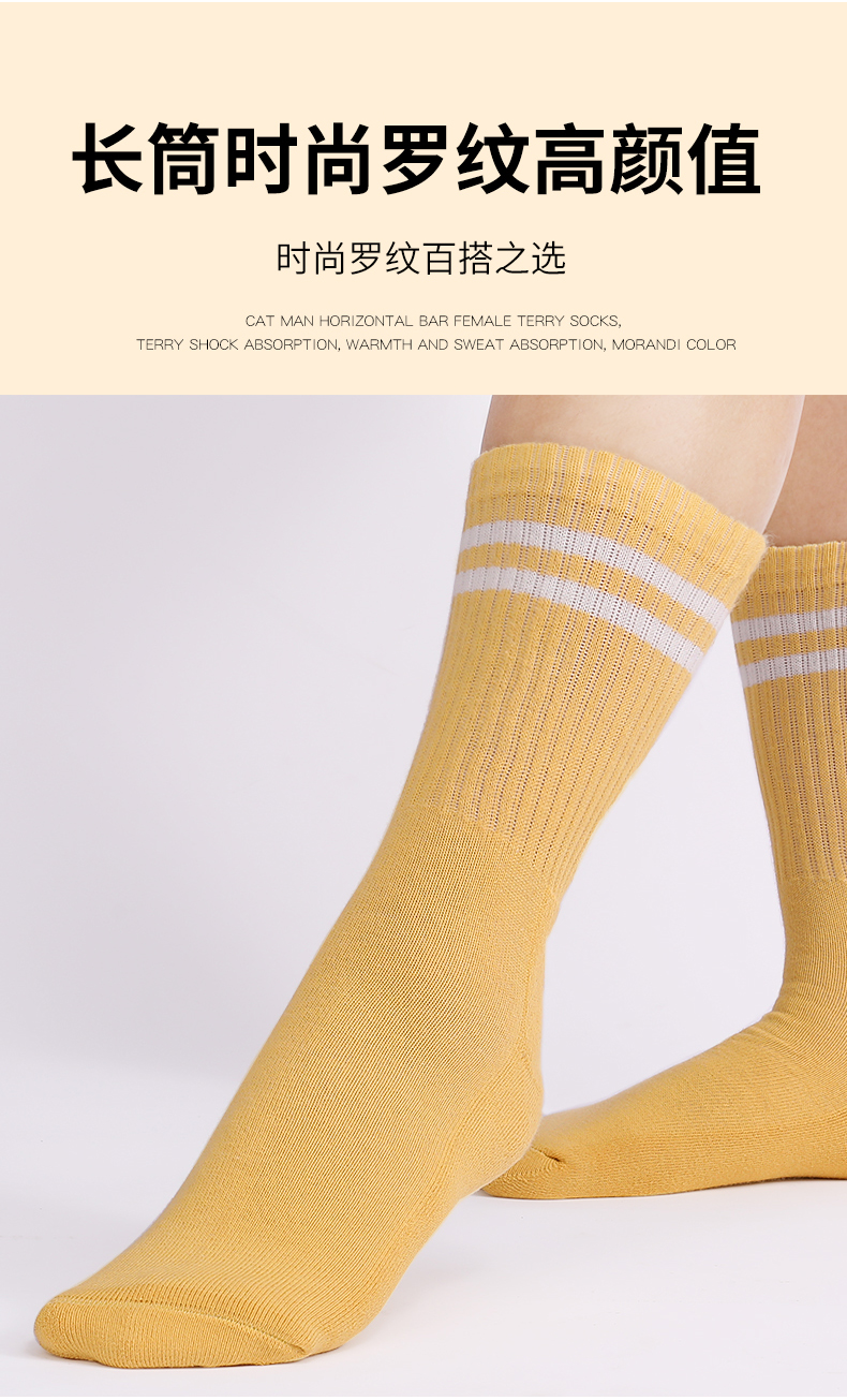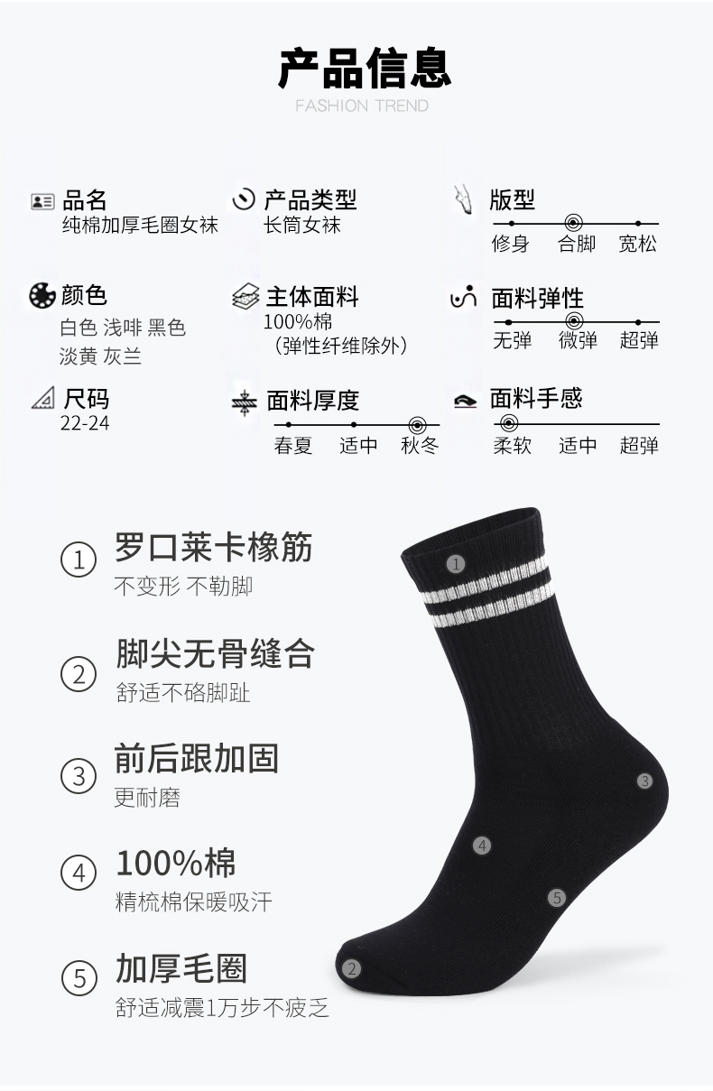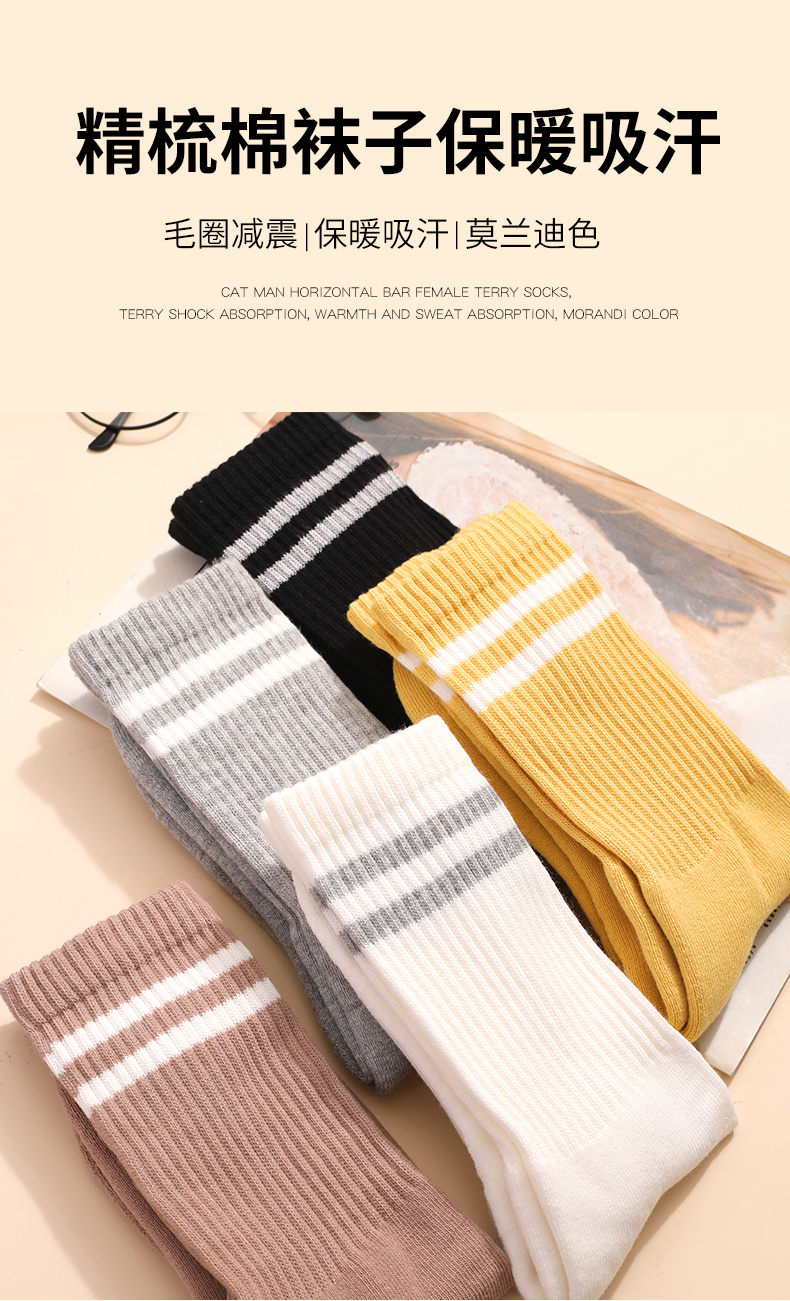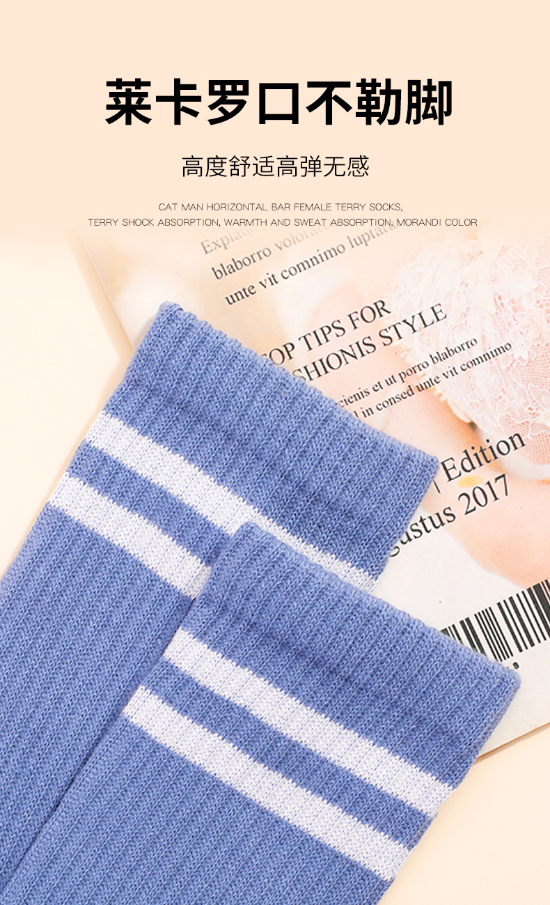 洁丽雅3双装纯棉加厚毛圈时尚长筒女袜条纹款亲肤保暖袜子女
