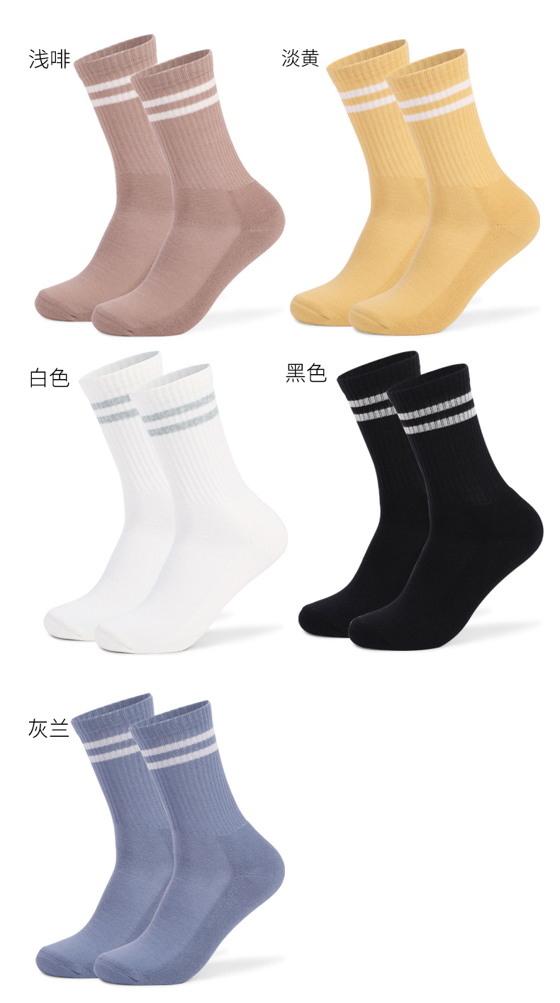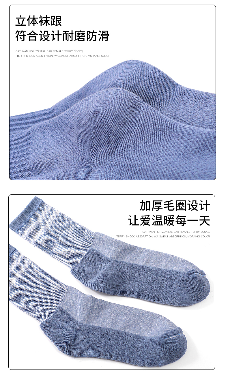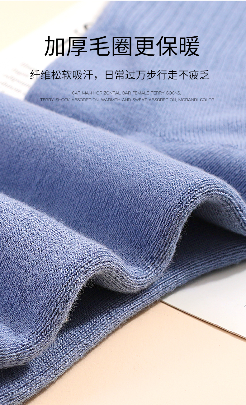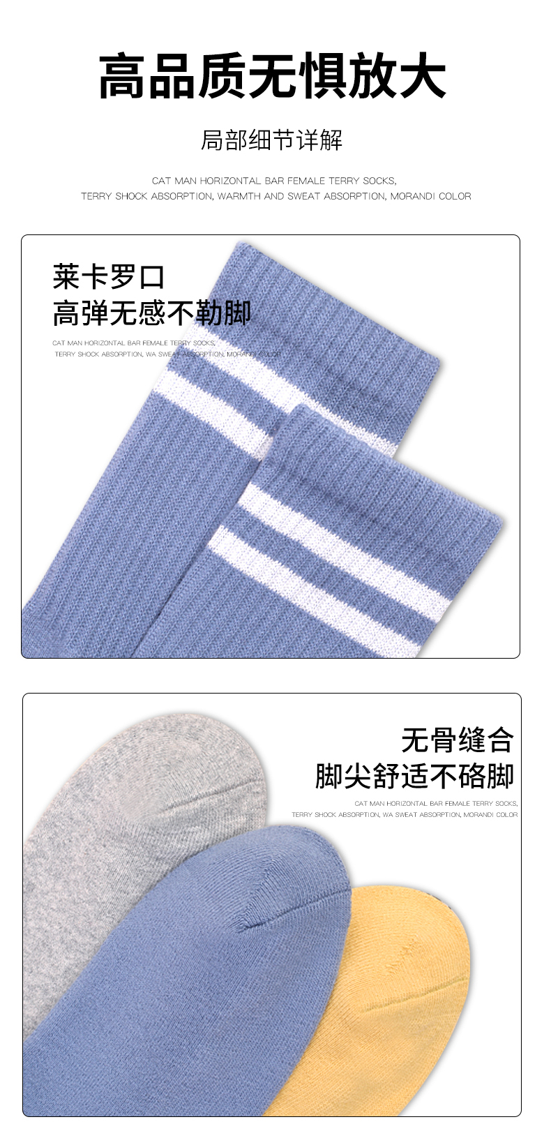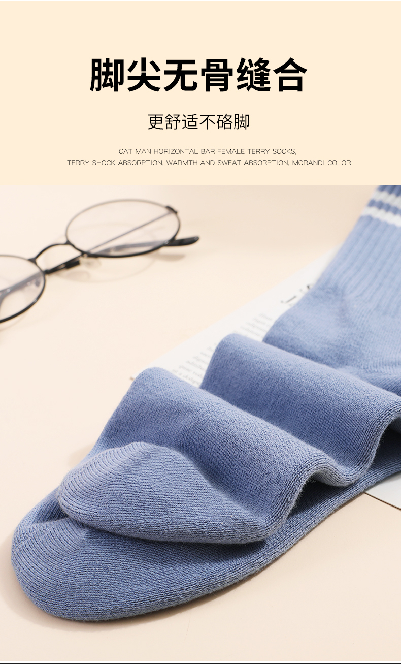洁丽雅3双装纯棉加厚毛圈时尚长筒女袜条纹款亲肤保暖袜子女